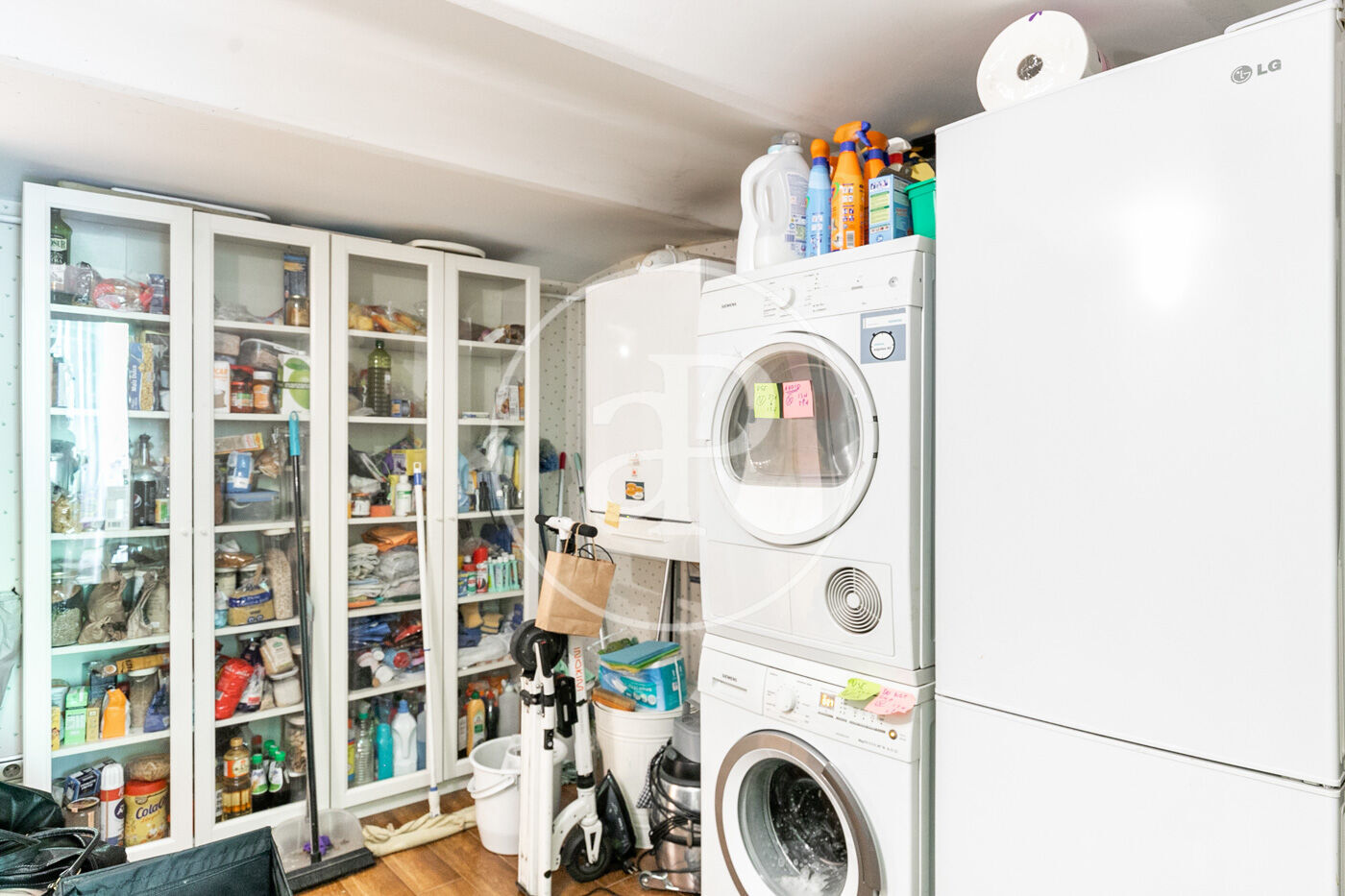 En accedir al pis a través d'un ampli rebedor, trobem el saló amb sortida a la terrassa i accés directe a la cuina-office i menjador tot integrat com un únic ambient. La cuina, amb una illa central i totalment equipada, comunica amb una estança on es troba la zona de rentat, planxa i emmagatzematge, així com una segona nevera i rebost. Tota la cuina és exterior, donant a aquesta zona una gran luminositat. Aquesta àrea es comunica amb el segon nivell polivalent.