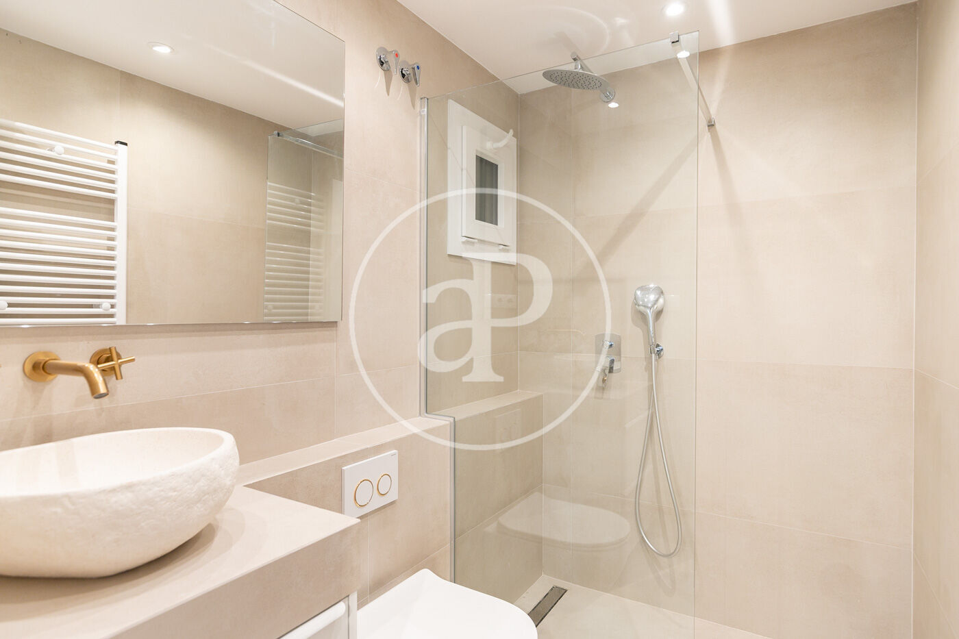 L’apartament combina elegància i confort, amb terres de parquet, sistema d’aire condicionat tipus split, calefacció per radiadors, portes lacades i fusteria d’alumini que garanteix un excel·lent aïllament tèrmic i acústic.
