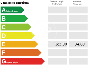 Més eficient Menys eficient Qualificació energètica Consum energia Kw h/m² any Emissions Co/m² any 163.00 34.00