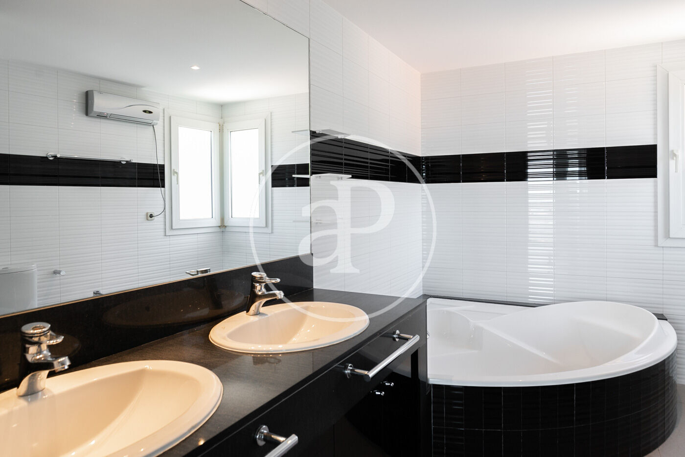 En una de les zones més privilegiades del litoral barceloní es troba aquesta vila independent de disseny contemporani, amb 385 m² construïts en dues plantes i envoltada d’un entorn que respira privacitat i elegància. La planta baixa està concebuda com un espai de dia obert, lluminós i càlid, mentre que la superior acull la zona de nit, pensada per garantir la màxima intimitat i confort. L’habitatge disposa de tres àmplies suites, una d’elles amb vestidor i banyera d’hidromassatge, que es converteixen en autèntics refugis de descans. S’hi suma una habitació polivalent, perfecta com a despatx o gimnàs, una estança individual addicional i una pràctica zona de planxat. En total, la casa ofereix quatre banys complets i un lavabo de cortesia. Els acabats d’alta qualitat i el sistema de calefacció per terra radiant embolcallen cada estança en un ambient sofisticat i acollidor. A l’exterior, la propietat sorprèn amb una gran terrassa enjardinada, piscina privada i espais pensats per gaudir del sol i de reunions a l’aire lliure. La terrassa superior de 175 m² ofereix vistes privilegiades i es converteix en un escenari perfecte per a moments de relax o trobades socials. La vila compta, a més, amb entrada pròpia i garatge per a més comoditat. Construïda el 2018 i en excel·lent estat de conservació, aquesta residència combina modernitat, amplitud i exclusivitat en un enclavament únic vora el mar. Una oportunitat perfecta per a aquells que desitgen viure envoltats de disseny, confort i distinció a Gavà Mar. La finalitat del contracte és temporal.* En compliment de la Llei 12/2023 i la Llei 18/2007 informem que:Aquest immoble no té índex R.P.LL. Respecto a la presente propiedad no existe certificado informativo estatal de referencia de precios de alquilerLa presente propiedad tiene la consideración de suntuaria por razón de superficie y/o renta, y por ello de conformidad a la LAU no es de aplicación el índice estatal de referencia de precios de alquiler.