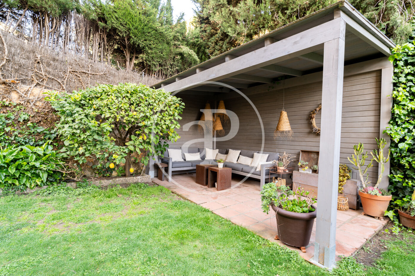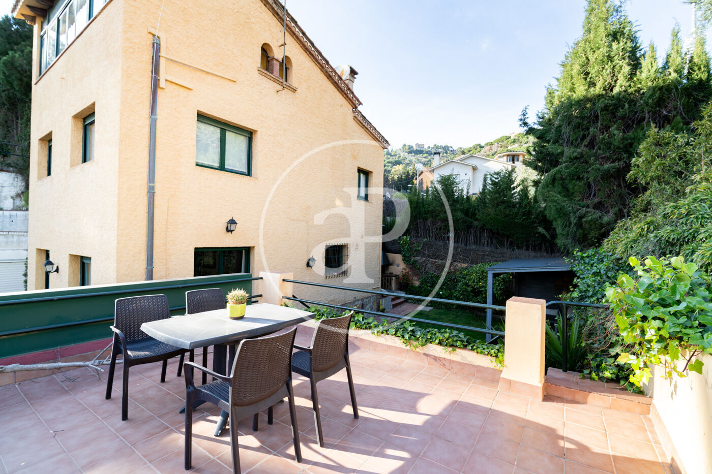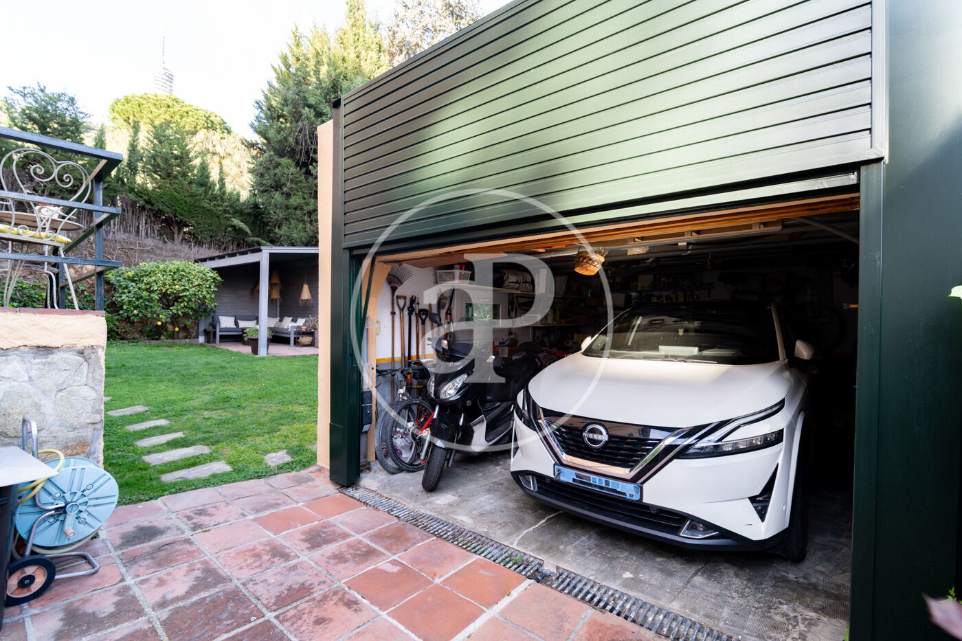 A l’exterior, el jardí, la zona chill-out i el menjador d’estiu creen diferents ambients per gaudir de l’entorn natural. La propietat inclou garatge tancat per a un cotxe i diverses motos, amb una terrassa de 22 m² a la seva part superior, a més de zona exterior d’aparcament addicional.