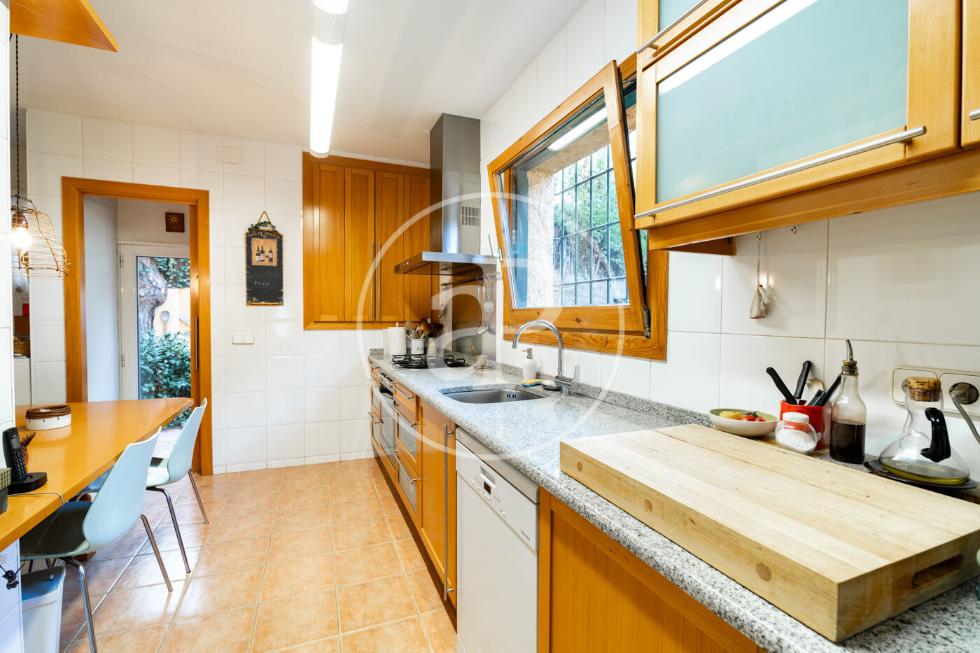A la planta baixa, l’ampli saló amb tres finestrals i xemeneia s’obre al jardí, creant un espai fluid entre interior i exterior. El menjador independent i la cuina-office, amb accés directe al jardí i al menjador d’estiu amb barbacoa, conviden a gaudir de reunions a l’aire lliure en un entorn privat i cuidat.