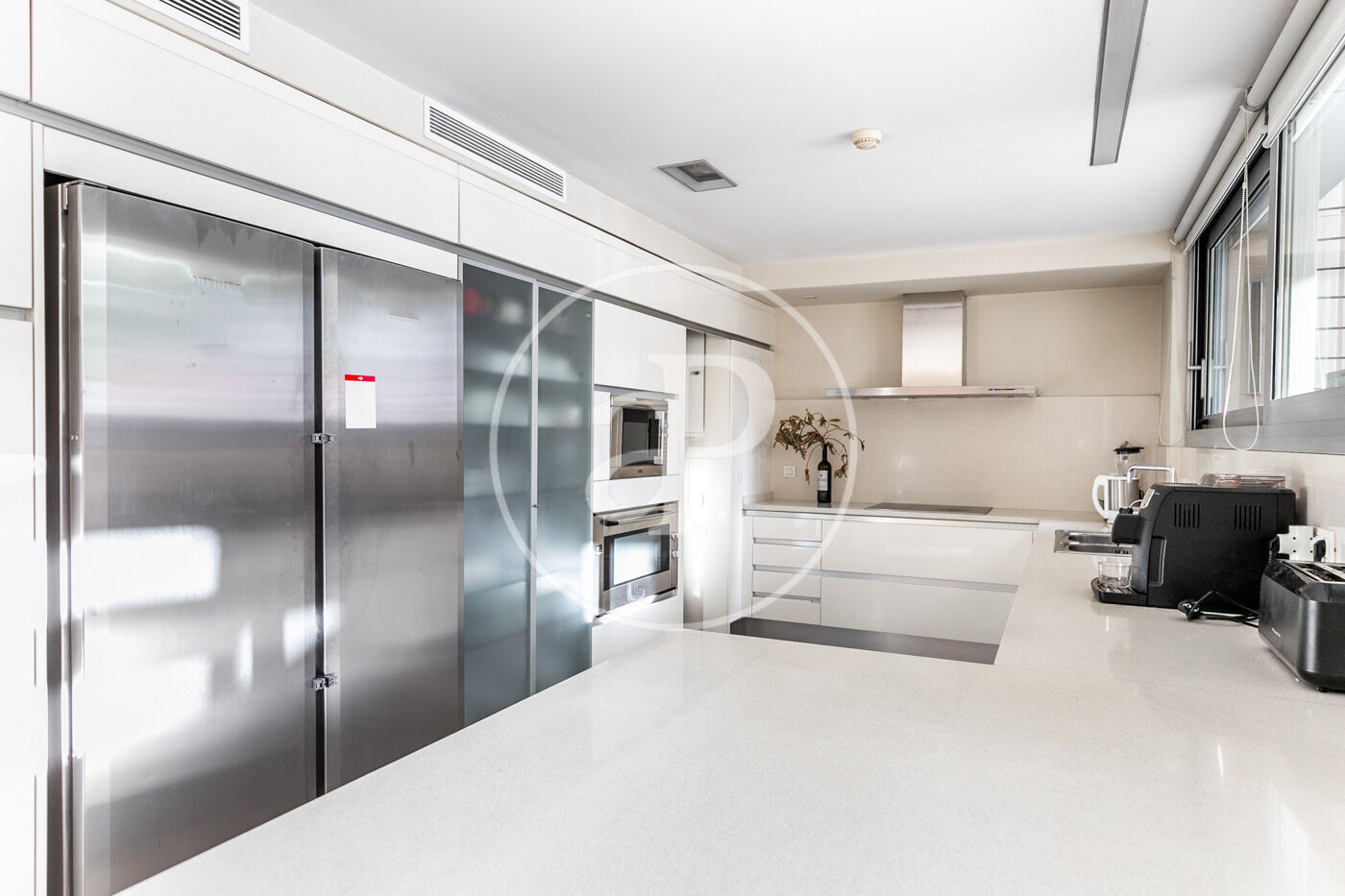 En la planta segona hi ha una àmplia cuina amb accés directe a la gran terrassa exterior amb la piscina al fons. Una habitació de servei amb el seu bany i un lavabo de cortesia