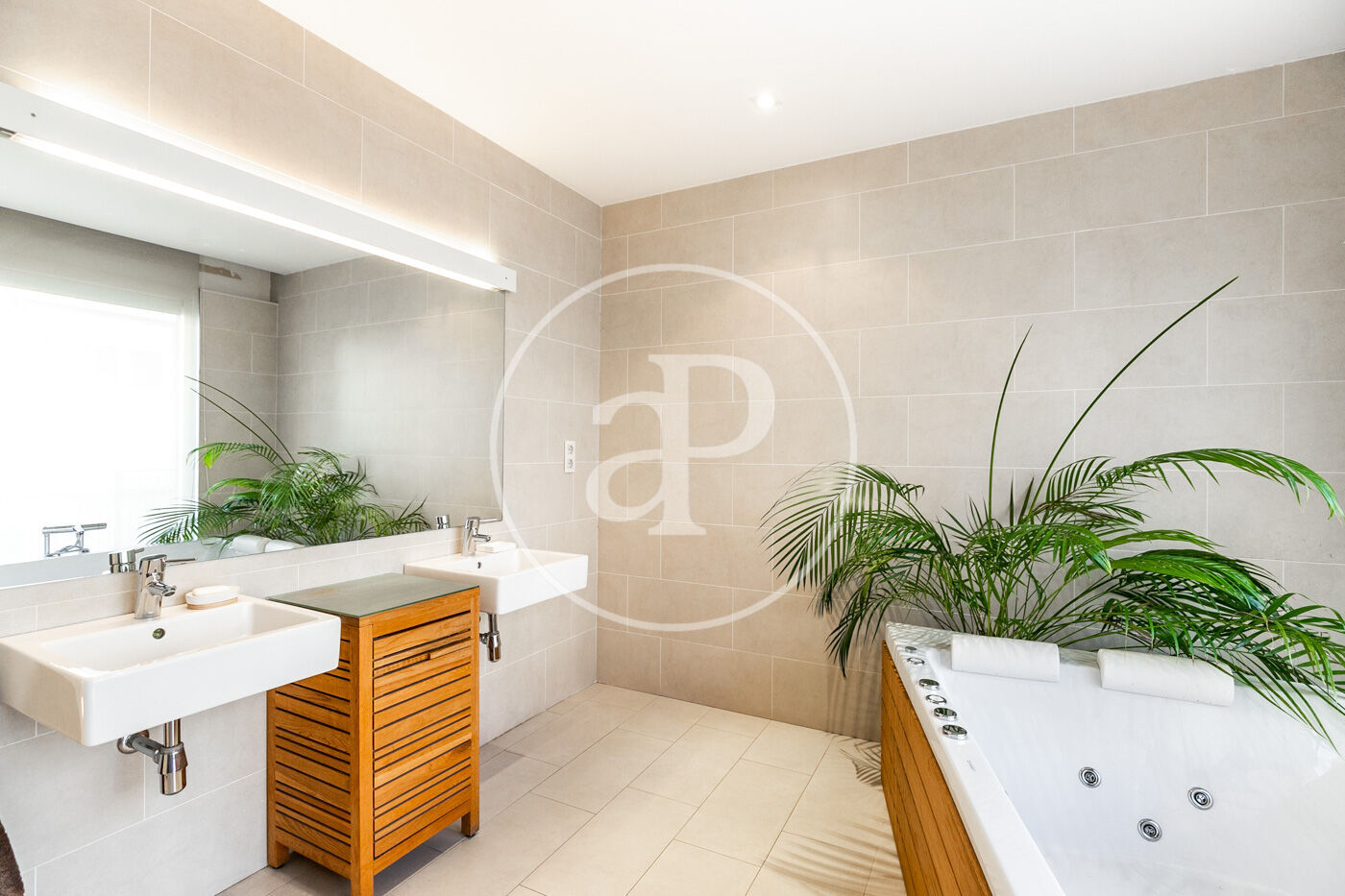 En ple cor del barri de la Bonanova, envoltada de tota mena de comerços, transport públic i molt prop de col·legis nacionals i internacionals, trobem aquesta espectacular casa construïda en 2008 amb una superfície de 1031 m² construïts.