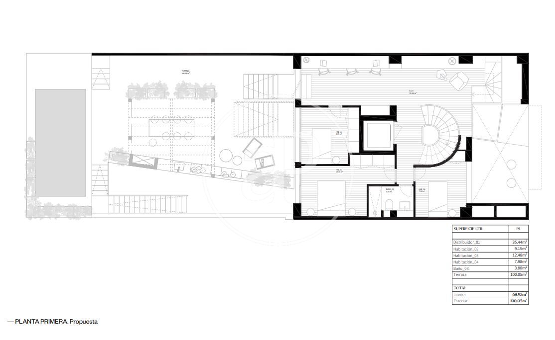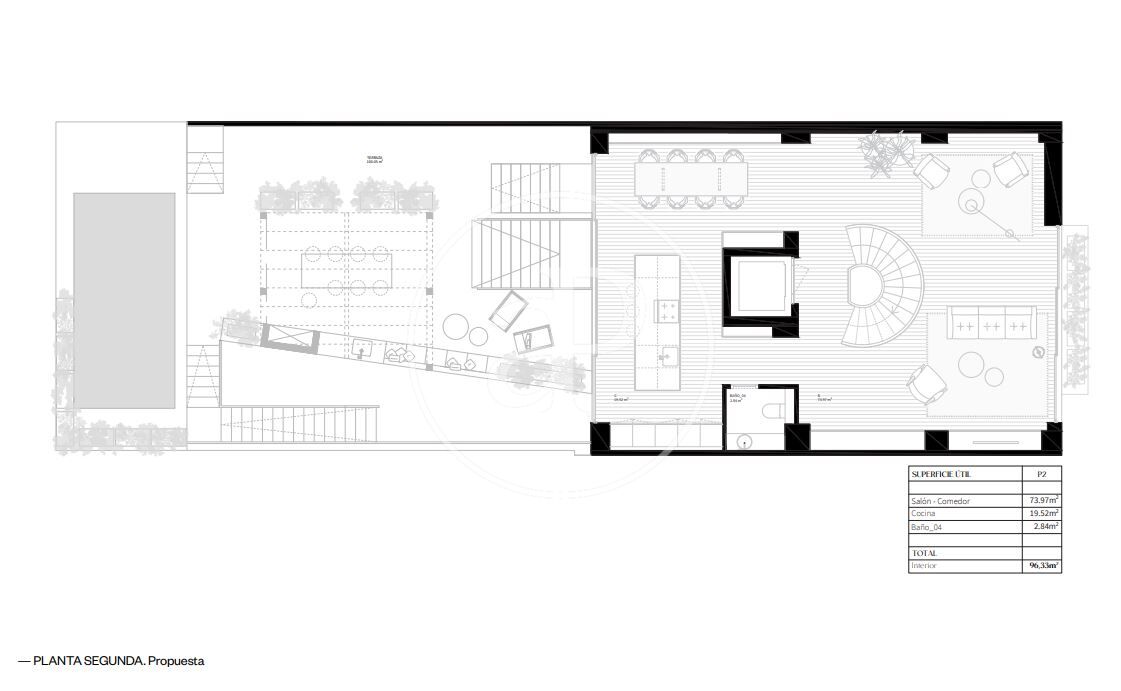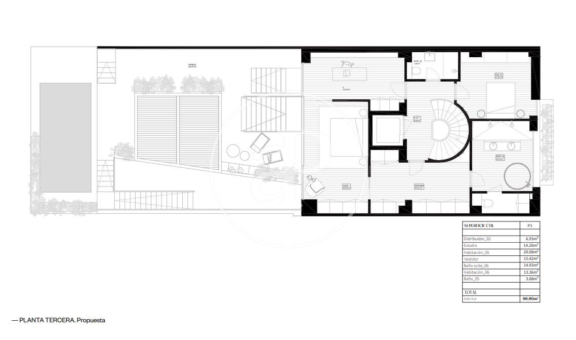 En la tercera planta està el saló menjador dividit en dos ambients amb accés directe a la terrassa, un petit office per a donar suport a la zona de cuina i un lavabo.