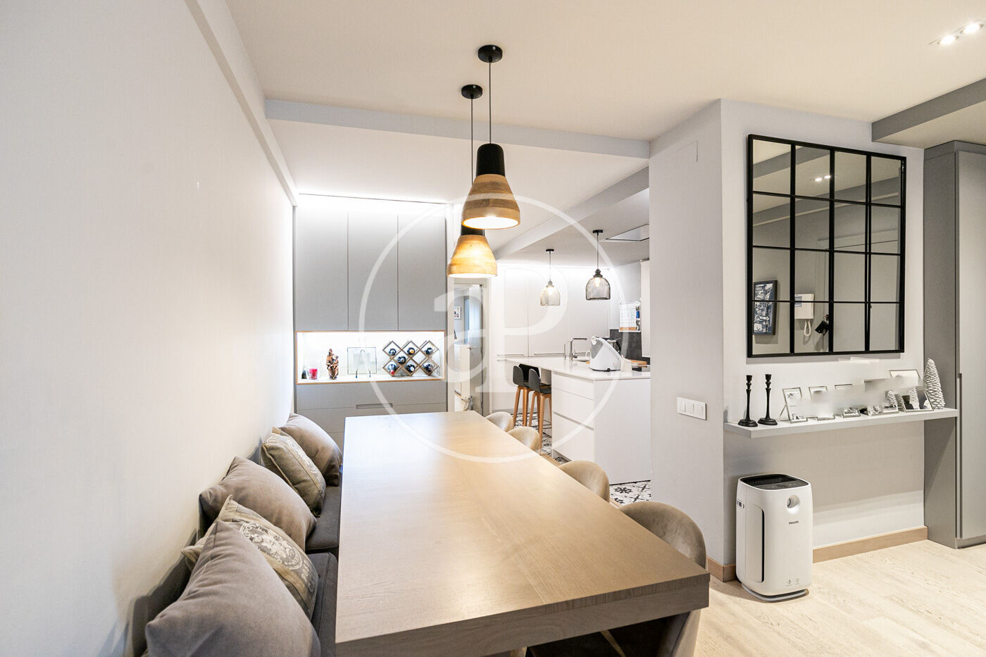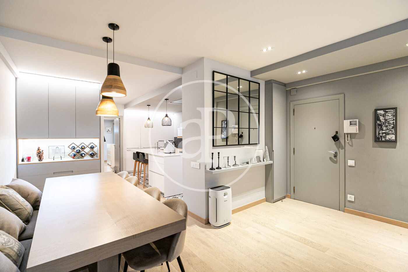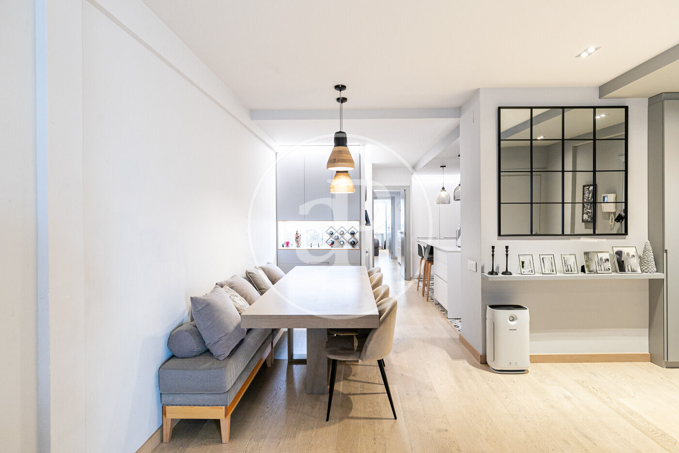 Encantador pis acabat de reformar amb gust i qualitat, en ple cor del barri de La Bonanova. Envoltat de comerços, transport públic i molt pròxim a zona de col·legis. Aquesta propietat es distingeix per la seva distribució acuradament dissenyada, que es divideix en dues àrees principals.