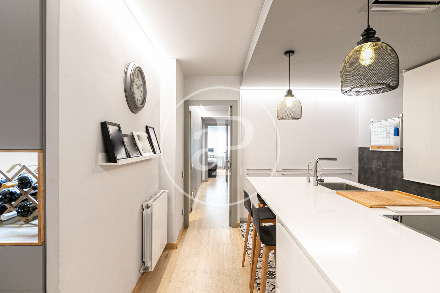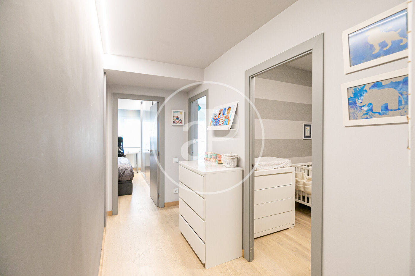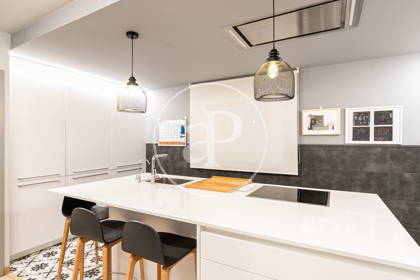 Encantador pis acabat de reformar amb gust i qualitat, en ple cor del barri de La Bonanova. Envoltat de comerços, transport públic i molt pròxim a zona de col·legis. Aquesta propietat es distingeix per la seva distribució acuradament dissenyada, que es divideix en dues àrees principals.