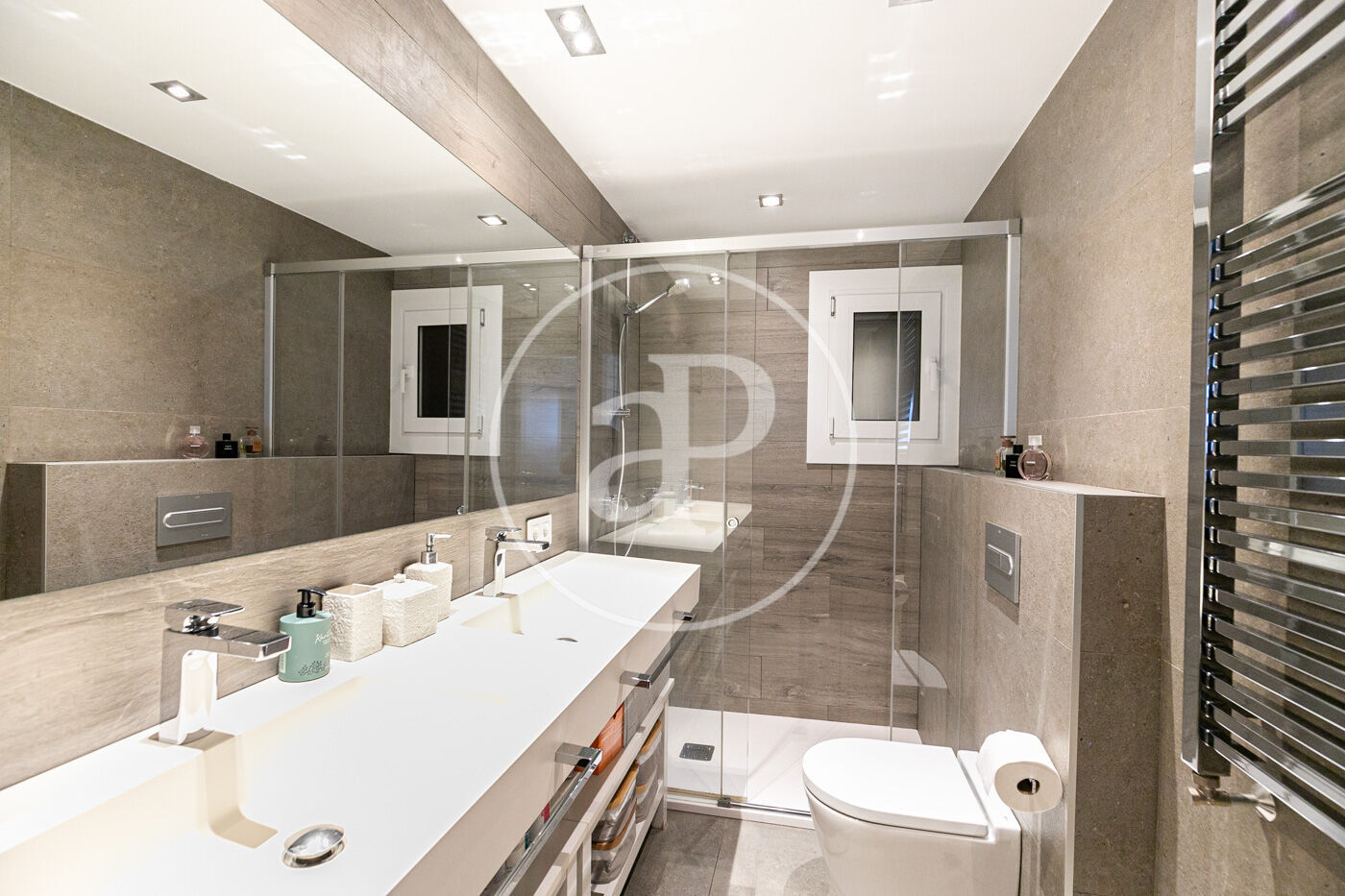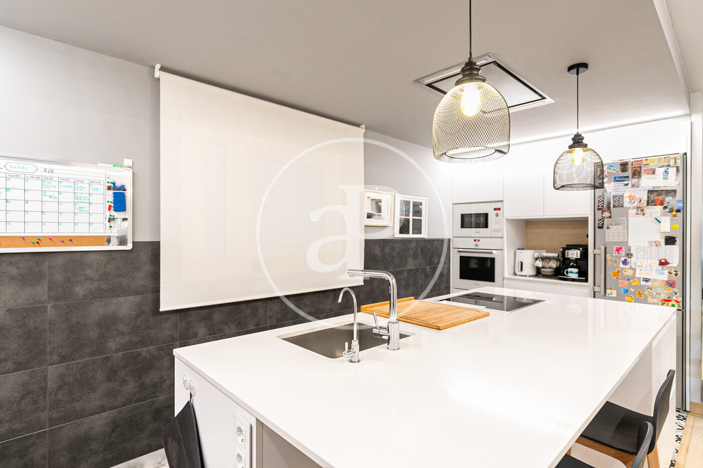 D'una banda, tenim un lluminós i acollidor saló menjador, amb sortida a una terrassa, on es fusiona perfectament amb una cuina semioberta de disseny modern. Al costat del saló, es troba un elegant despatx, proporcionant un espai funcional i versàtil per a treballar o estudiar des de la comoditat de la llar.