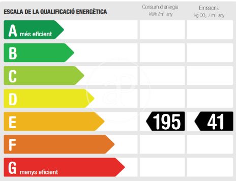Més eficient Menys eficient Qualificació energètica Consum energia Kw h/m² any Emissions Co/m² any 195.00 41.00