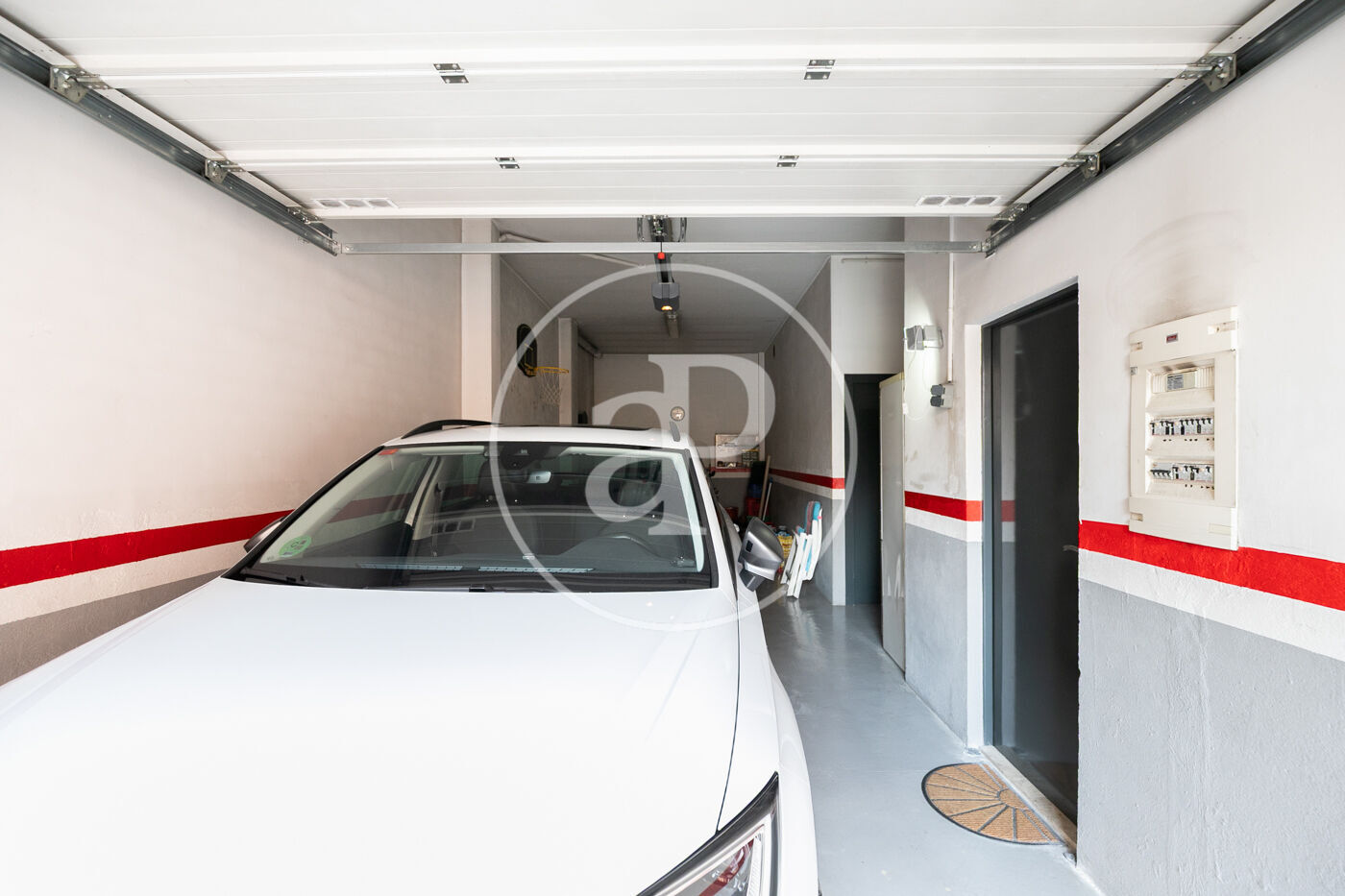 En entrar a l’habitatge trobem un distribuïdor amb unes escales per accedir al primer pis i una àmplia zona d’aparcament amb capacitat per a 2 cotxes, i un espai addicional utilitzat com a traster, a més d’un celler.