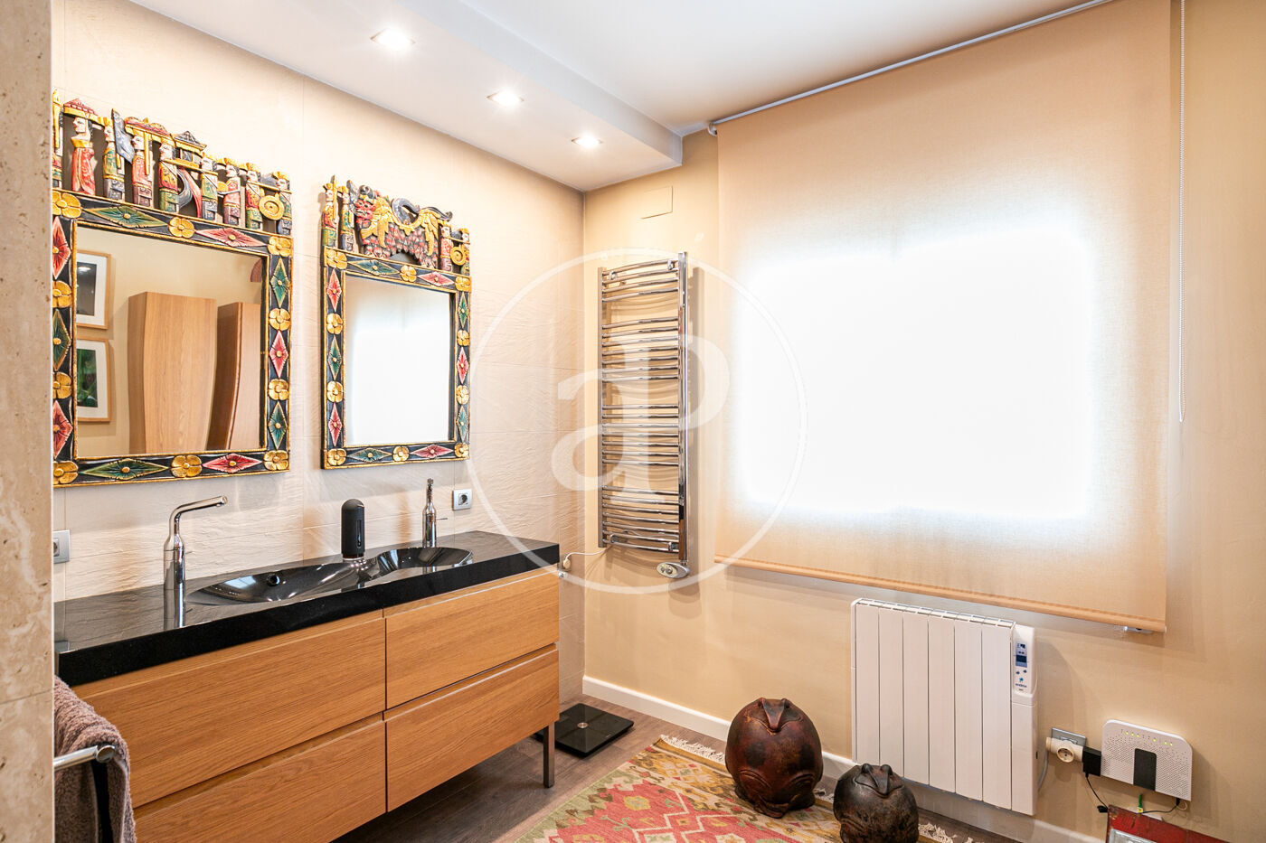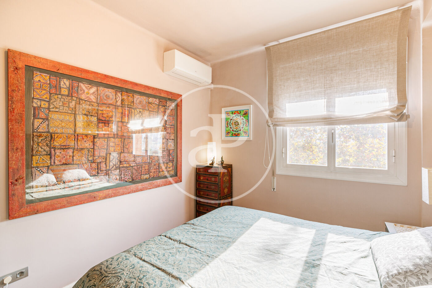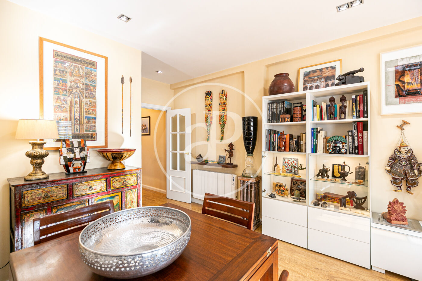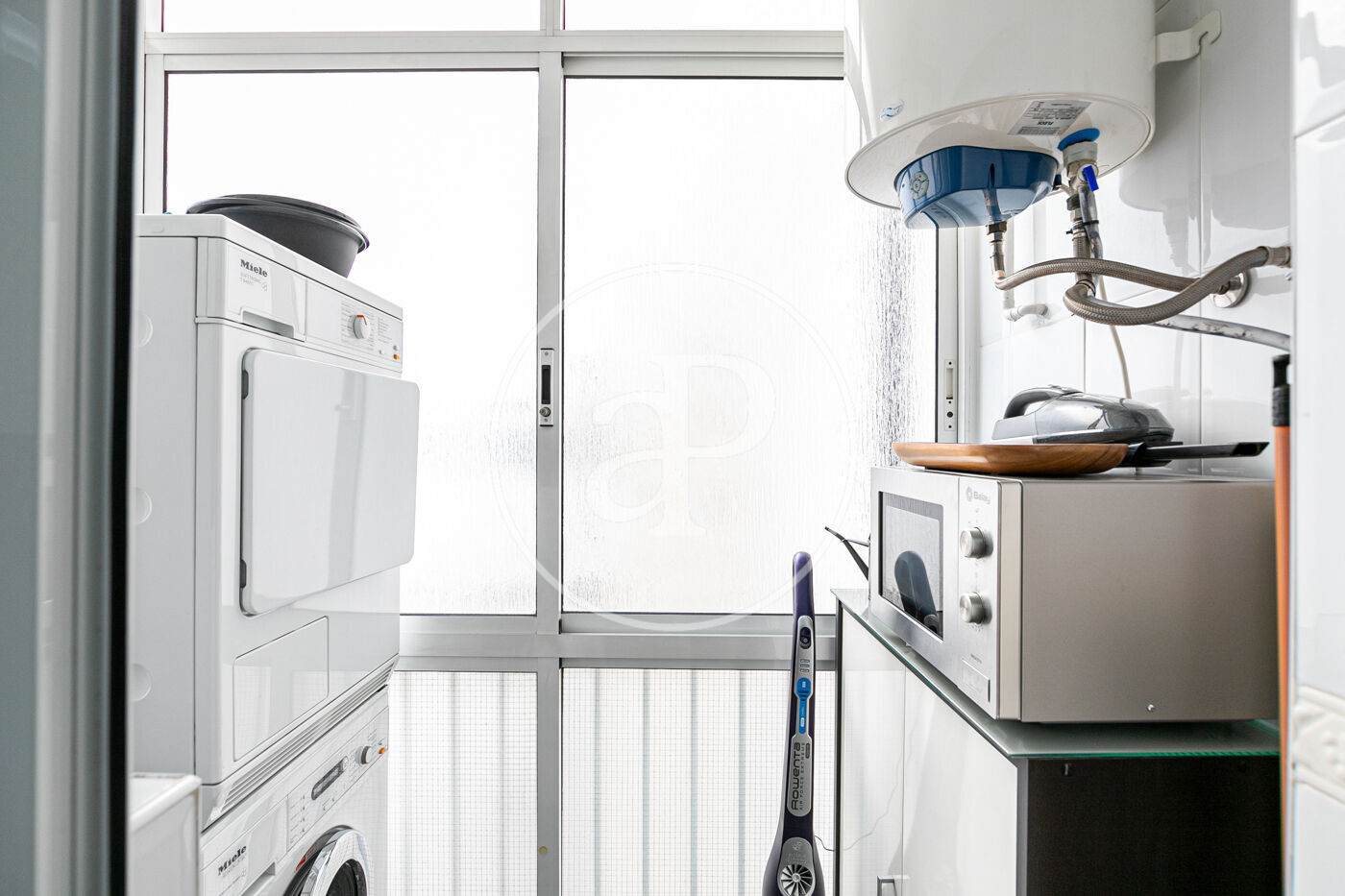 La finca disposa d'una gran porteria, ascensor i està molt cuidada. S'accedeix a l'habitatge per un distribuïdor, a mà dreta trobem la cuina reformada amb tots els detalls i electrodomèstics i que té afegida una zona de bugaderia amb molta llum, on poder rentar i assecar la bugada fàcilment. Seguidament ens trobem amb un preciós i ampli saló/menjador que dona accés a un balcó mitjà amb bones vistes i un increïble sol de tarda, que ho fa un espai molt especial per a gaudir i recarregar energia. Aquest espai també compta amb una zona de despatx. El pis consta de 2 dormitoris (abans 4) perquè es va fer una reforma íntegra recentment, donant-li més espai al saló/menjador i al bany principal. Des del saló/menjador arribem a un petit distribuïdor amb un gran armari de paret que actua com a zona de traster i al qual accedim al dormitori individual (de bona grandària), al dormitori de matrimoni i a un sensacional bany. Totes les estades són exteriors.
