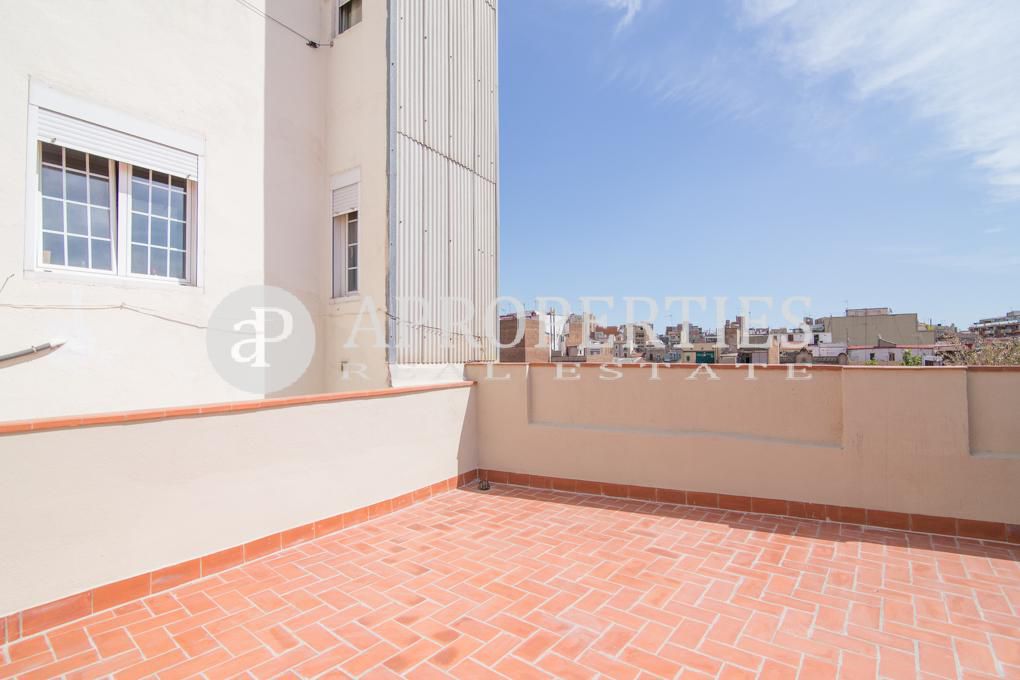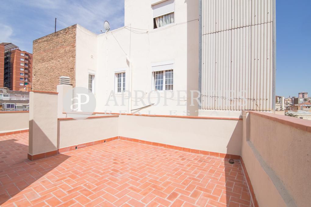 Aquest apartament recentment reformat d'aproximadament 60m² està situat en una plaça molt tranquil·la, a prop del mercat de la Bordeta i al costat de la rambla Badal, en una zona molt ben comunicada amb línies de metro i bus. El pis disposa d'un assolellat saló-menjador amb vistes a la plaça, una cuina tipus americana totalment equipada amb electrodomèstics de primeres marques, una habitació doble i una individual que comparteixen un bany amb dutxa. Les dues habitacions són exteriors i disposen d'armaris de paret. L'immoble té aire condicionat i calefacció. El sòl és de parquet. A més, el pis compta amb una agradable terrassa privativa. La finca té ascensor.