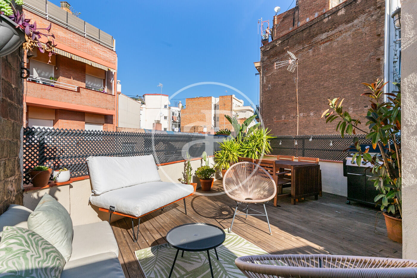 A cinc minuts de la Plaça Espanya i de l'Estació de Sants, trobem aquest àtic amb encant, situat en una finca totalment reformada amb tan sols tres veïns i acabats de gran qualitat. Envoltat de carrers semipeatonals, molt tranquils i agradables.