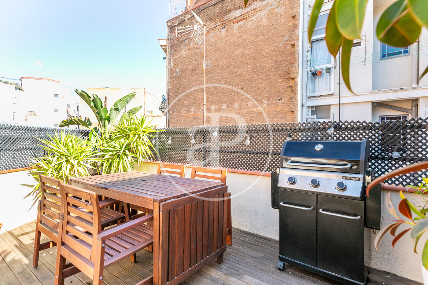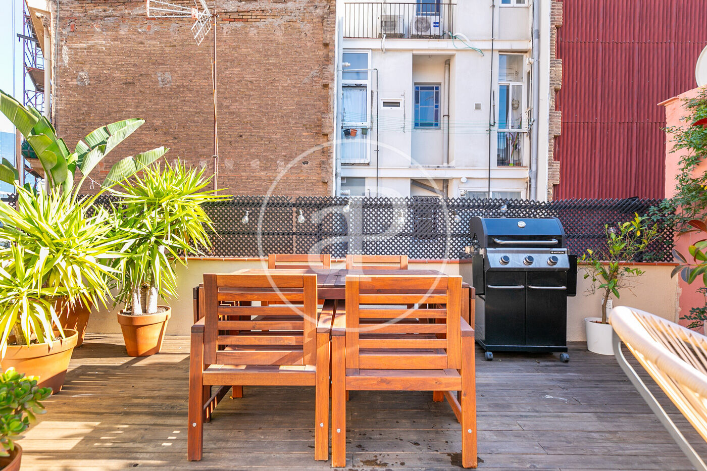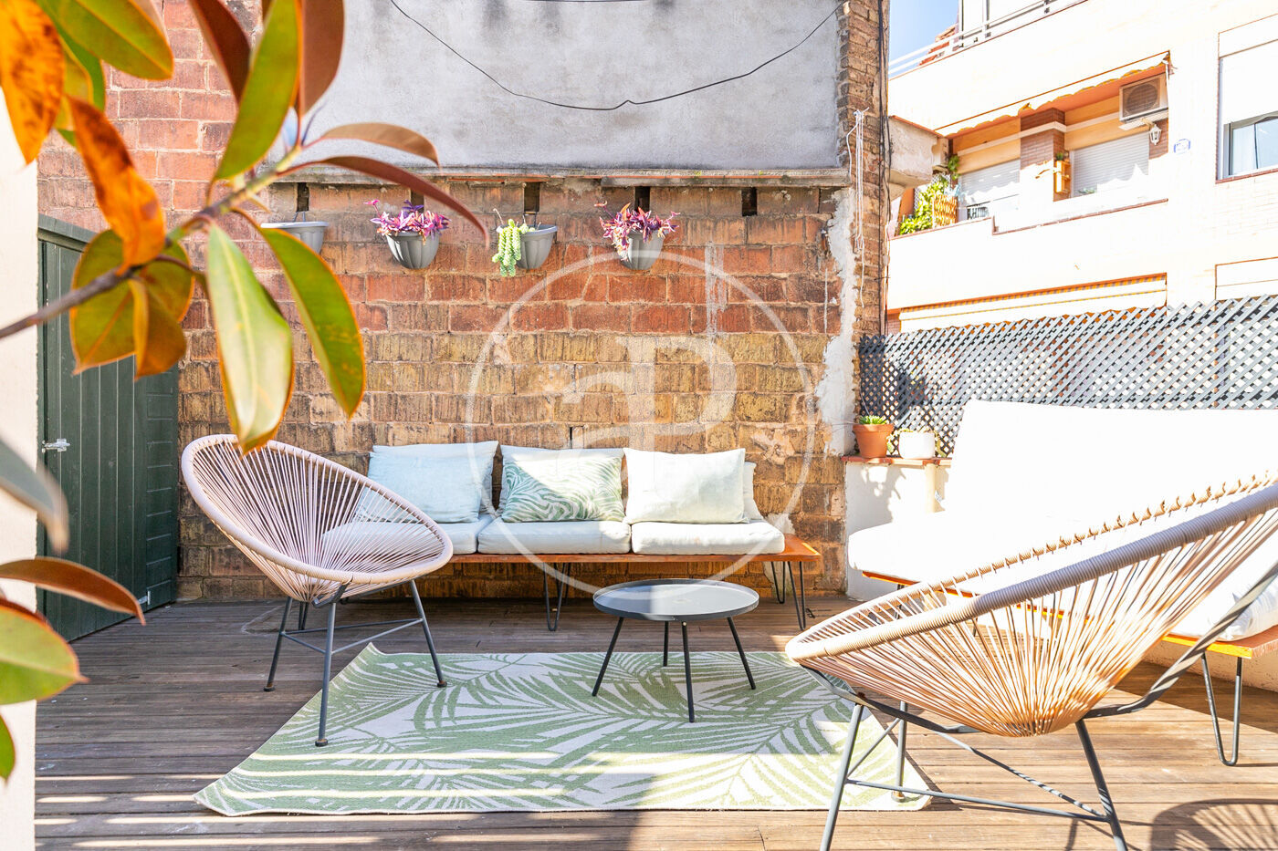 A la planta superior, podem gaudir d'una terrassa privada de 27 m² amb terra de fusta, un petit traster i una fantàstica zona per gaudir amb la família i els amics.