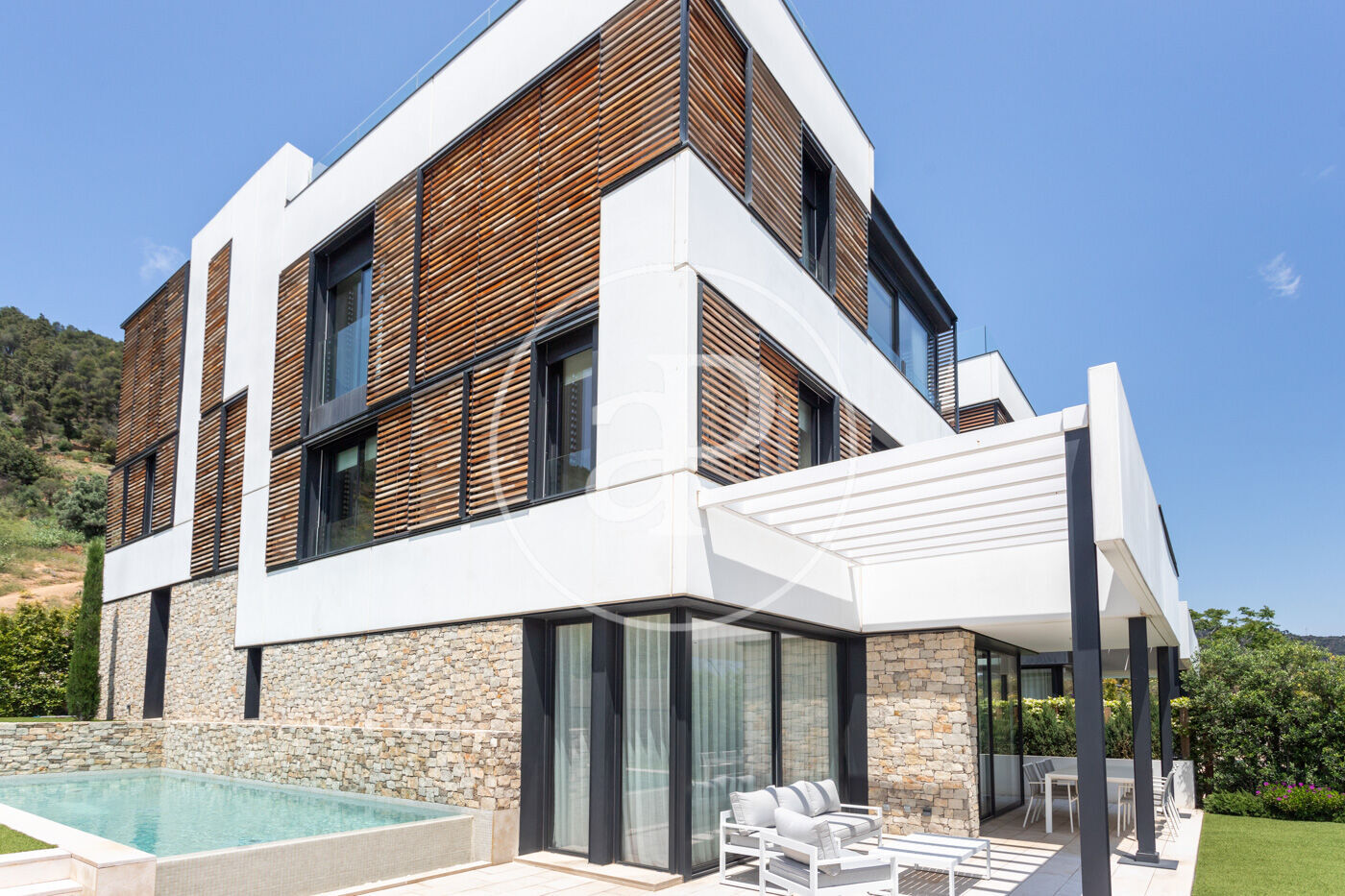 Espectacular i moderna casa de 500m² amb piscina privada i vistes sensacionals de Barcelona. Es troba a la zona alta, ubicada a Can Caralleu, Sarrià. Nova a estrenar.