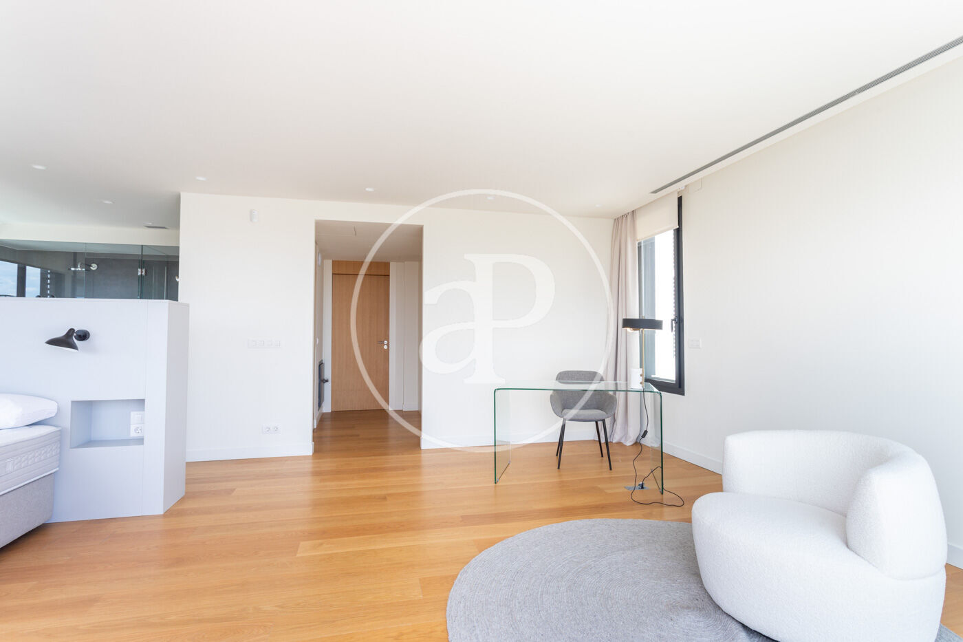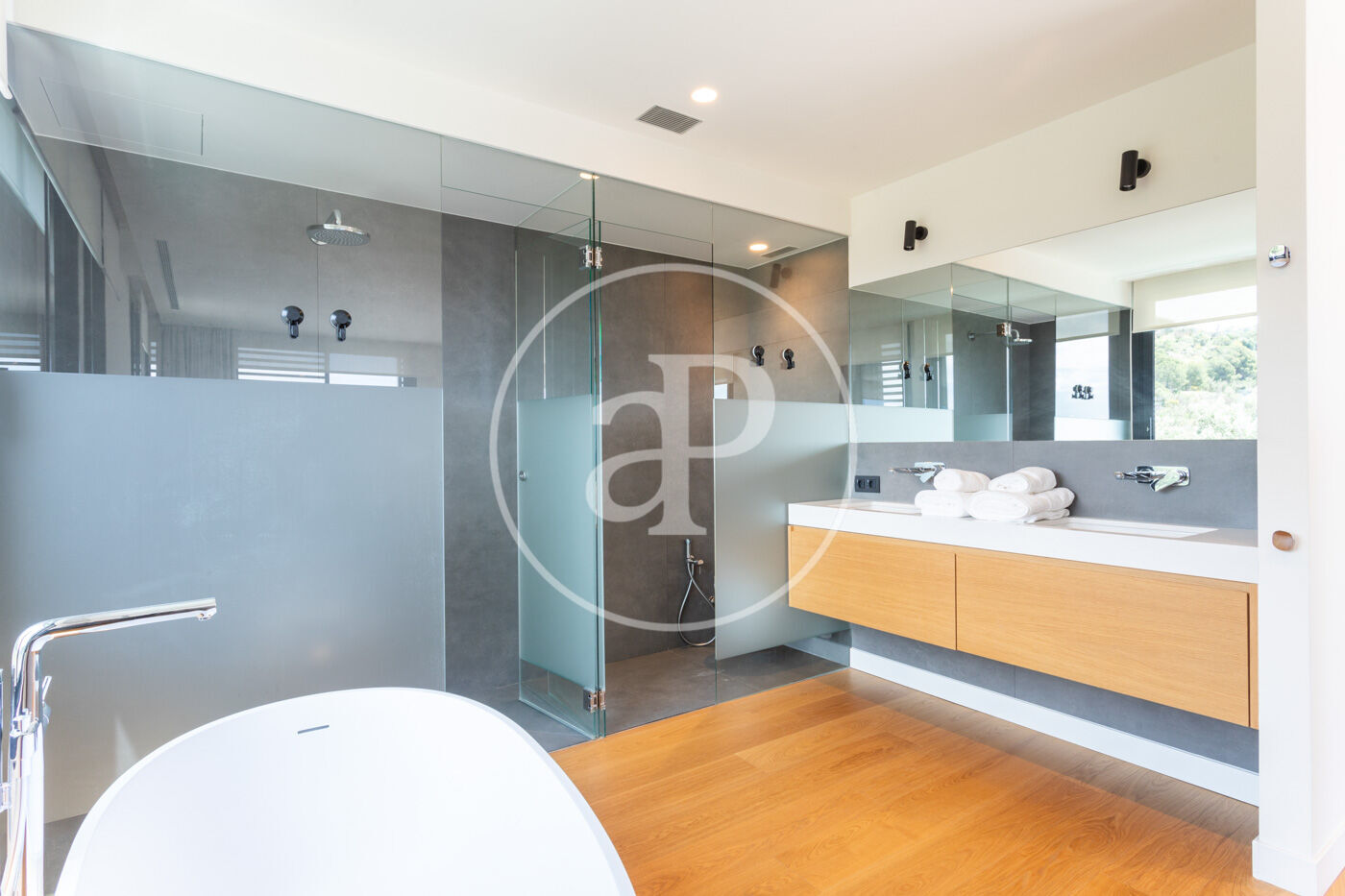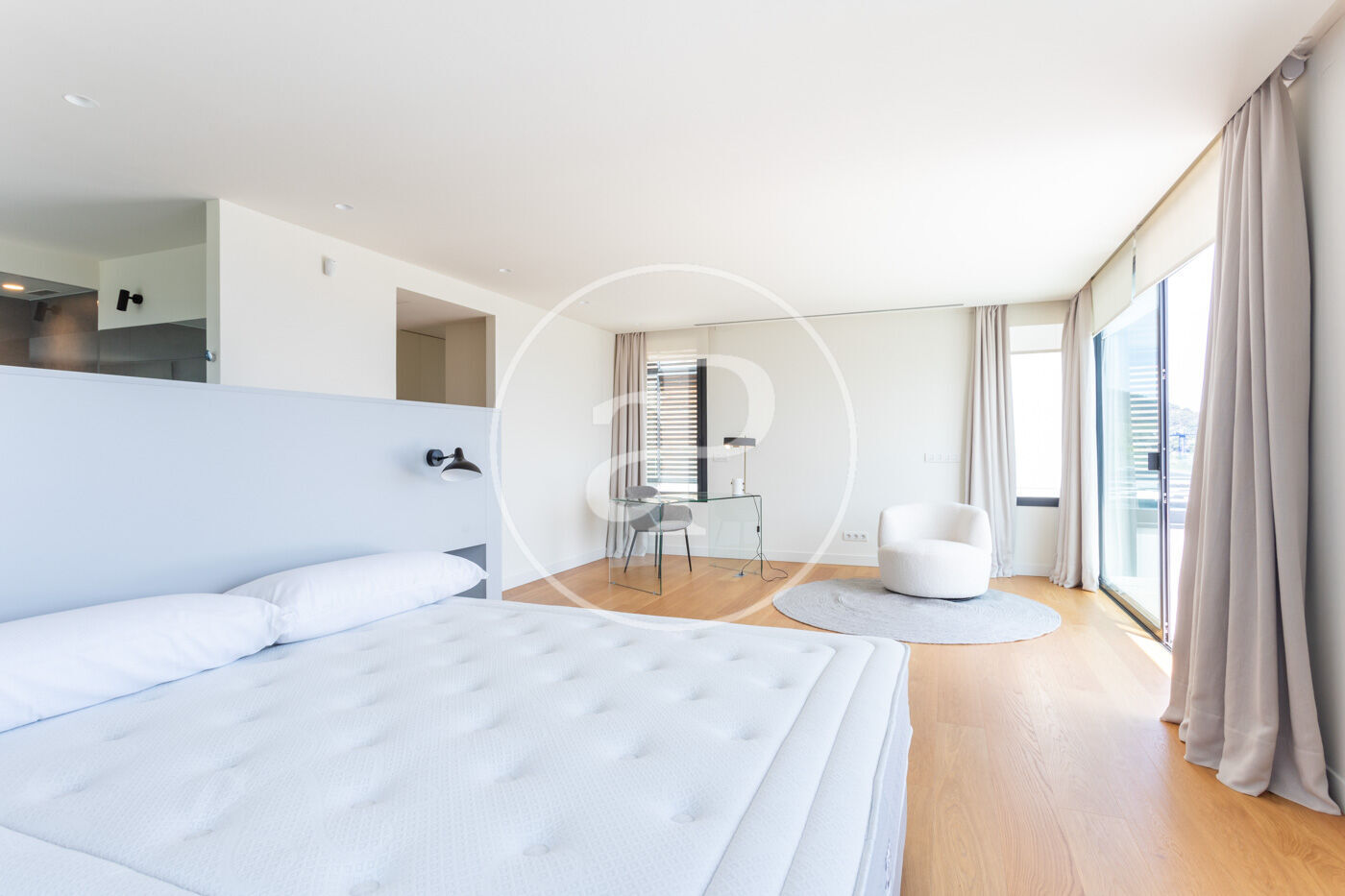 A la primera planta, trobem l'habitació principal en suite amb sortida a una terrassa privada. L'habitació disposa de vestidor, banyera de disseny i dutxa.