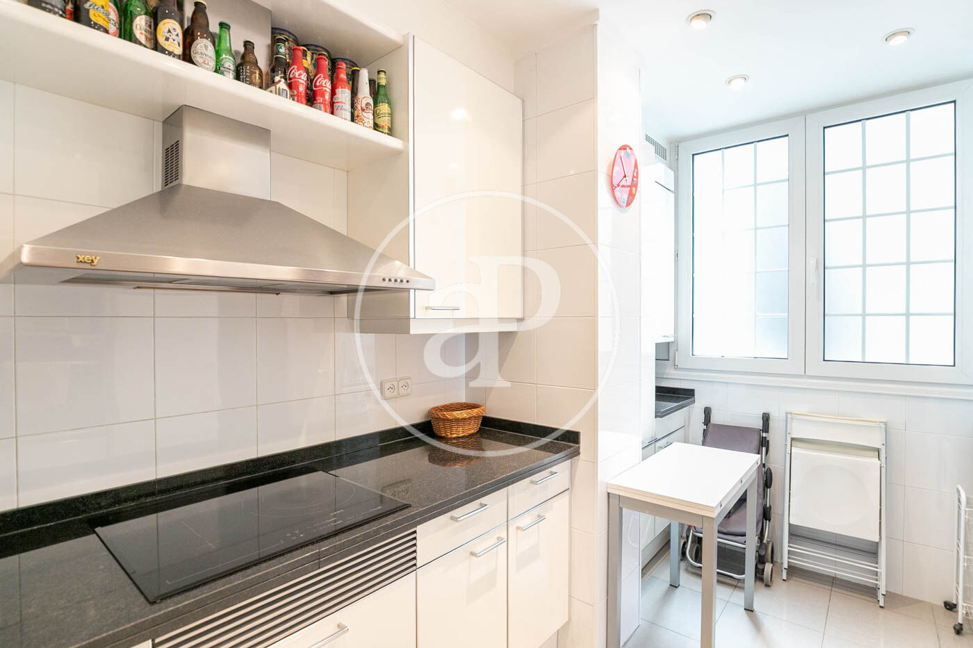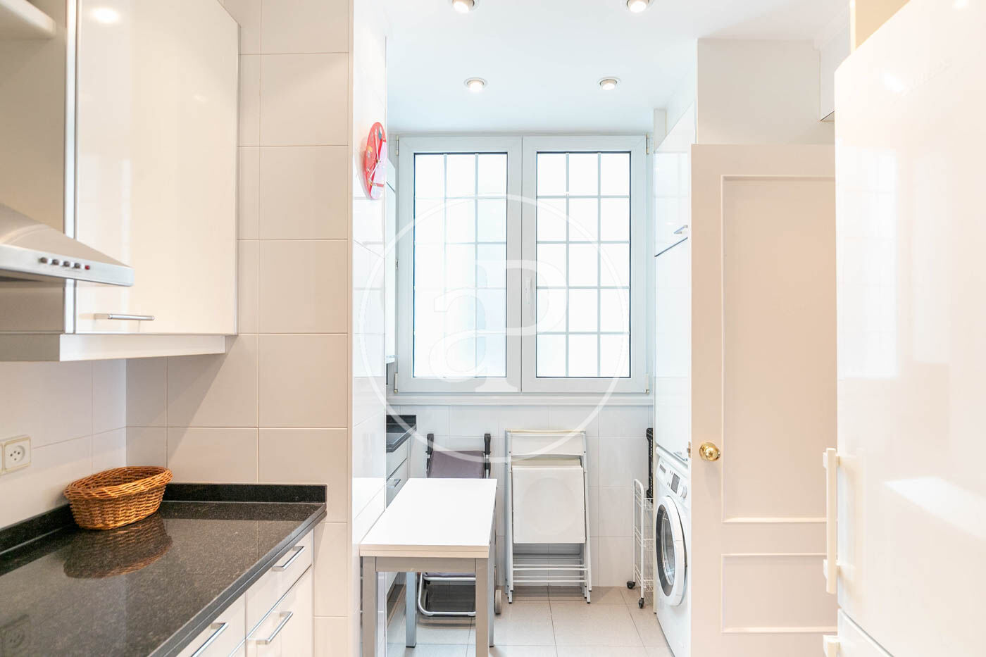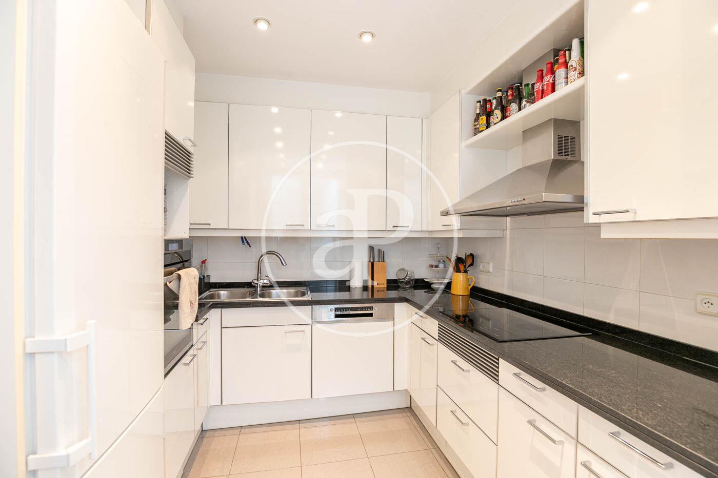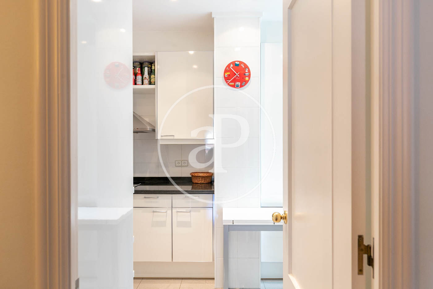 Accedim a la propietat a través d’un rebedor que connecta amb un ampli i lluminós saló menjador, decorat amb molt de gust amb mobiliari fet a mida i accés directe a una terrassa molt agradable. Completen la zona de dia una cuina independent totalment equipada.