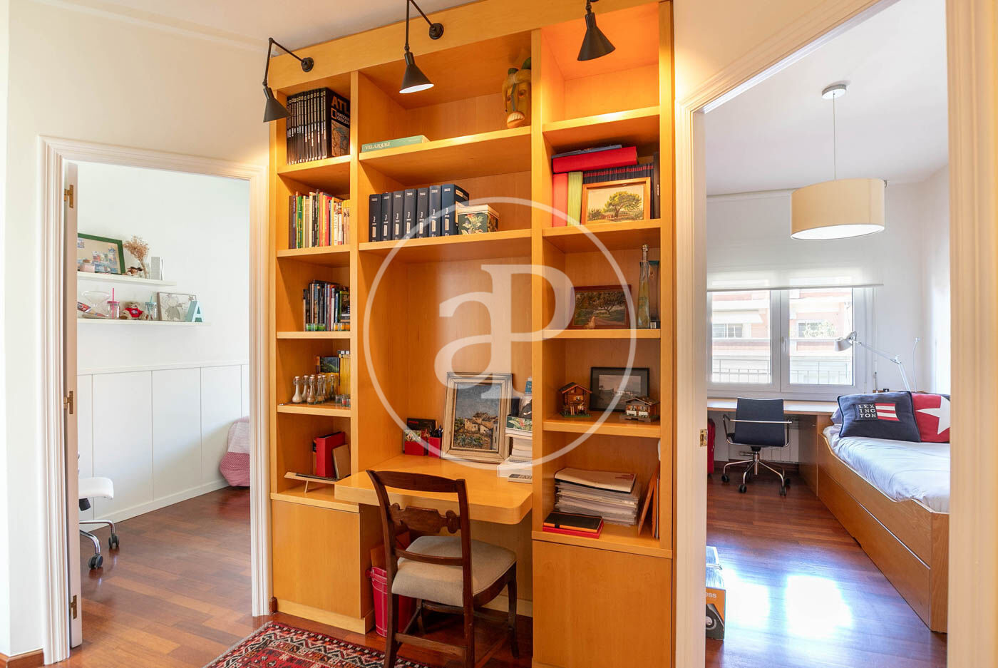 La zona de nit ens rep a través d’un distribuïdor que connecta amb un espai molt acollidor que fa la funció de zona de treball. La propietat compta amb tres dormitoris amplis i dos banys complets.