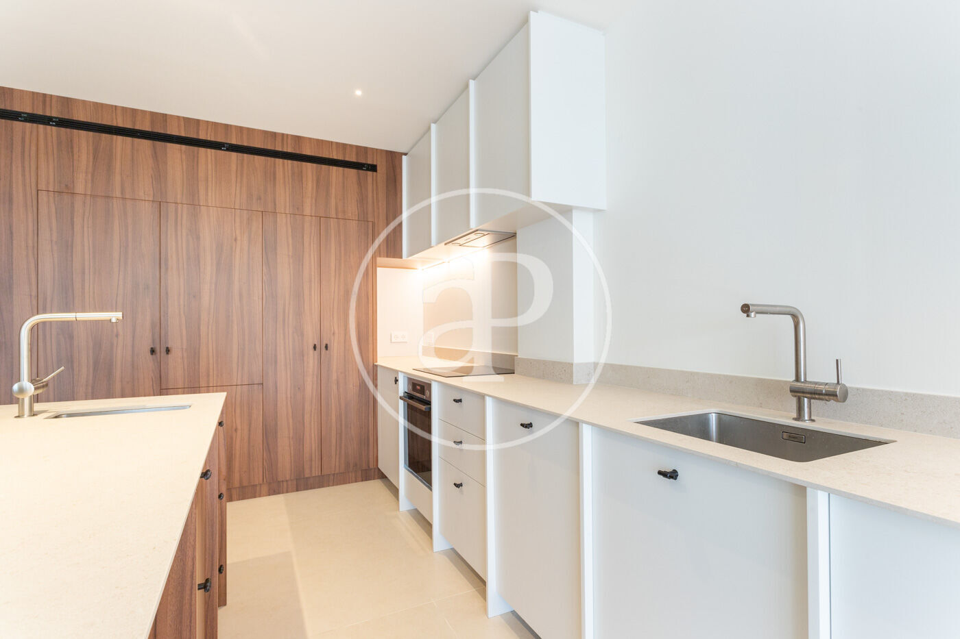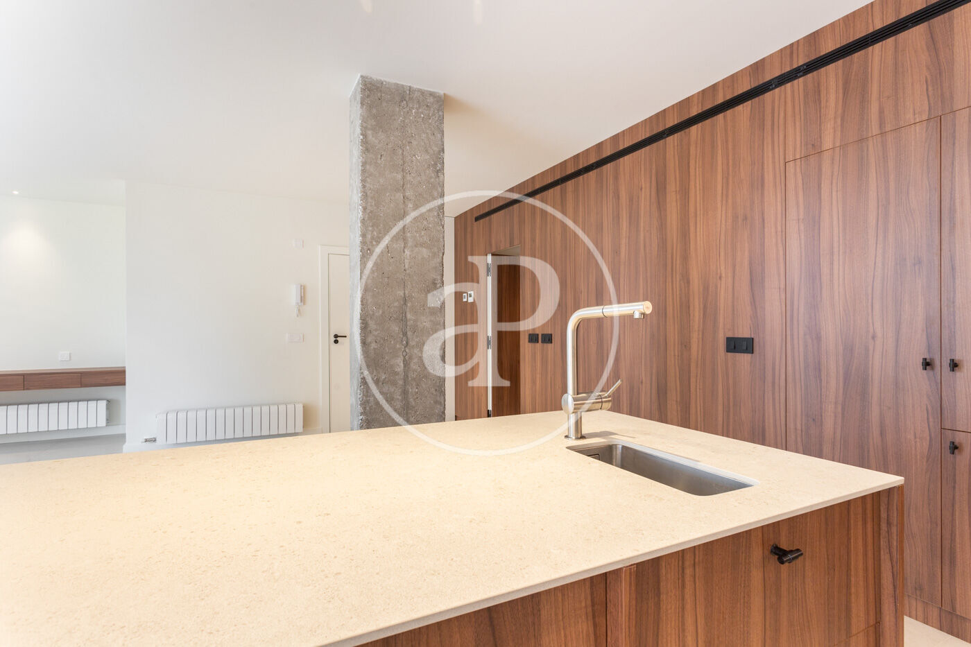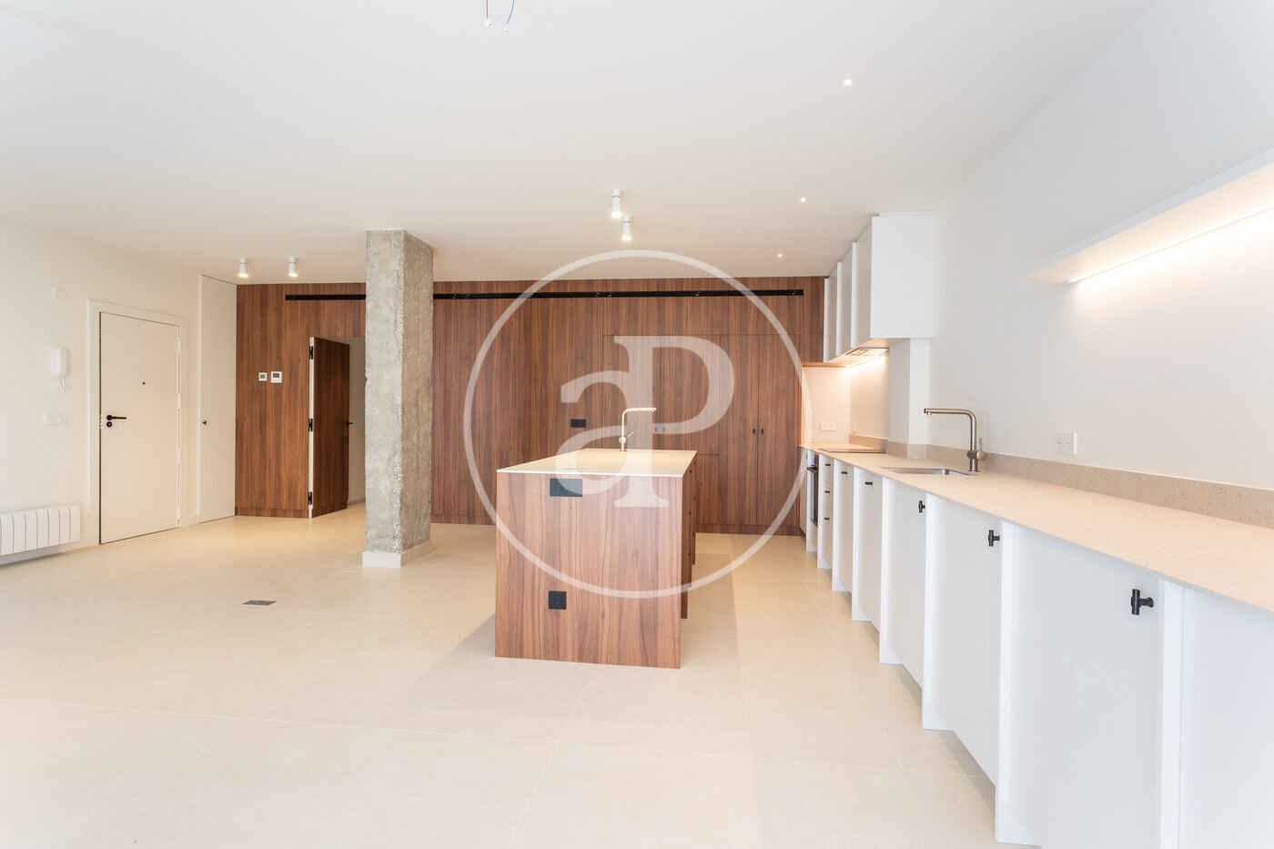 L'habitatge presenta un magnífic saló-menjador, amb cuina oberta, ple de llum natural i amb accés a un ampli balcó. Cuina equipada. Disposa d'un lavabo de cortesia.