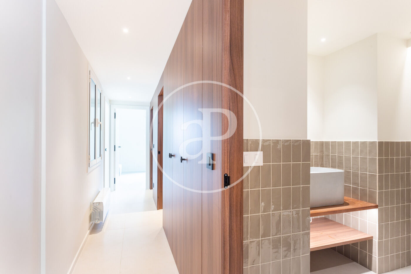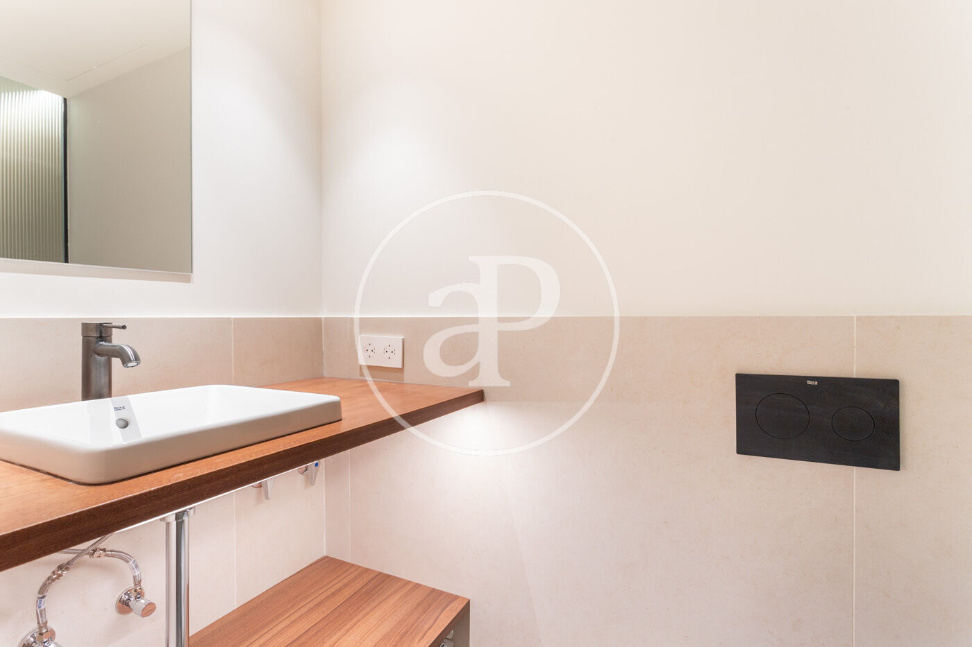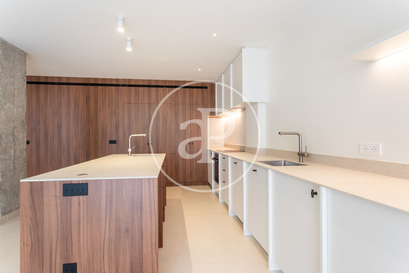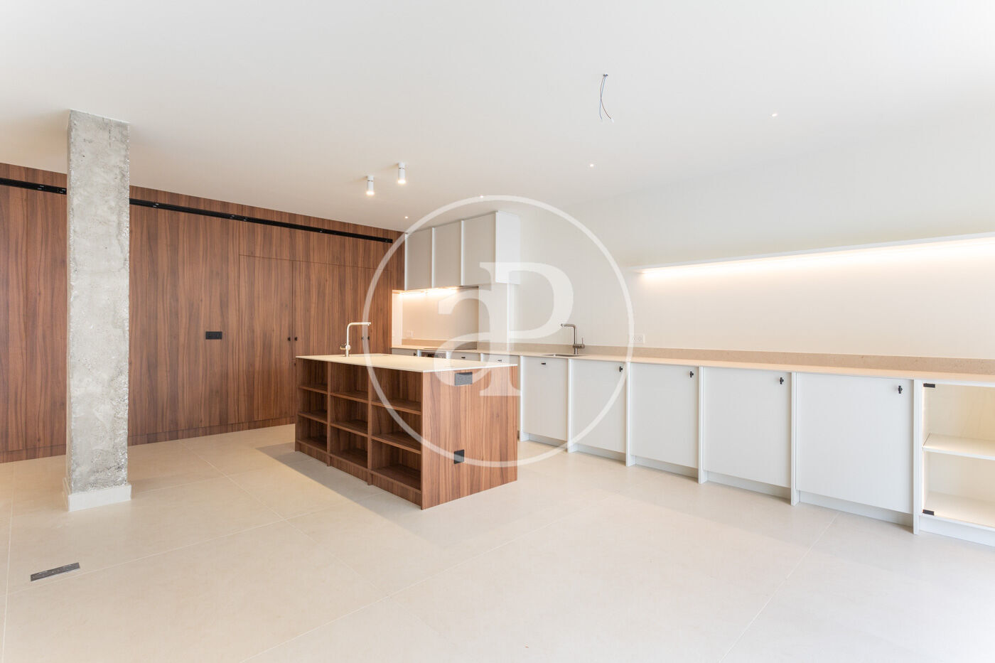 L'habitatge presenta un magnífic saló-menjador, amb cuina oberta, ple de llum natural i amb accés a un ampli balcó. Cuina equipada. Disposa d'un lavabo de cortesia.