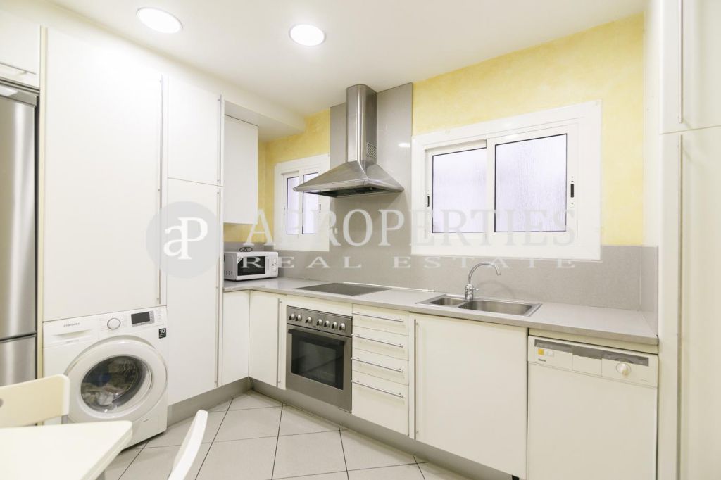 A un pas de la Diagonal, de El Corte Inglés, i de l'Església de Santa Gemma, al carrer del Capità Arenas, envoltat de comerços, proper al Liceu Francès i altres col·legis internacionals de prestigi, molt ben comunicat per tot tipus de transport, trobem aquest pis moblat de 80m² amb dos dormitoris i una terrassa de 5m². Consta de; rebedor, sala - menjador amb sortida a una agradable terrassa, cuina independent completament equipada. La zona de nit disposa de dos dormitoris dobles amb armaris encastats i un bany complet amb banyera. El pis és completament exterior i molt lluminós, i disposa de terres de parquet, calefacció per radiadors i aire condicionat per conductes. La finca té dos ascensors i servei de consergeria.