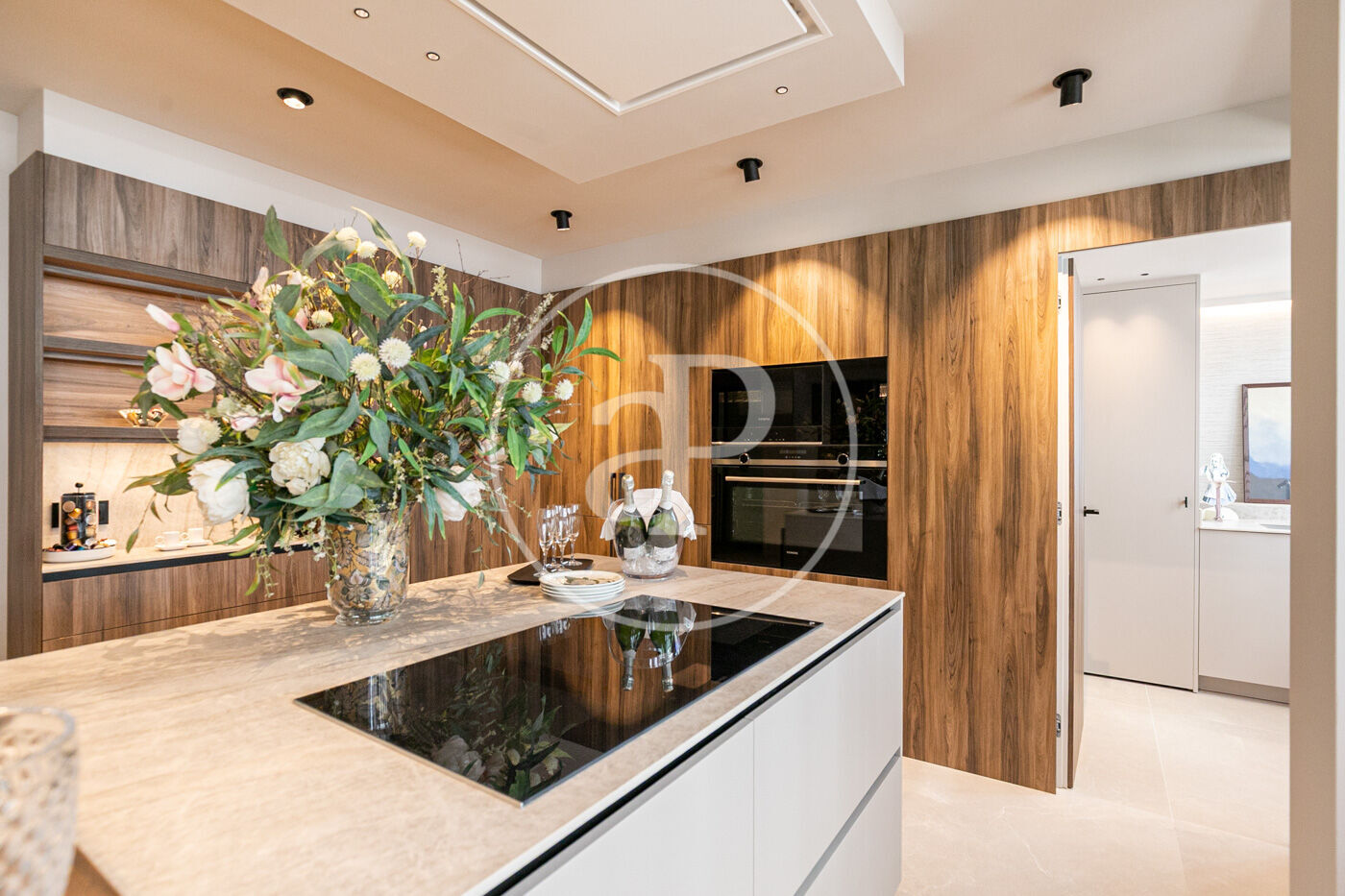 La cuina, de grans dimensions, compta amb zona de menjador, pràctica zona d’aigües i un lavabo de cortesia. La zona de nit ofereix quatre habitacions, totes en suite: una gran màster suite amb vestidor, dues habitacions dobles amb armaris encastats i una d’individual.