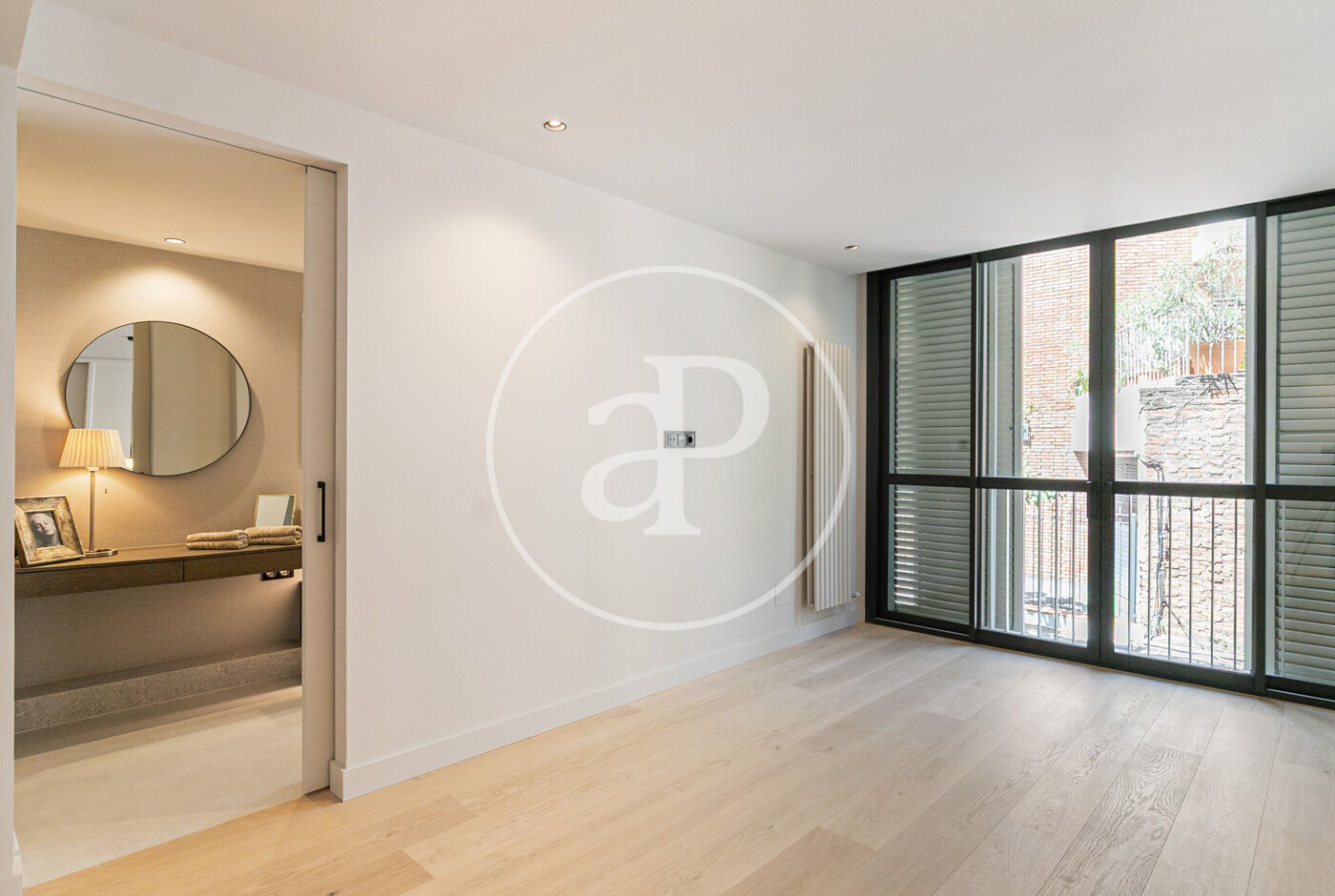A la zona alta de Barcelona, trobem aquesta elegant casa de luxe a quatre vents de 305 m² amb terrassa i aparcament exterior, situada al districte de Sarrià, una de les zones més prestigioses de la ciutat, molt ben comunicada amb les entrades i sortides de Barcelona i amb els prestigiosos col·legis internacionals com Benjamín Franklin i Oak House. La casa es distribueix en tres plantes. Accedim per la planta principal, on ens rep un ampli espai diàfan amb cuina integrada i sortida directa a una generosa terrassa, ideal per gaudir en família. Aquesta planta també compta amb la zona de servei amb bany inclòs i zona d’aigües amb sortida independent. Aquesta planta també disposa d’una habitació de mida junior amb bany complet enfront. A la primera planta trobem tres habitacions: la suite, molt lluminosa i amb sortida a un balcó. A l'altre costat del distribuïdor s’ubiquen dues habitacions dobles exteriors que comparteixen un bany complet. Totes les habitacions disposen d'armaris encastats, oferint gran capacitat d'emmagatzematge i comoditat. La planta inferior alberga tres espais versàtils amb sostres alts abovedats, ideals per gaudir com a sala de cinema, zona de jocs o gimnàs privat. La casa disposa d’una gran terrassa privada. També compta amb zona d'aparcament per a dos cotxes i possibilitat d'instal·lar una pèrgola. Calefacció i aire condicionat per splits, sòl porcelànic imitació parquet i fusteria d’alumini. Connexió de fibra òptica, routers a ambdues plantes i preses RJ45 a les habitacions. Sistema d’alarma amb sensors de moviment i obertura a portes i finestres. Disponibilitat immediata.* En compliment de la Llei 12/2023 i la Llei 18/2007 informem que:Índex de R.P.LL: 29,00 € / m2 Respecto a la presente propiedad no existe certificado informativo estatal de referencia de precios de alquilerLa presente propiedad tiene la consideración de suntuaria por razón de superficie y/o renta, y por ello de conformidad a la LAU no es de aplicación el índice estatal de referencia de precios de alquiler.