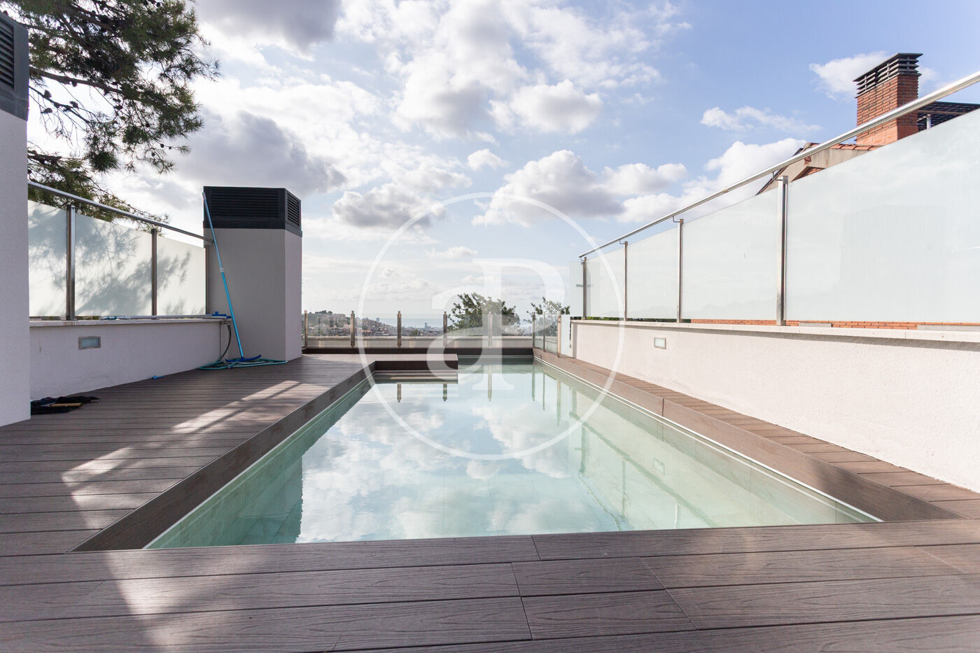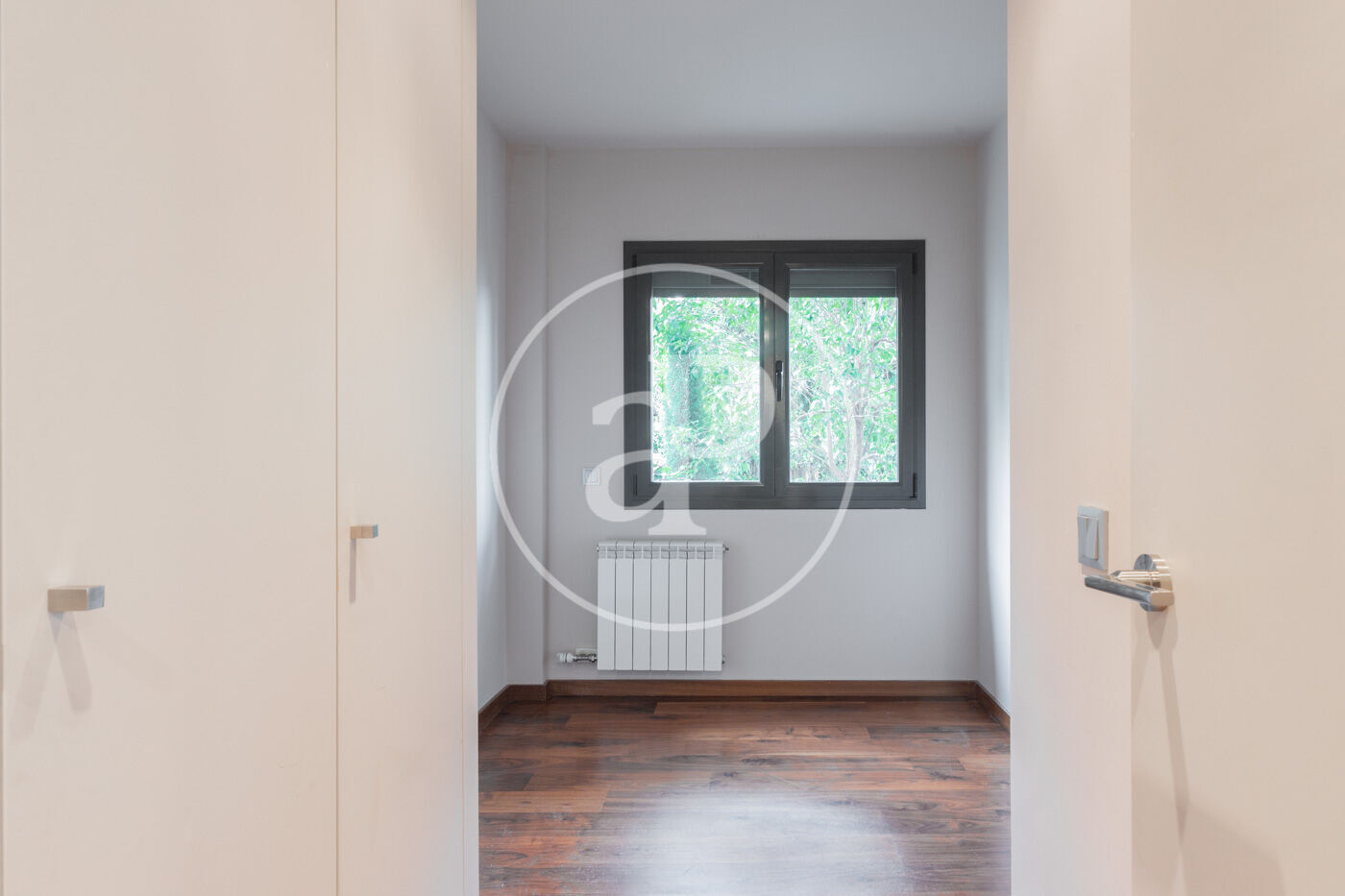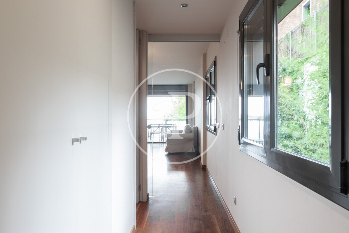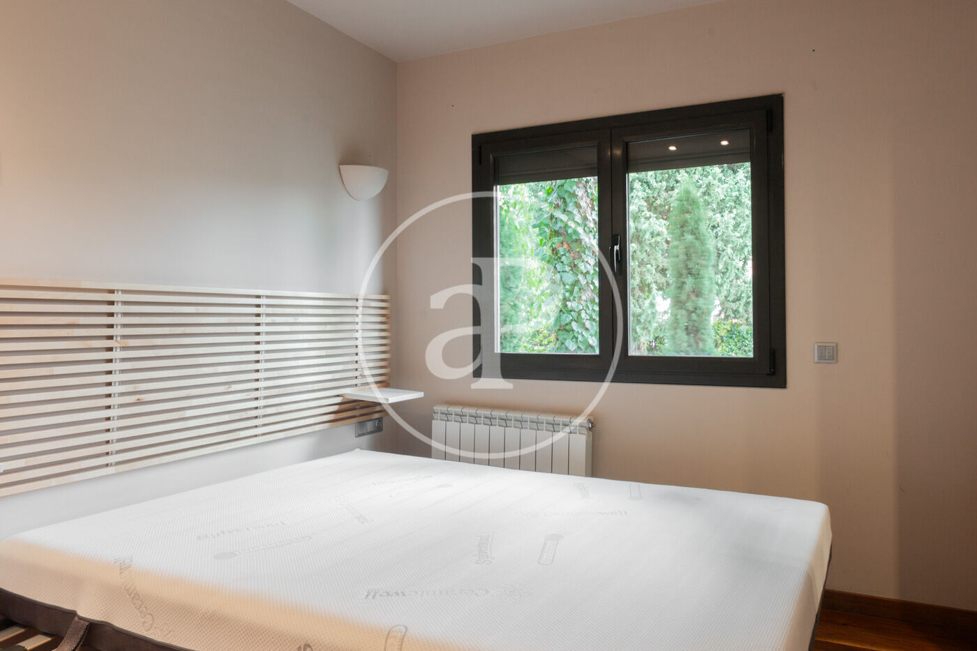 L’habitatge compta amb terres de parquet de fusta, calefacció de gas per radiadors i aire condicionat per conductes. Es lloga totalment moblat. La finca disposa d’ascensor, piscina i zona comunitària amb vistes espectaculars de Barcelona. Inclou una plaça d’aparcament a la mateixa finca. Ideal per a executius, parelles o famílies que vulguin viure en un entorn tranquil i envoltats de natura.