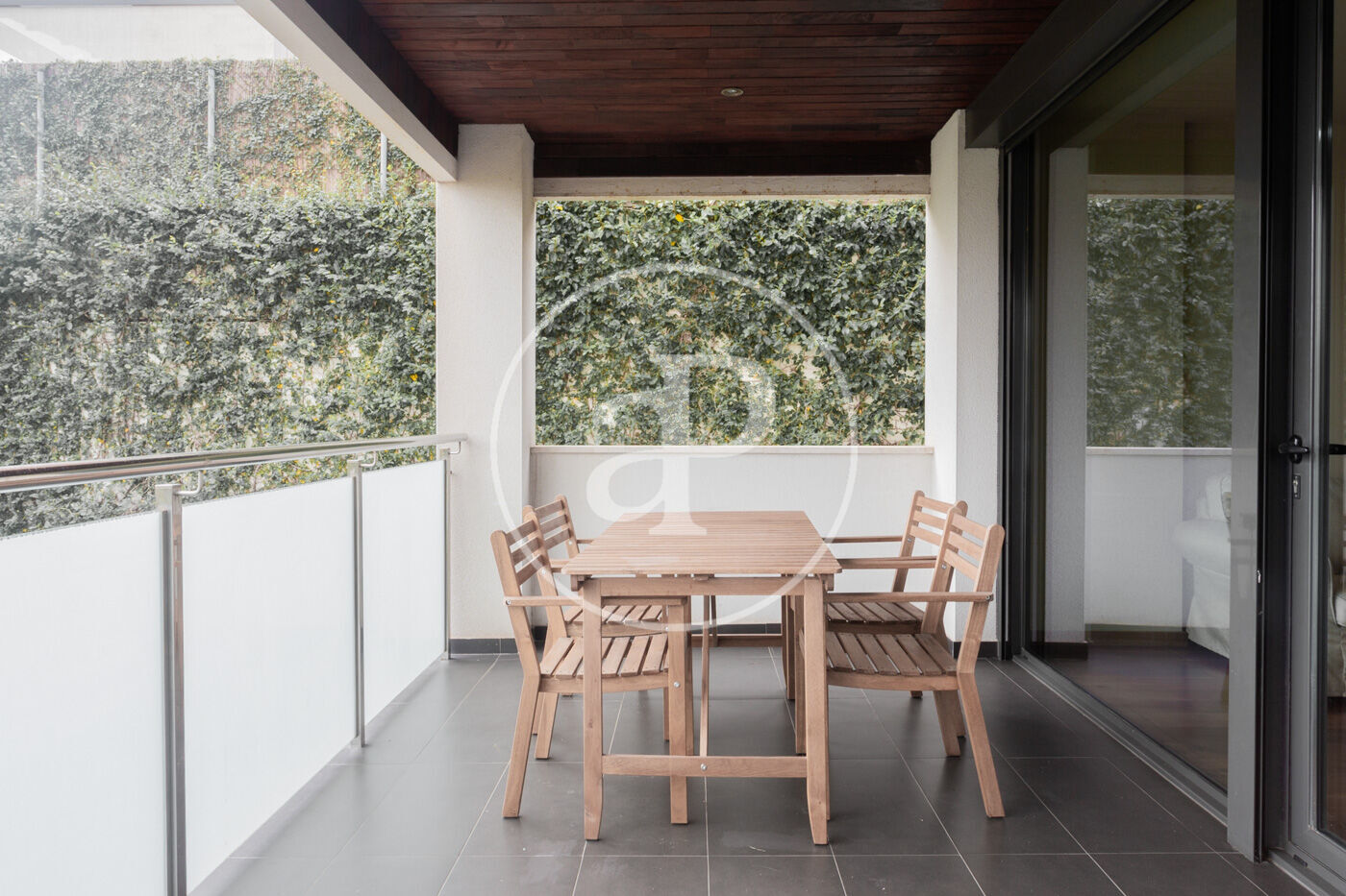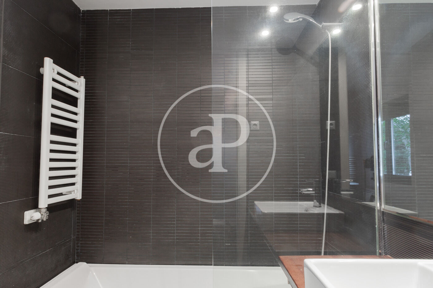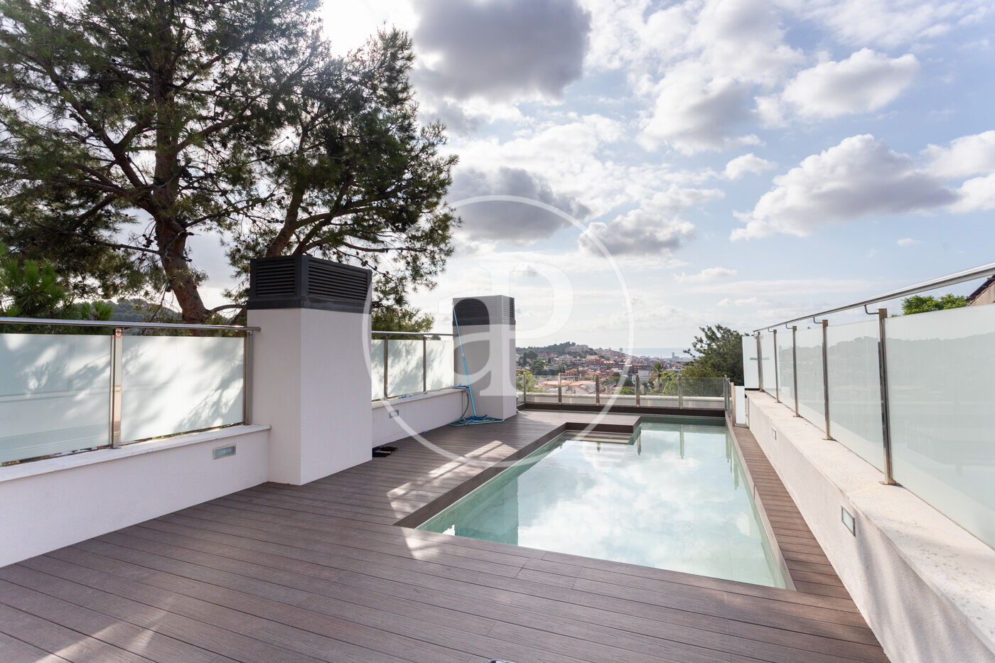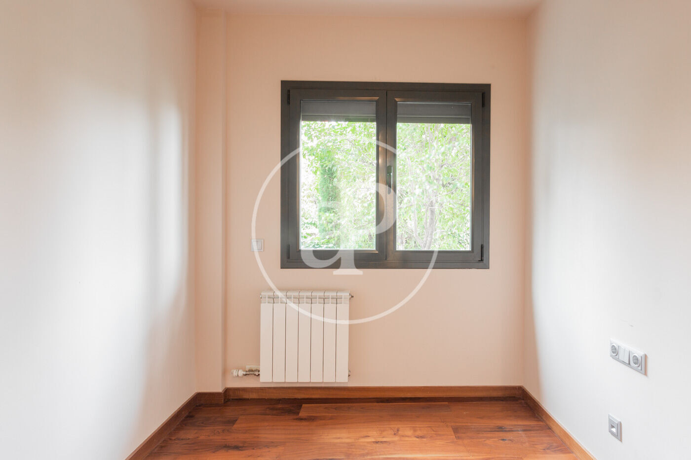 L’habitatge compta amb terres de parquet de fusta, calefacció de gas per radiadors i aire condicionat per conductes. Es lloga totalment moblat. La finca disposa d’ascensor, piscina i zona comunitària amb vistes espectaculars de Barcelona. Inclou una plaça d’aparcament a la mateixa finca. Ideal per a executius, parelles o famílies que vulguin viure en un entorn tranquil i envoltats de natura.