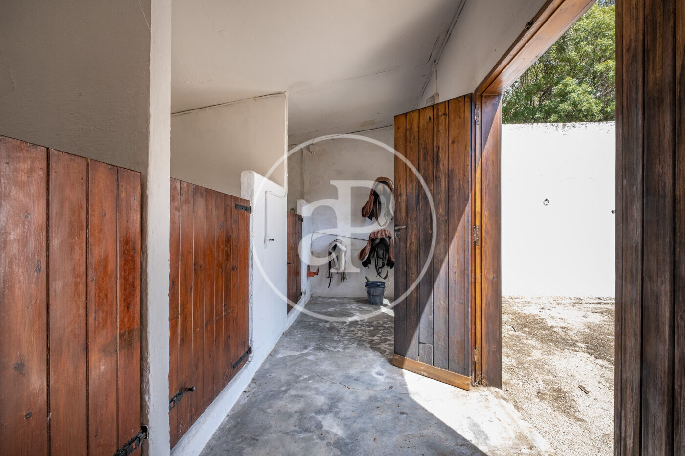 Piscina, amb terrassa-menjador exterior, vestuaris en piscina, sala de jocs, quadres per a cavalls i picador, vestuari equitació, casa unifamiliar per a guardes amb jardí propi.