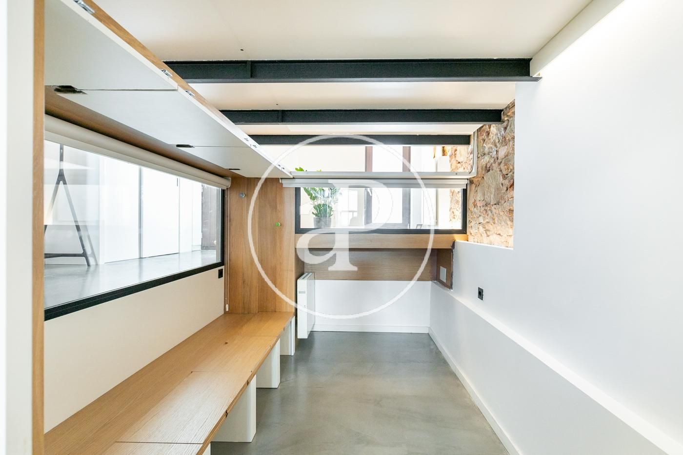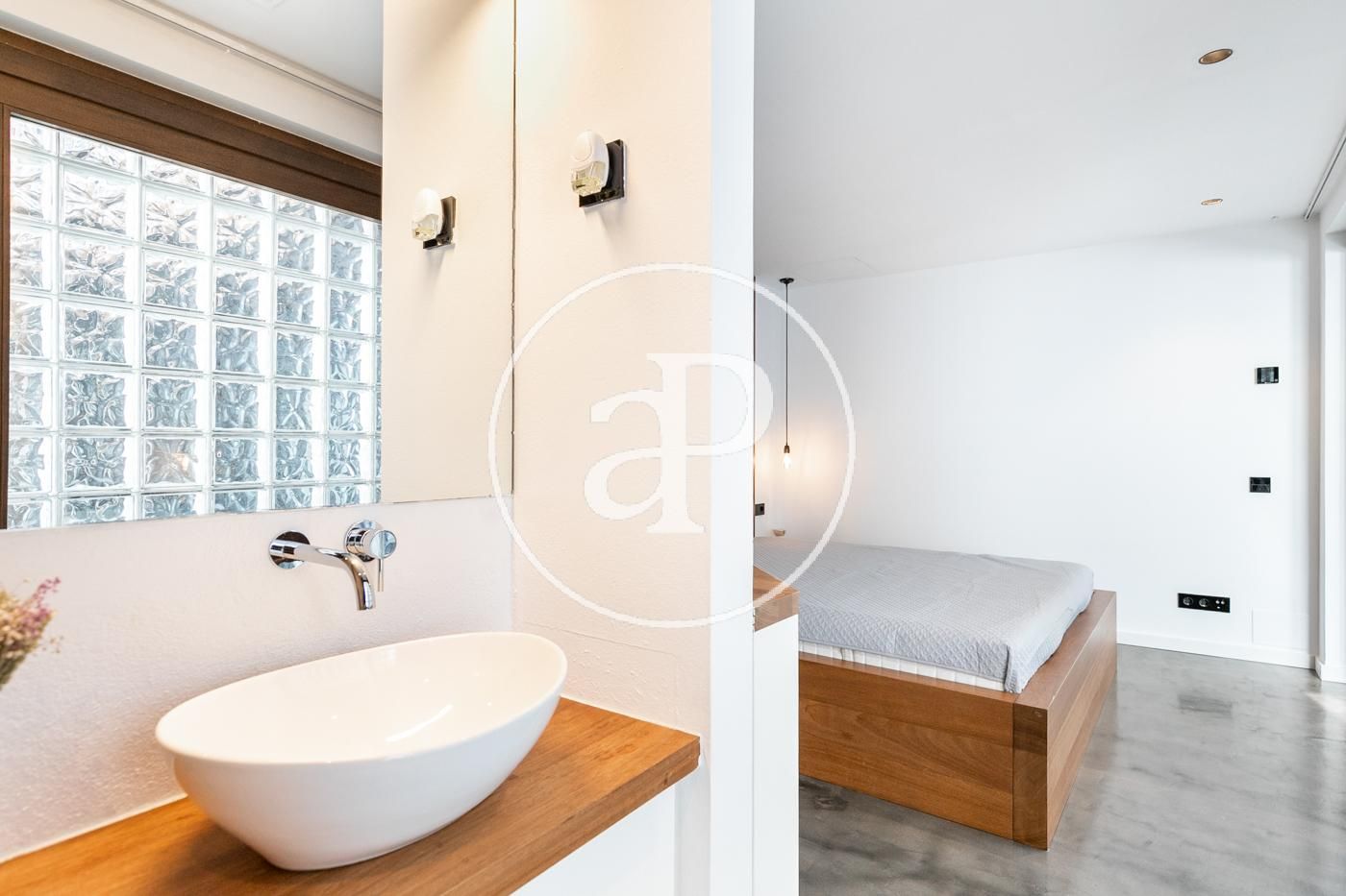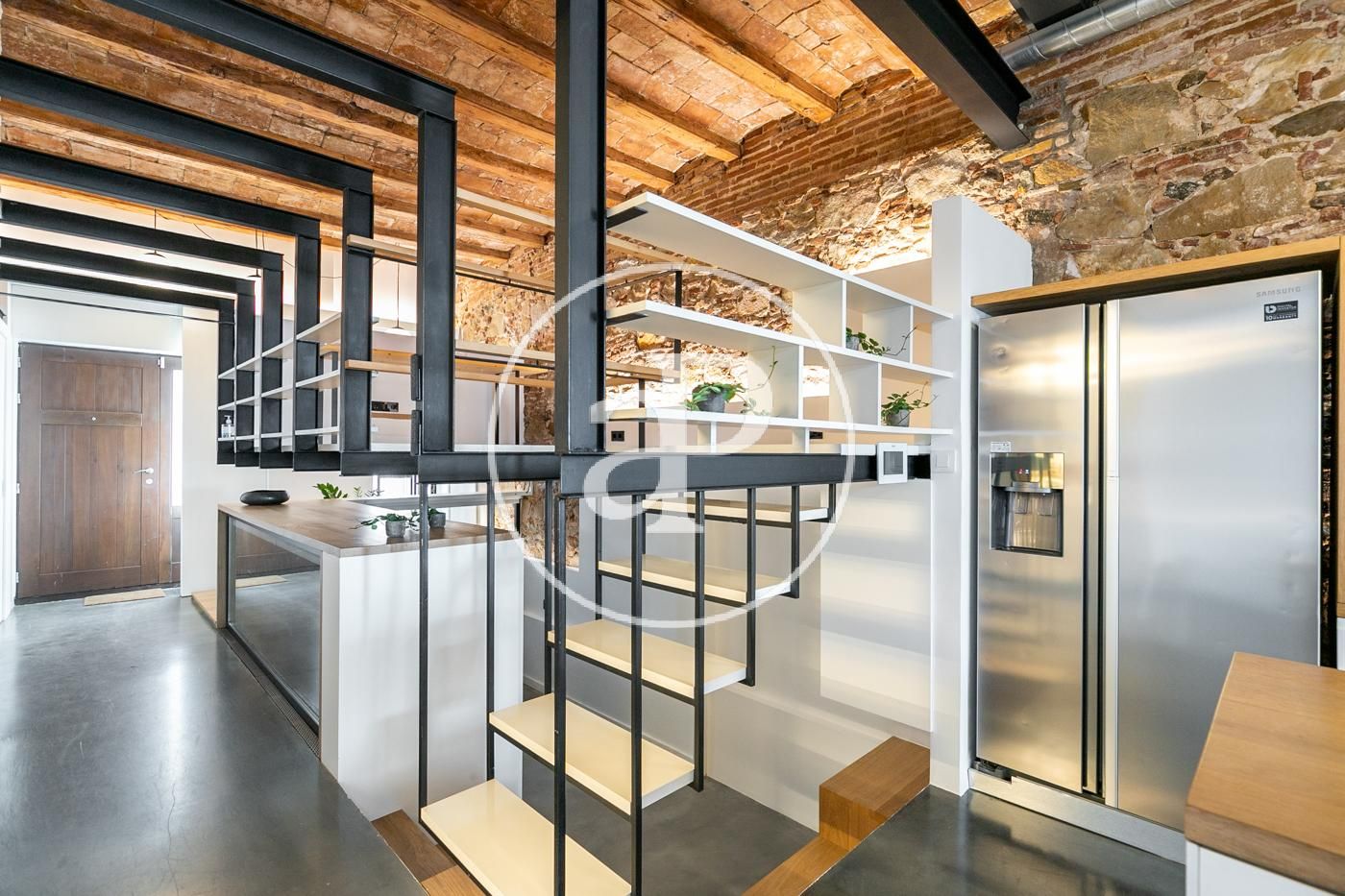 En ple cor de la Vila de Gràcia, prop de la plaça de la revolució i a cinc minuts caminant del metre Diagonal, trobem aquest habitatge exclusiu reformat en 2018 amb tots els materials de la millor qualitat. Aquest pis sorprèn pels seus detalls Arquitectònics, En entrar en l'habitatge trobem un rebedor amb armaris i finestres cap a l'exterior i darrere d'això un sorprenent doble nivell on la zona de baix es converteix en una habitació totalment tancada i la part de dalt pot ser un estudi o una sala d'estar.