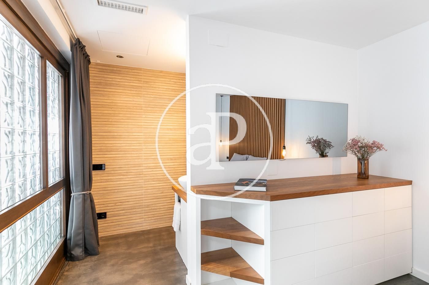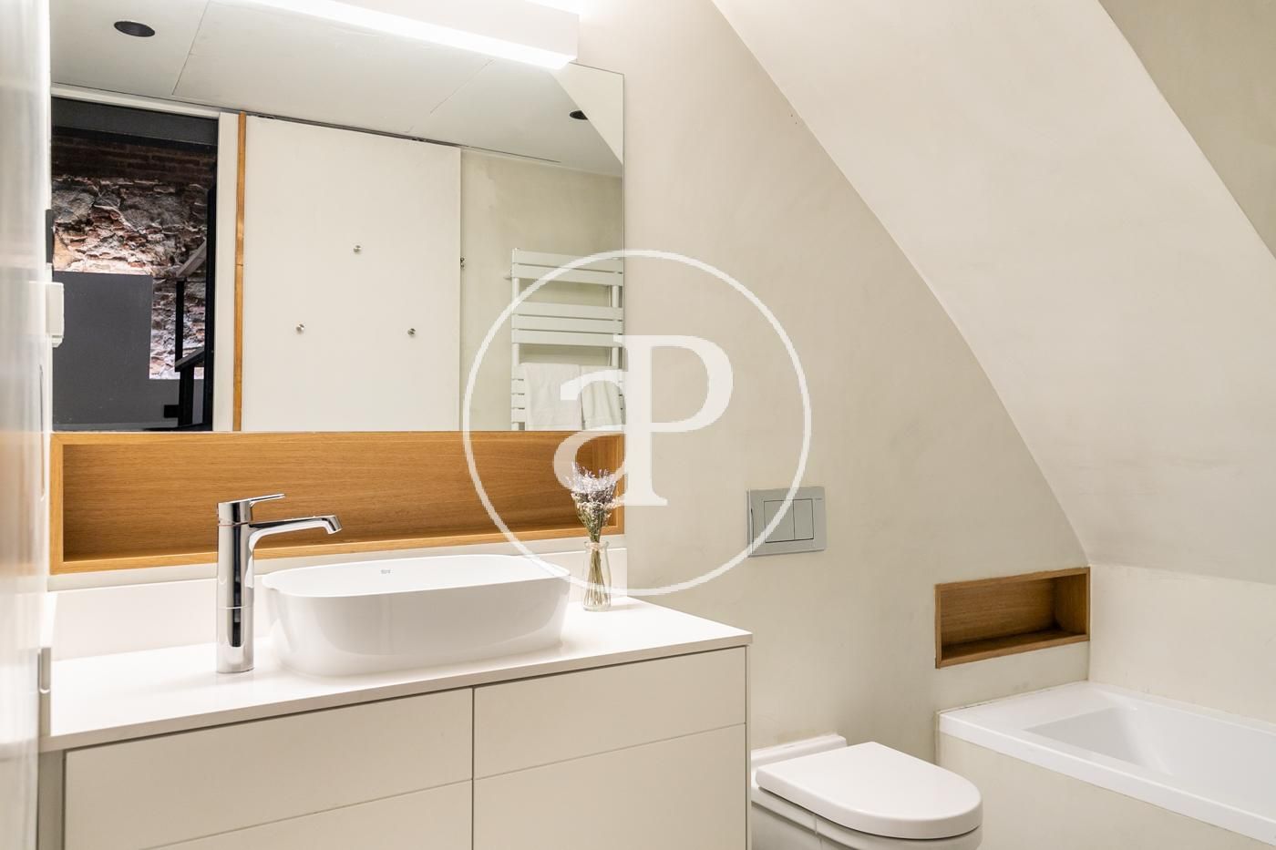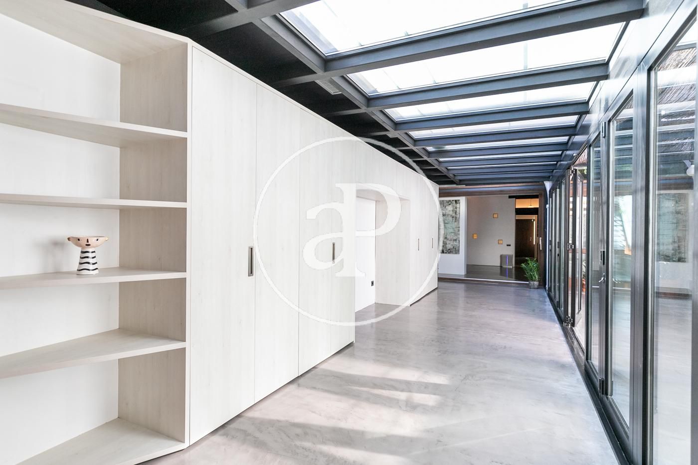 En ple cor de la Vila de Gràcia, prop de la plaça de la revolució i a cinc minuts caminant del metre Diagonal, trobem aquest habitatge exclusiu reformat en 2018 amb tots els materials de la millor qualitat. Aquest pis sorprèn pels seus detalls Arquitectònics, En entrar en l'habitatge trobem un rebedor amb armaris i finestres cap a l'exterior i darrere d'això un sorprenent doble nivell on la zona de baix es converteix en una habitació totalment tancada i la part de dalt pot ser un estudi o una sala d'estar.