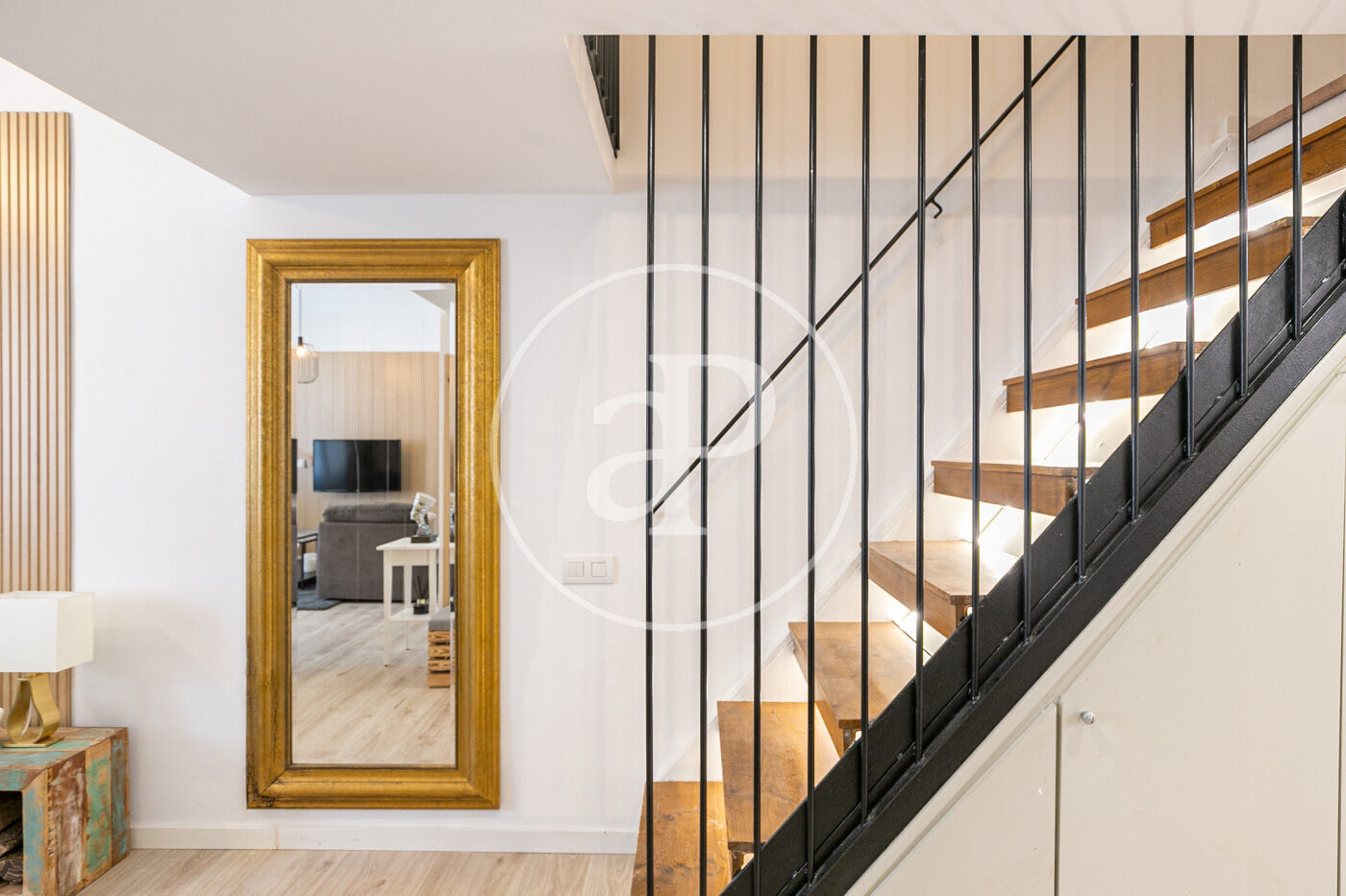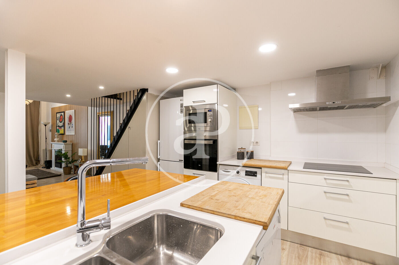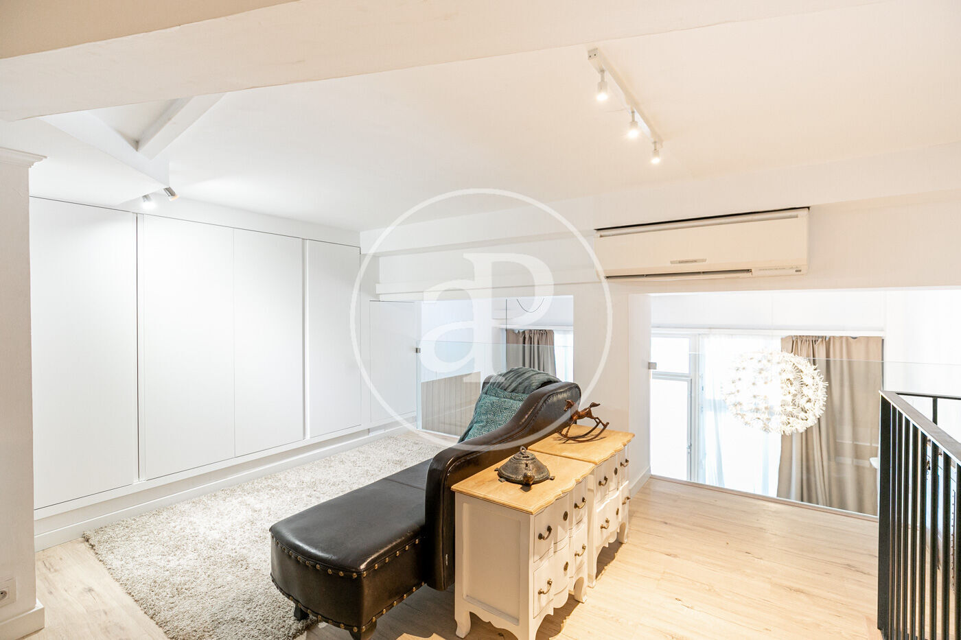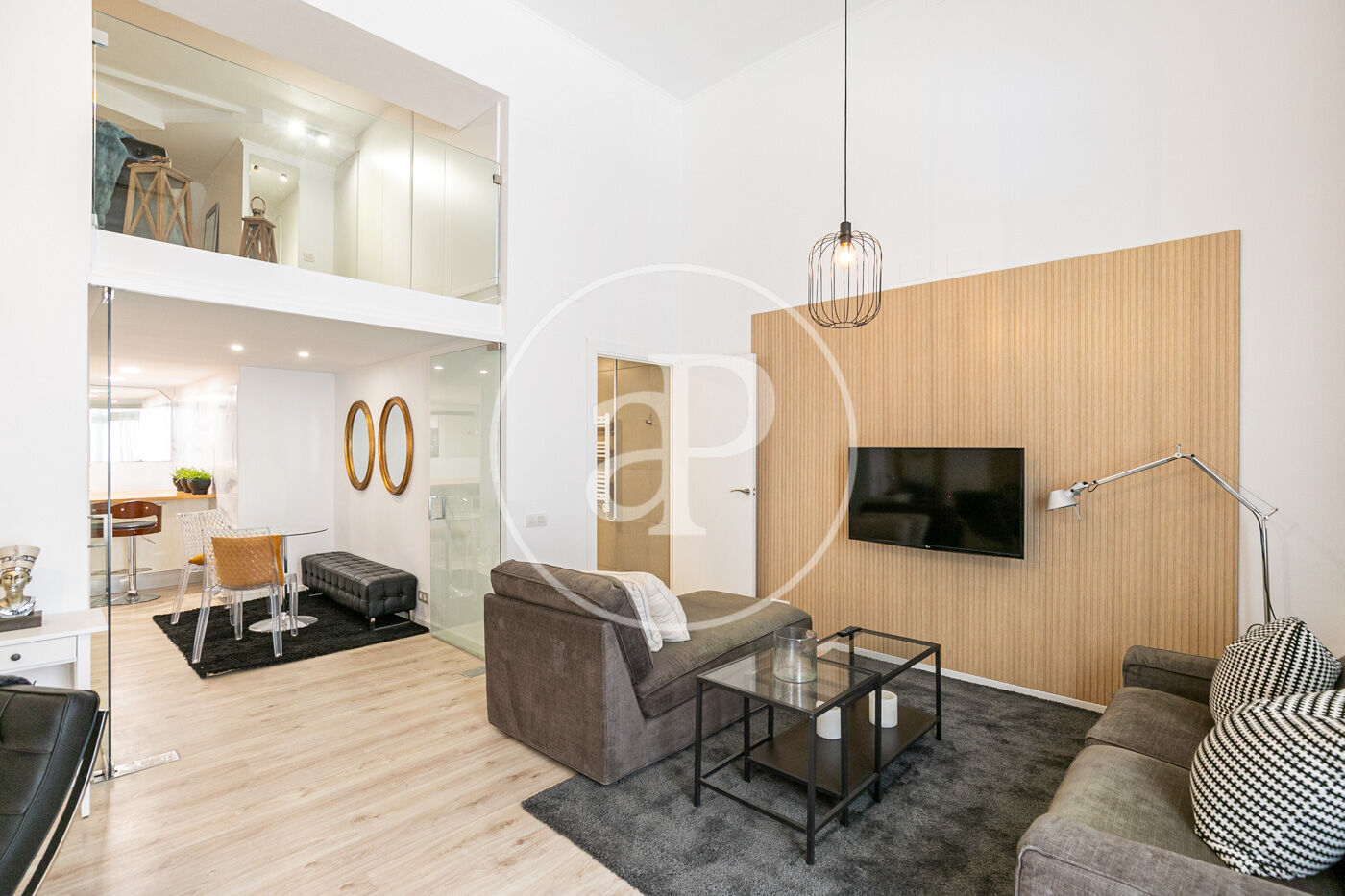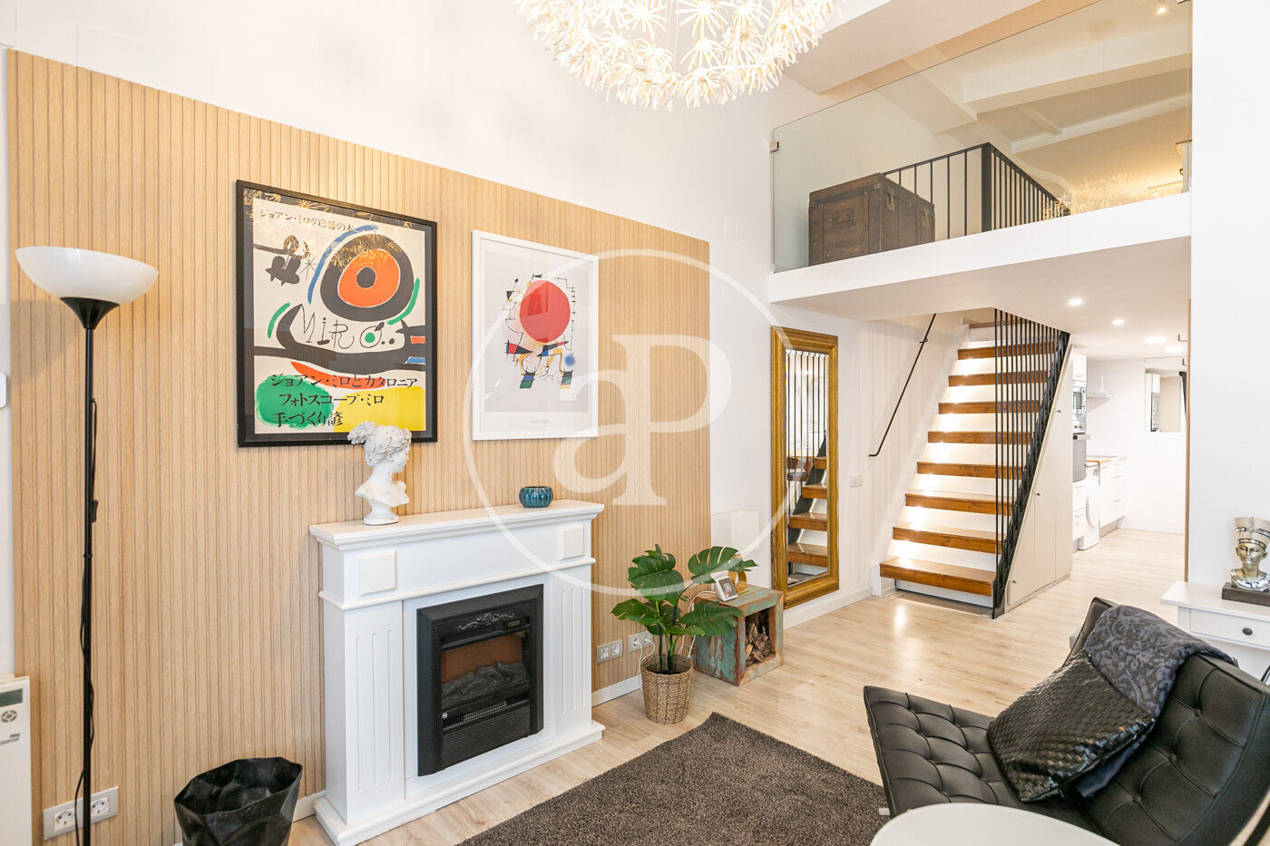 Al barri de Gràcia, en una zona tranquil·la, ens trobem amb un bonic loft tipus dúplex moblat a peu de carrer.