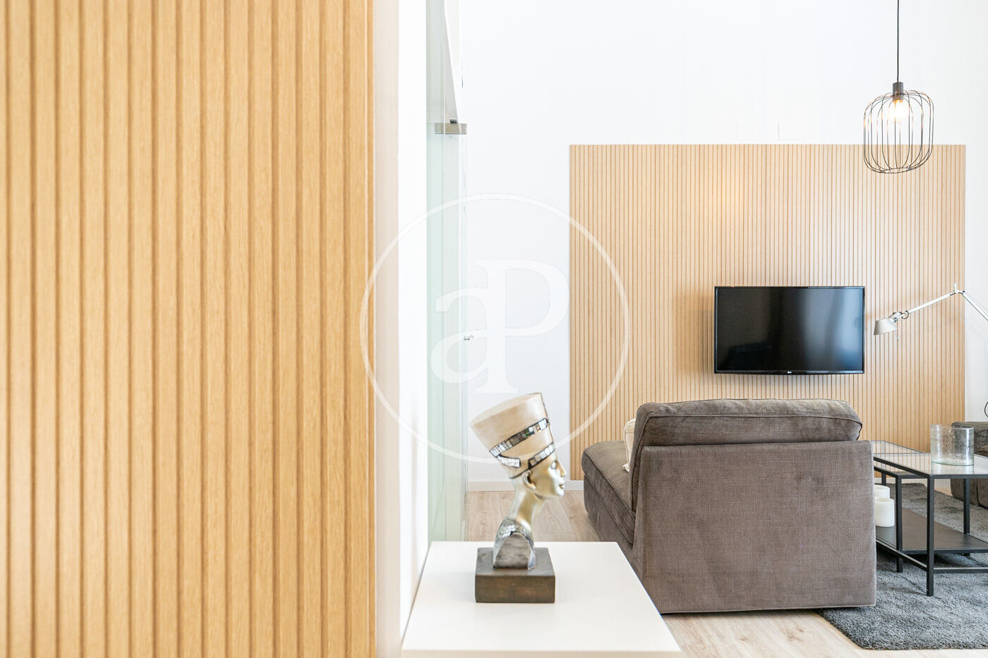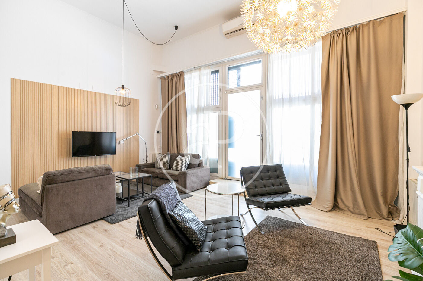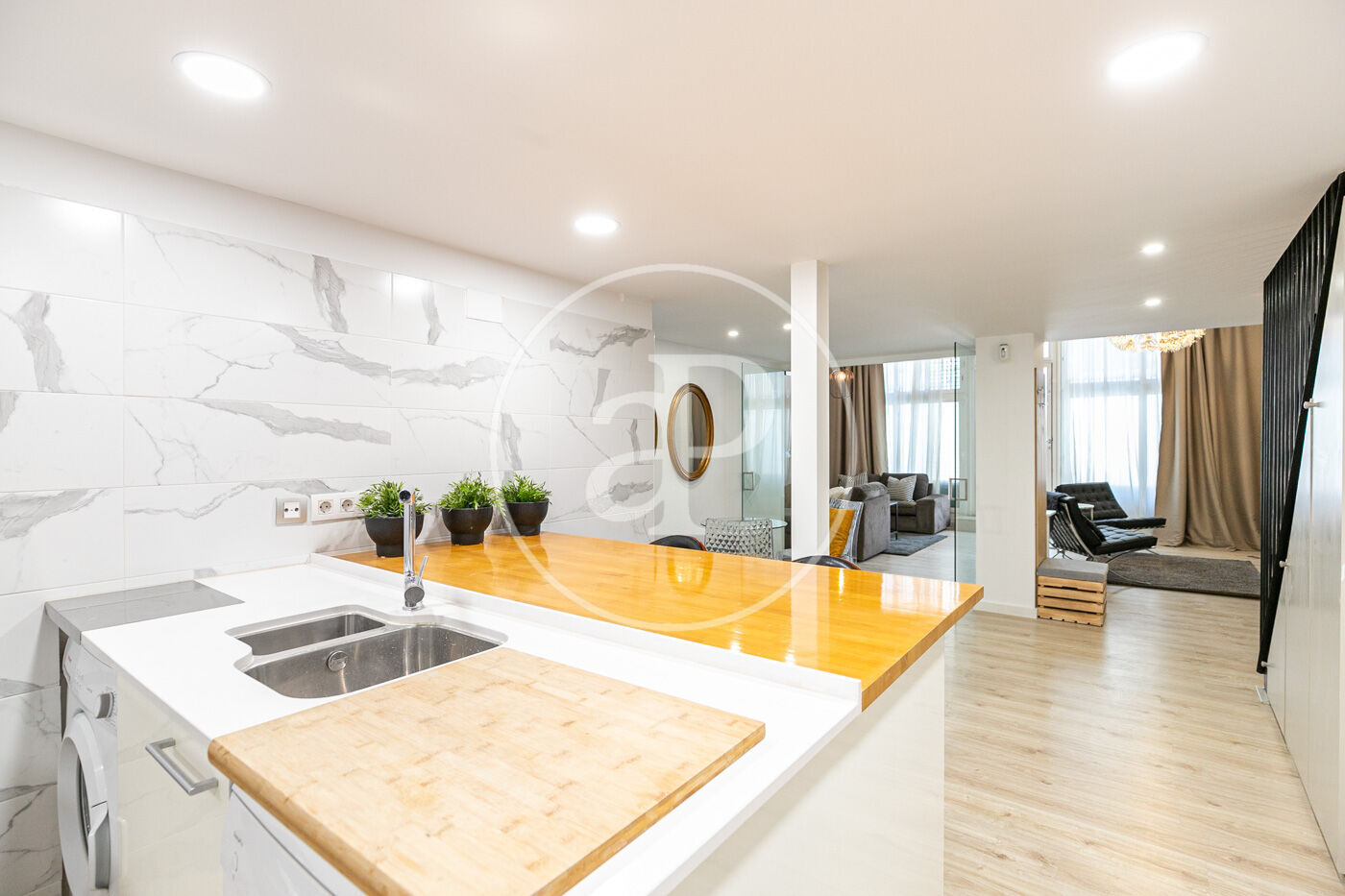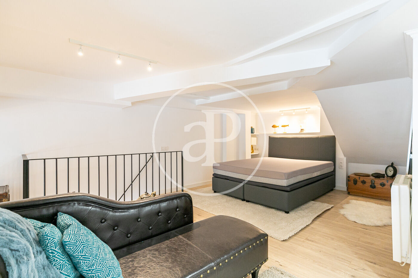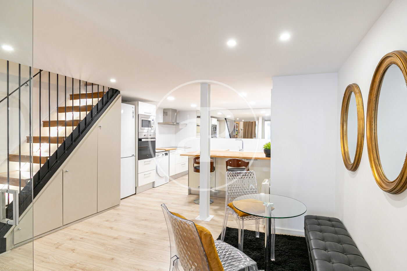Al barri de Gràcia, en una zona tranquil·la, ens trobem amb un bonic loft tipus dúplex moblat a peu de carrer.