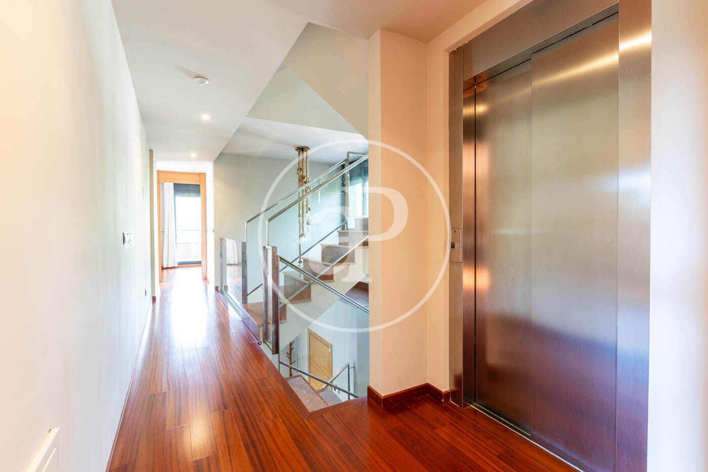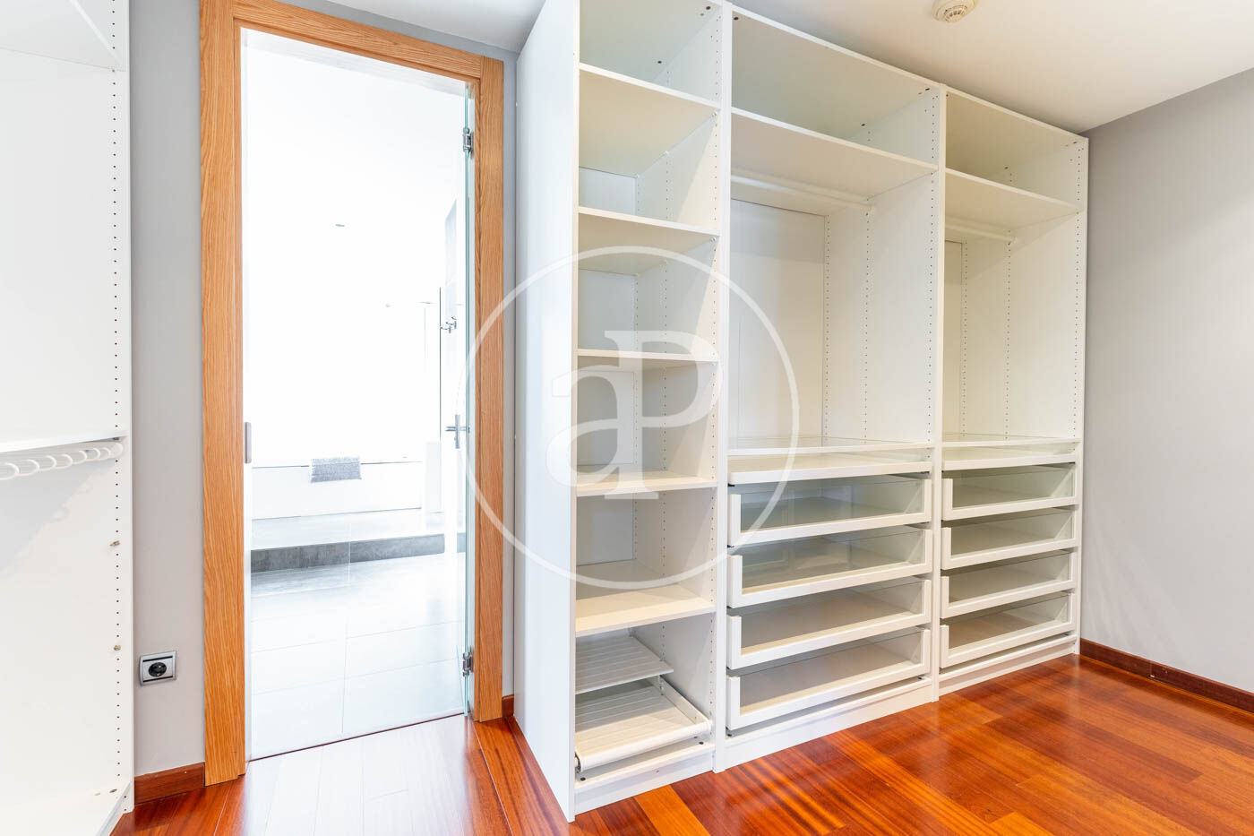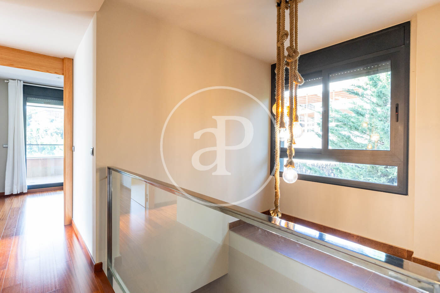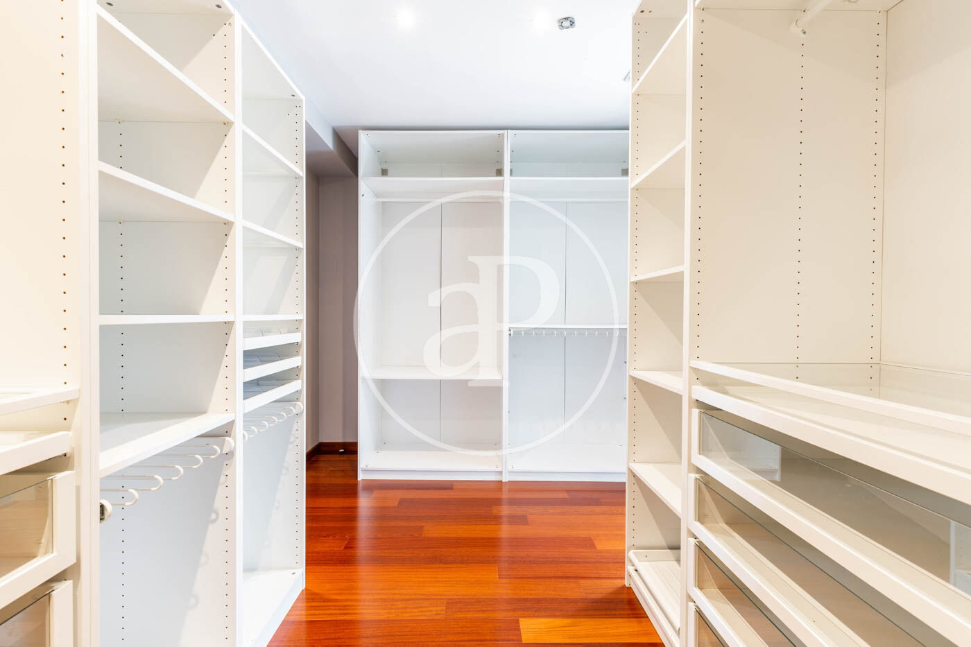 ACABATS D'ALTA GAMMA: Disposa de sòls de parquet, fusteria interior de fusta, fusteria exterior d'alumini amb doble cristall, aire condicionat per conductes (amb bomba de fred i bomba de calor), calefacció individual a gas per sòl radiant, tot això independent per plantes i aspiració centralitzada, a més d'alarma interior i exterior a través de sensors perimetrals i circuit de càmeres per vídeo vigilància tancat. Possibilitat de llogar amb o sense mobles.