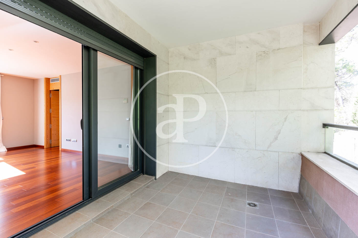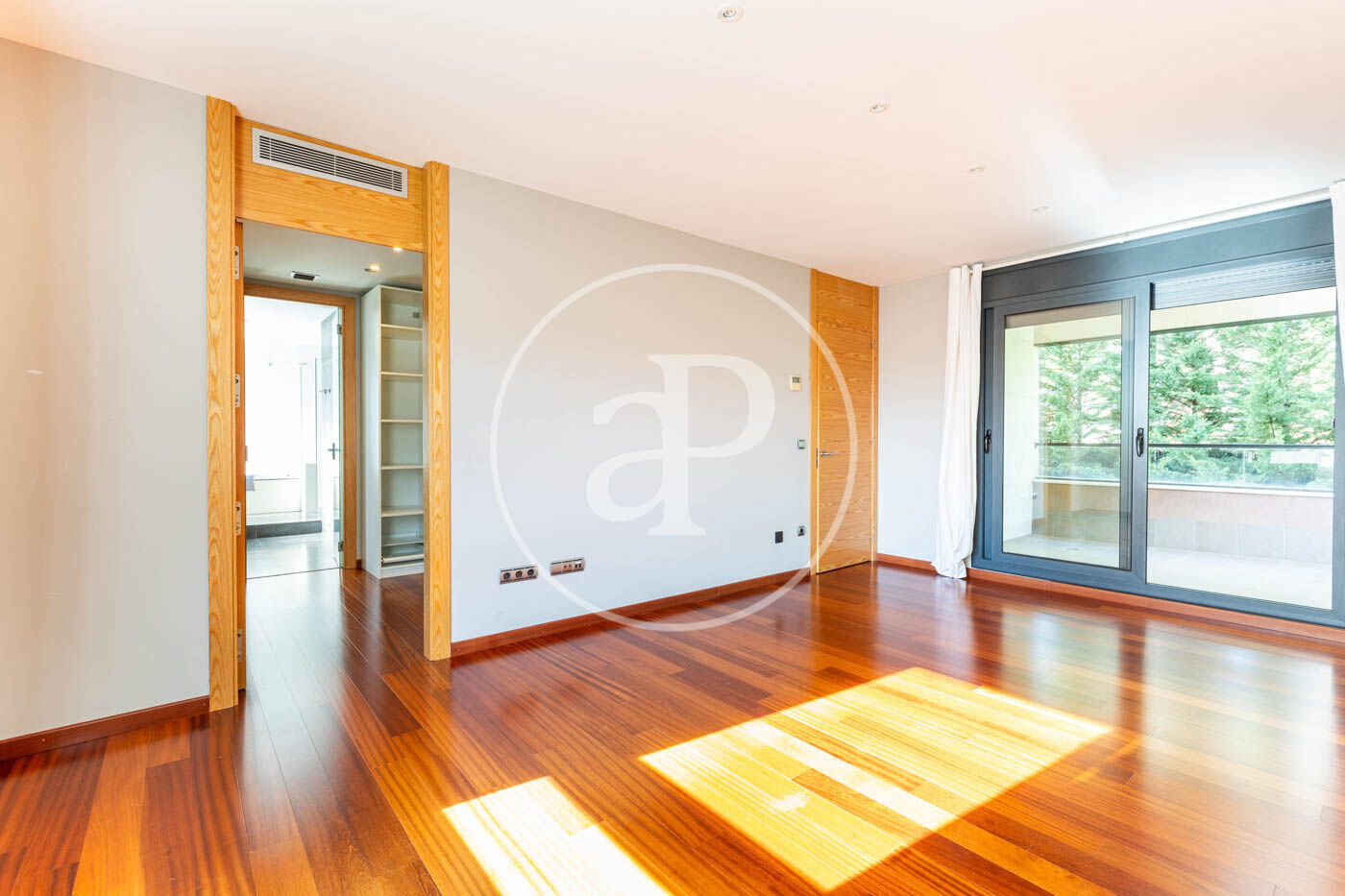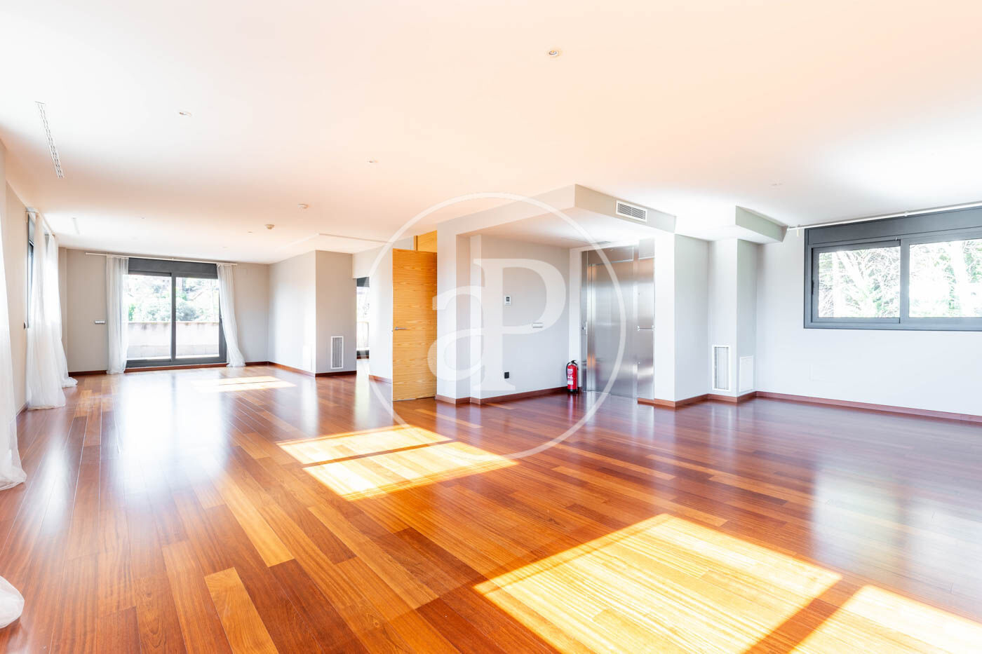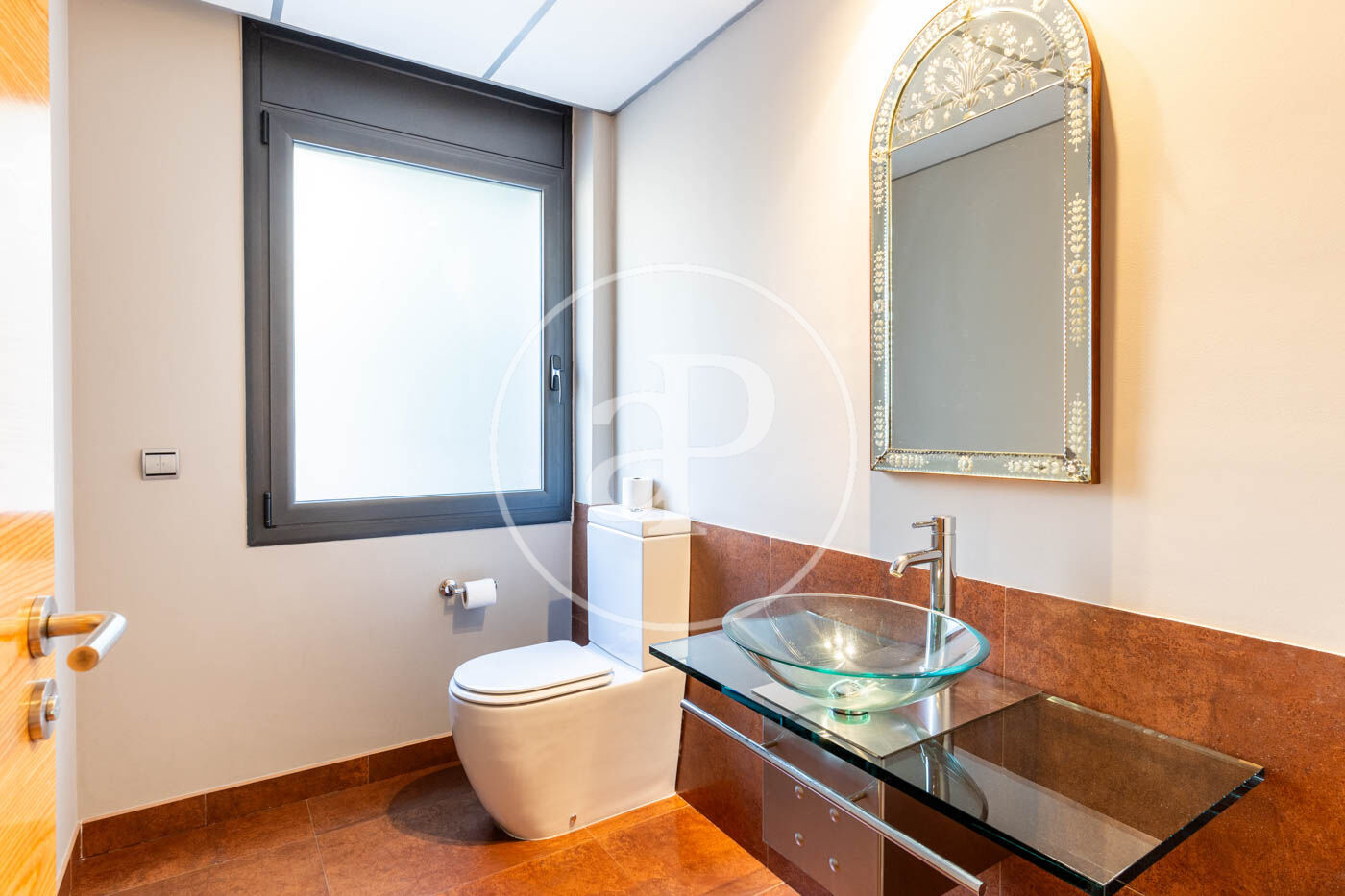 ACABATS D'ALTA GAMMA: Disposa de sòls de parquet, fusteria interior de fusta, fusteria exterior d'alumini amb doble cristall, aire condicionat per conductes (amb bomba de fred i bomba de calor), calefacció individual a gas per sòl radiant, tot això independent per plantes i aspiració centralitzada, a més d'alarma interior i exterior a través de sensors perimetrals i circuit de càmeres per vídeo vigilància tancat. Possibilitat de llogar amb o sense mobles.