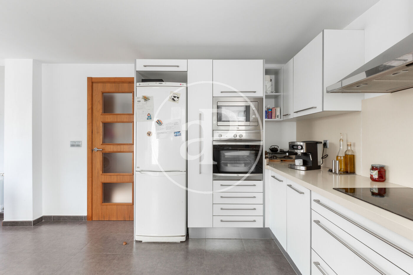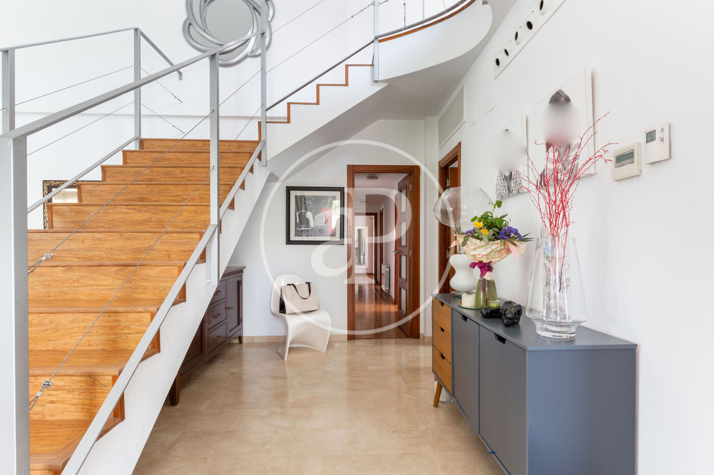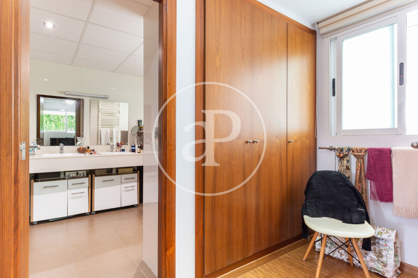 En accedir-hi, ens rep un ampli i lluminós saló amb sostres alts abuhardillats i grans finestrals que connecten amb dos agradables porxos. En aquesta mateixa planta hi ha un lavabo de cortesia, així com una cuina espaiosa amb zona office i sortida directa a l’exterior. La zona de descans està estratègicament diferenciada i inclou quatre dormitoris: tres amb armaris encastats que comparteixen un bany complet, i una suite principal amb vestidor i bany privat.