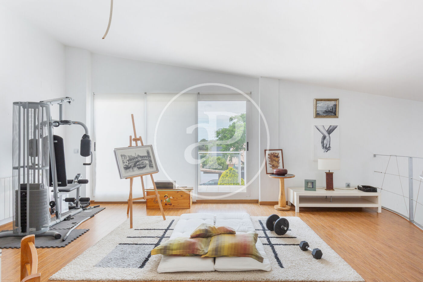 La planta superior, a la qual s'accedeix per una elegant escala, ofereix un espai diàfan ideal com a despatx, zona de lectura o relax, amb accés a una encantadora terrassa i una excel·lent llum natural.