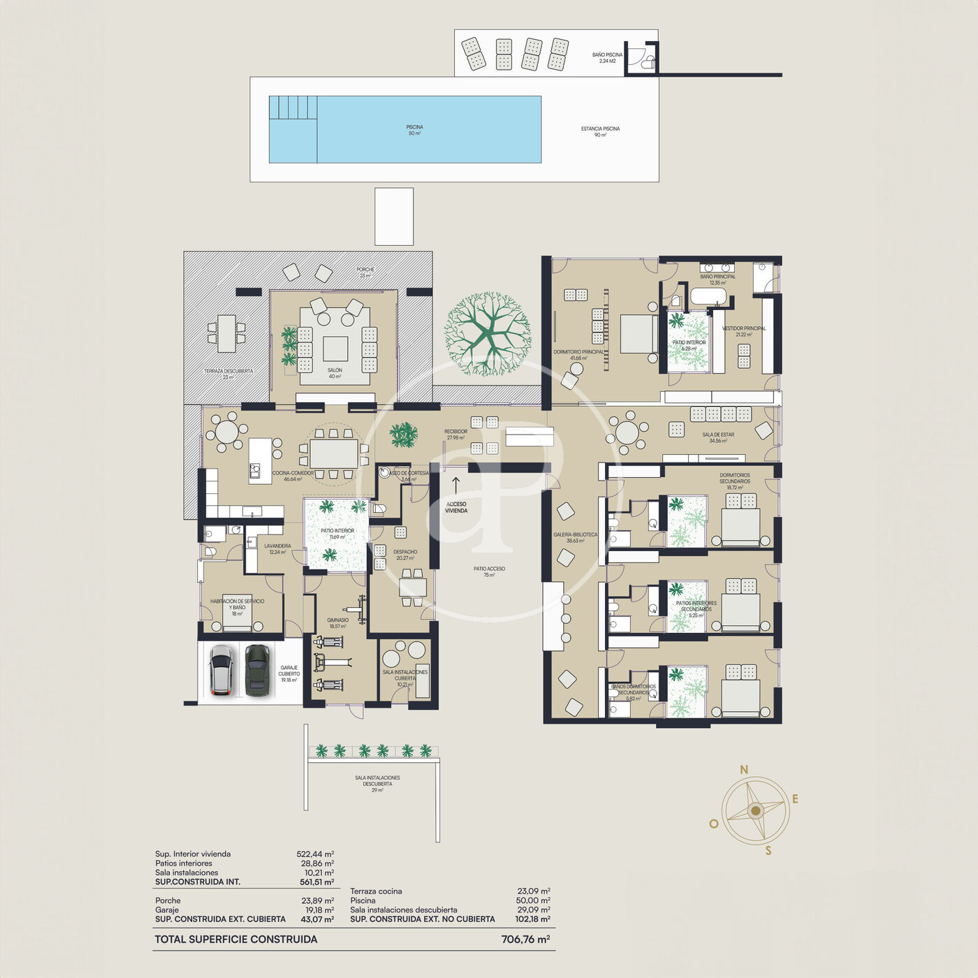 La propietat disposa de 5 dormitoris, 5 banys, piscina, llar de foc, gimnàs, 3 places d'aparcament, aire condicionat, armaris encastats, pati posterior i calefacció.