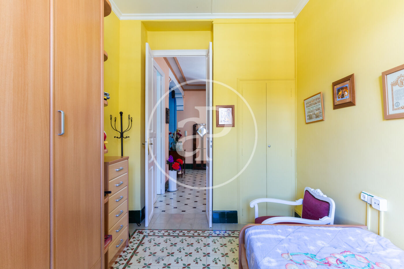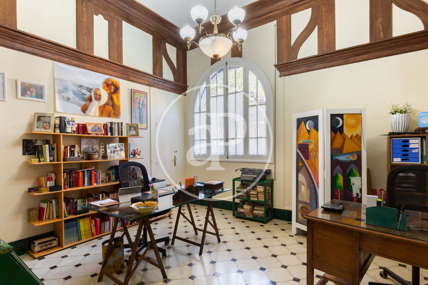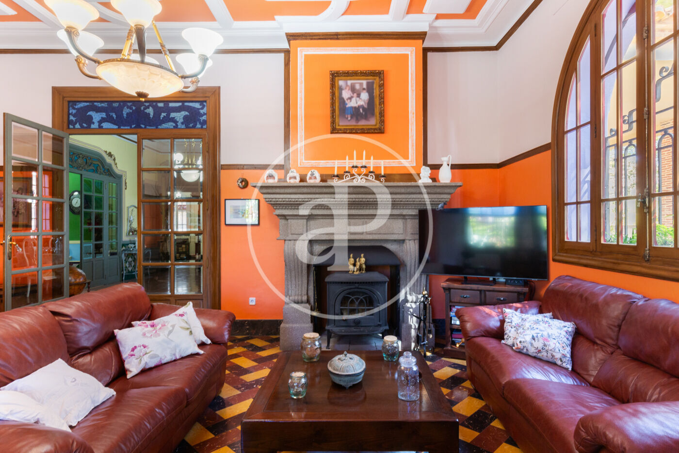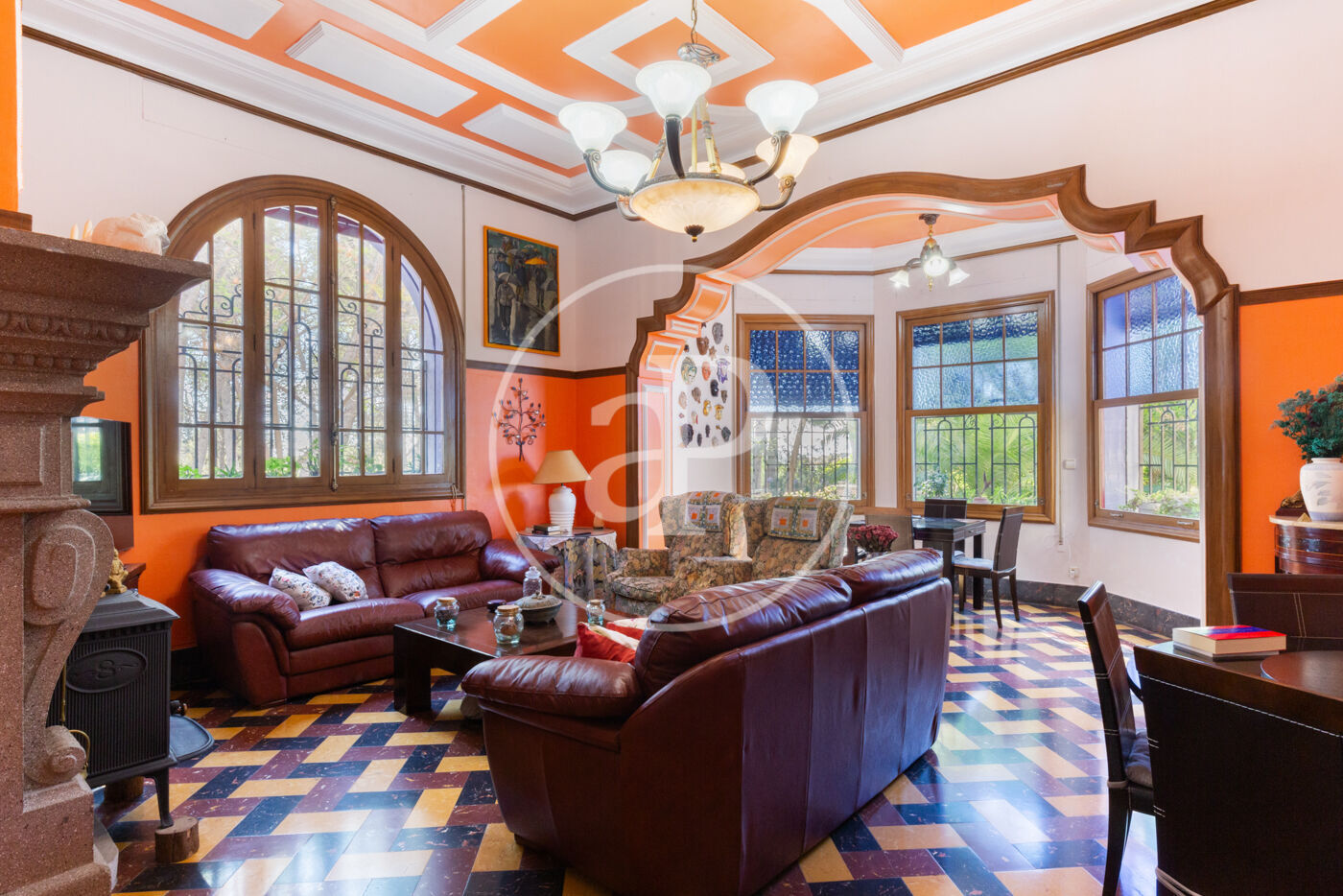 L’entrada principal ens rep amb un ampli vestíbul que ens transporta a l’elegància de principis del segle XX. A la planta baixa hi ha un saló generós amb finestrals originals, sostres alts amb motllures i una atmosfera senyorial; connectat amb una acollidora sala d’estar amb xemeneia i finestrals tipus mirador, a través de portes acristalades originals d’època. També en aquesta planta hi ha un bany de cortesia amb dutxa, reformat amb molt bon gust, respectant l’estil de la casa.