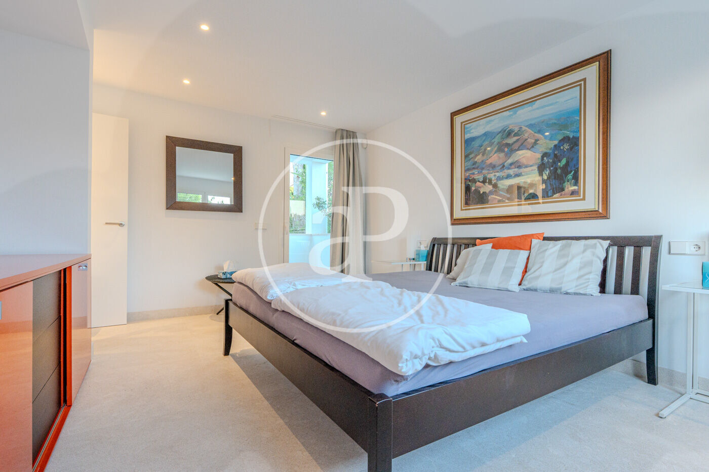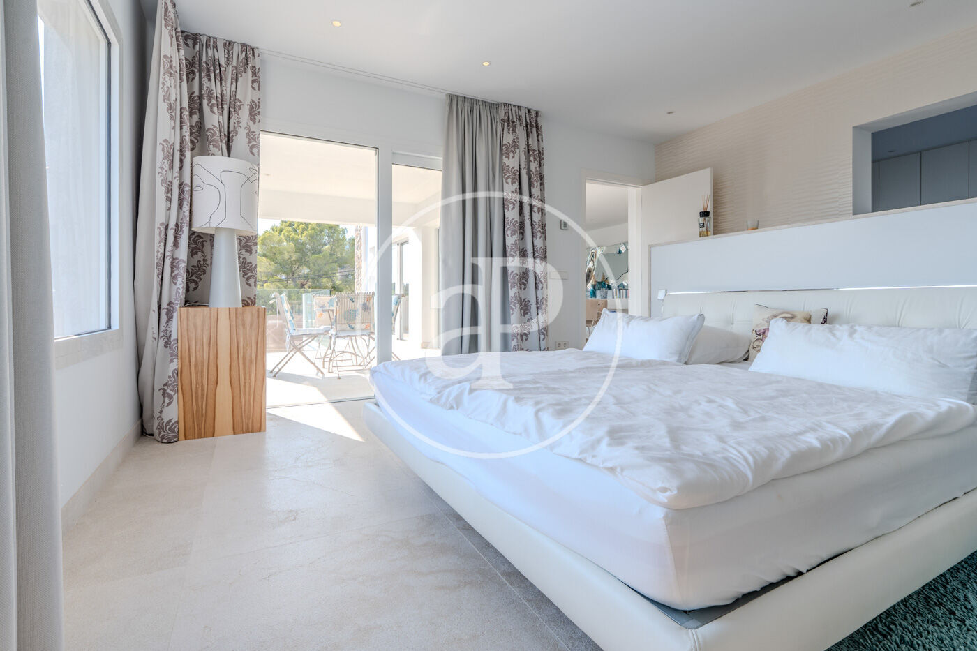 La vila disposa de 6 amplis dormitoris i 4 banys, distribuïts en estances generoses, lluminoses i acuradament dissenyades per oferir comoditat, funcionalitat i una gran sensació de benestar. Els seus grans finestrals permeten que la llum i l’entorn formin part de cada espai, aportant amplitud i una elegant sensació de continuïtat entre interior i exterior.