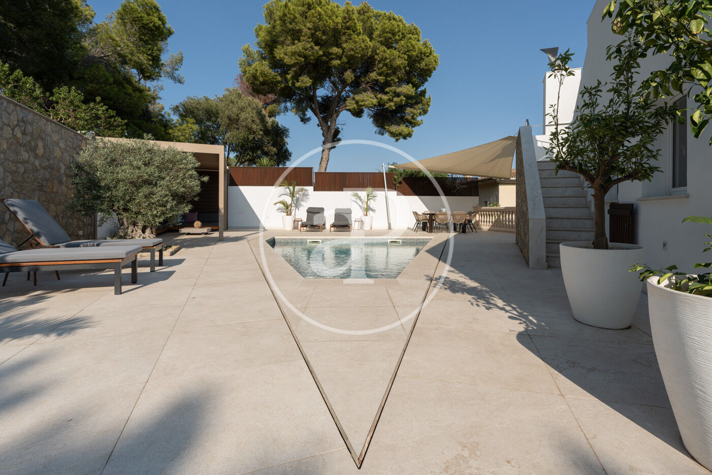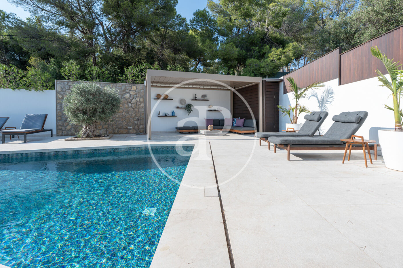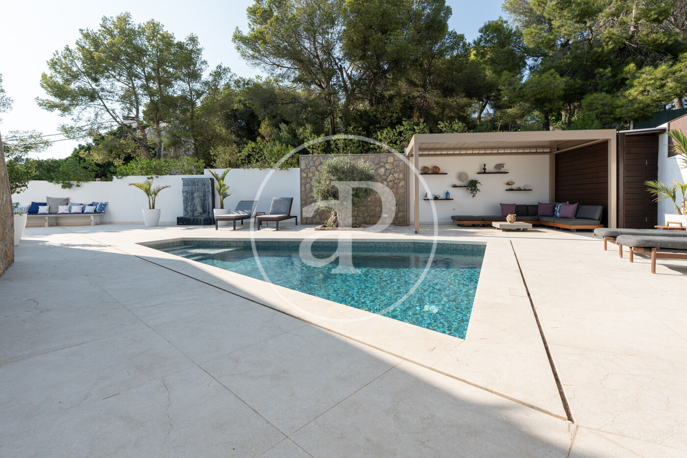Un dels grans atractius d’aquesta propietat són les seves espectaculars zones exteriors, concebudes per gaudir al màxim del clima i la bellesa de l’entorn. La vila compta amb una elegant piscina privada, envoltada d’àmplies superfícies per prendre el sol, relaxar-se o compartir moments inoblidables en un ambient de absoluta tranquil·litat.