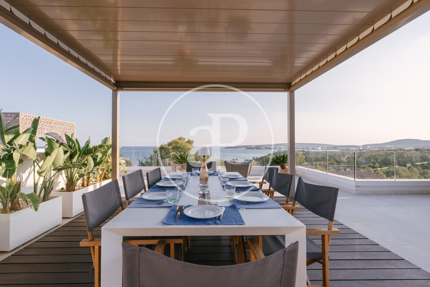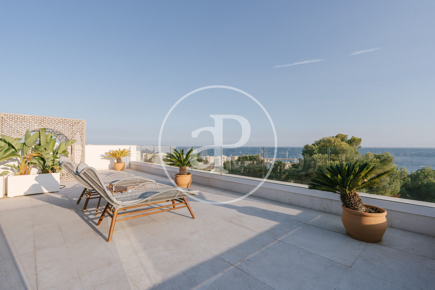 Les terrasses panoràmiques són un altre dels grans protagonistes de l’habitatge. Amplies, obertes i perfectament integrades en l’arquitectura de la casa, ofereixen l’escenari ideal per a esmorzars a l’aire lliure, llargues sobretaules, sopars al capvespre o simplement per desconnectar contemplant el mar.