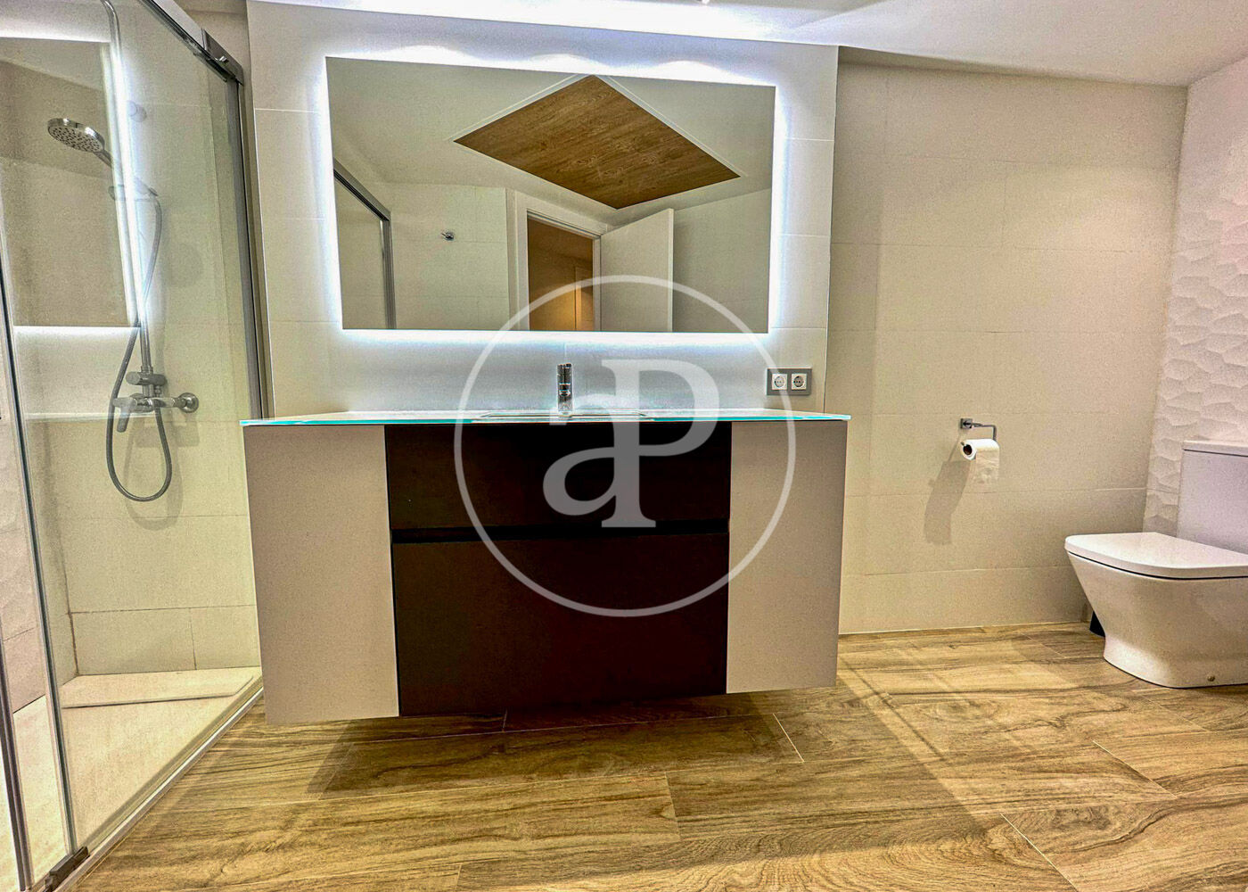 La cuina, un veritable cor de la llar, està totalment equipada amb moderns electrodomèstics i ofereix abundant espai d'emmagatzematge, cosa que facilita la preparació de deliciosos menjars en un ambient elegant. L´habitatge es beneficia a més de calefacció per radiadors i aire condicionat central per garantir el teu confort en qualsevol època de l´any.