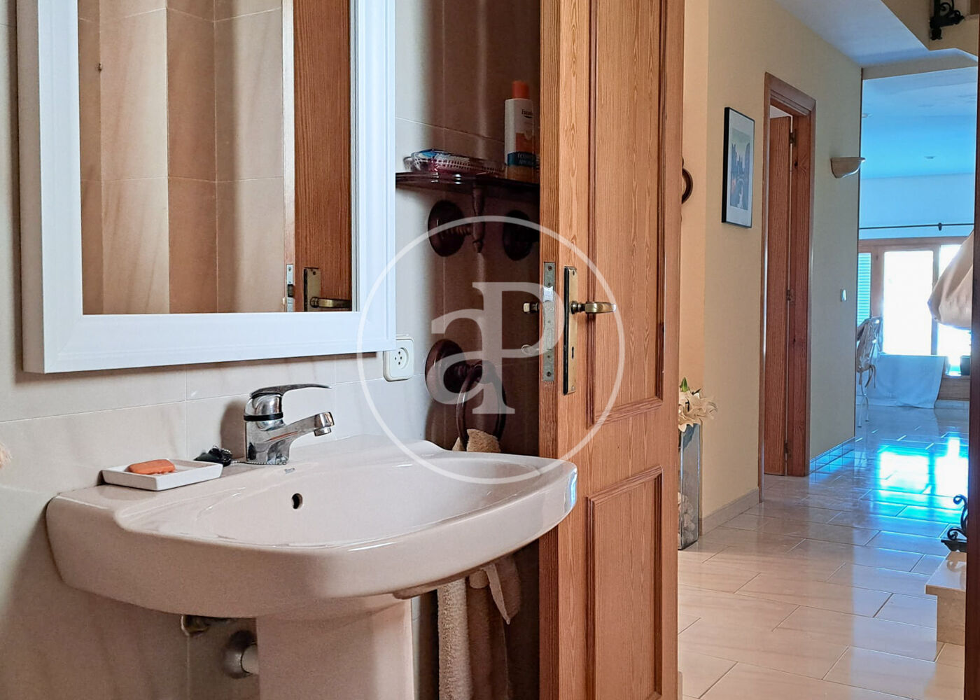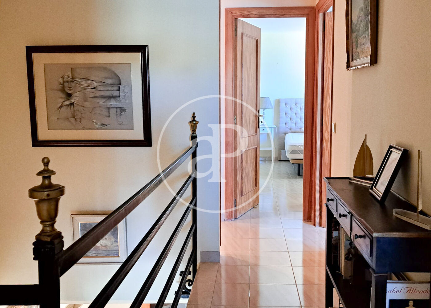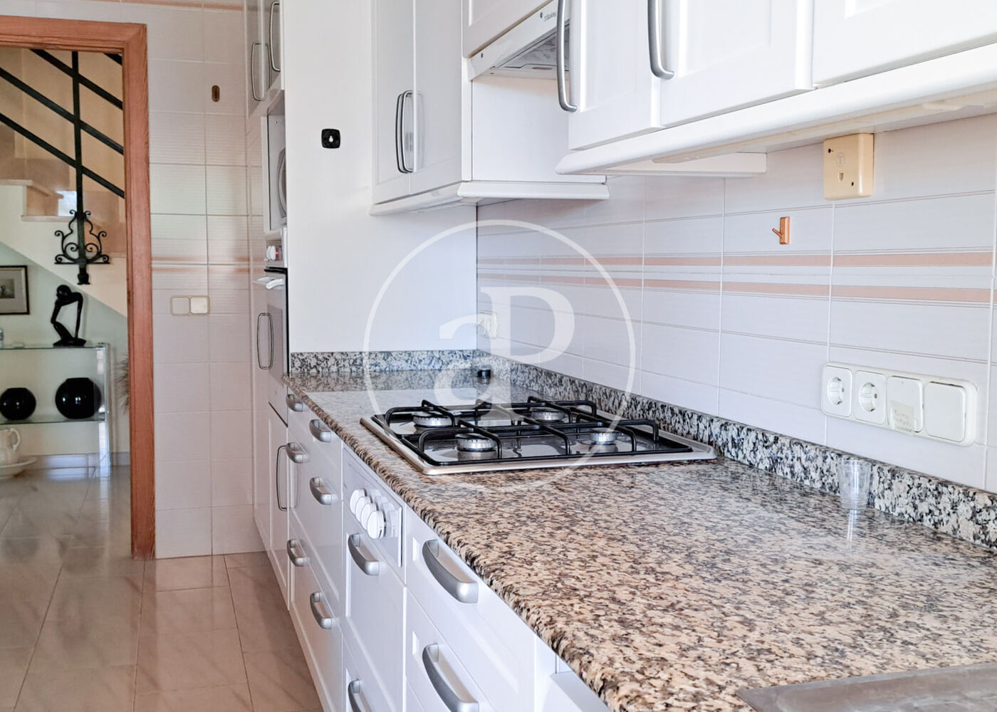 El pis es distribueix sobre 186 m² i dues plantes i una enorme zona exterior amb terrassa equipada i zona barbacoa i una zona de jardí amb gespa i vistes espectaculars.
