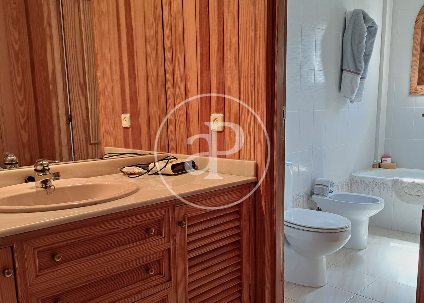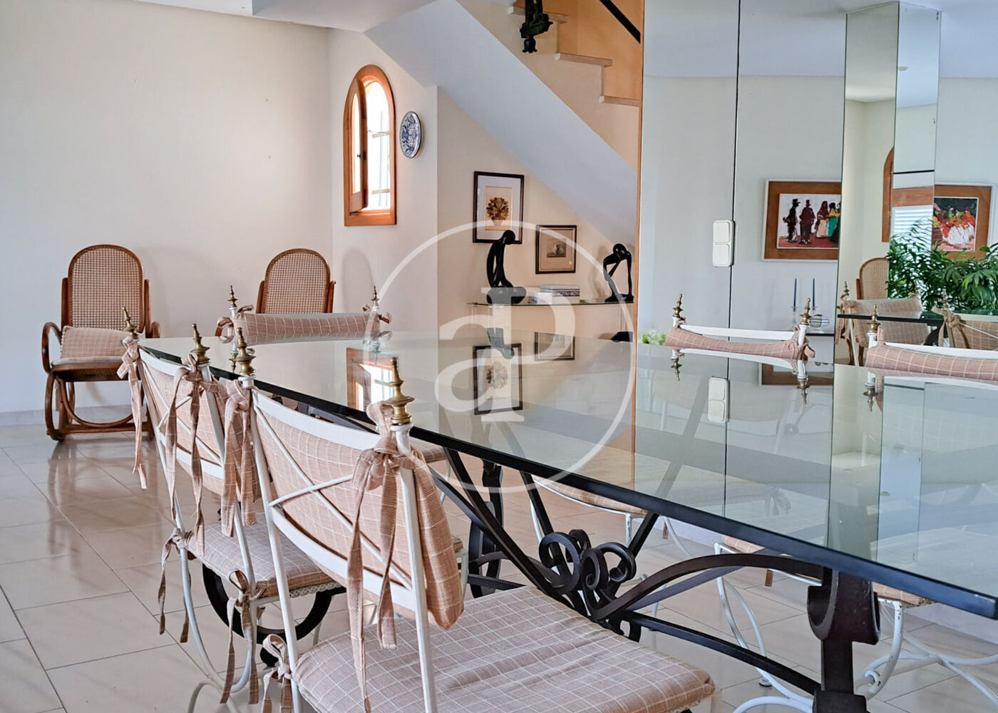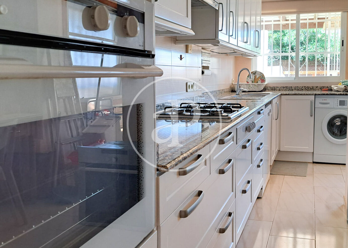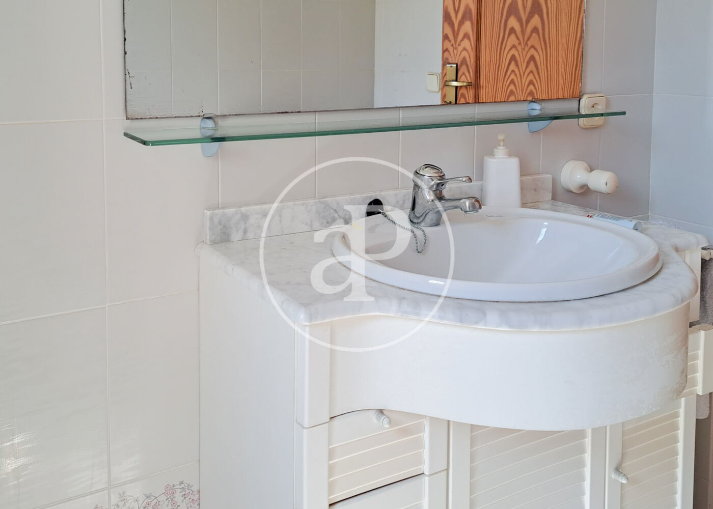 El pis es distribueix sobre 186 m² i dues plantes i una enorme zona exterior amb terrassa equipada i zona barbacoa i una zona de jardí amb gespa i vistes espectaculars.