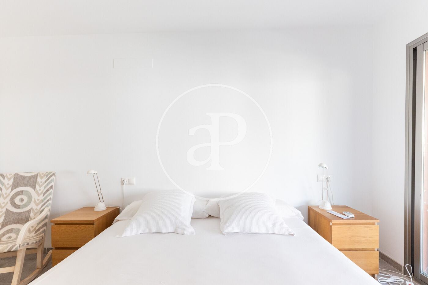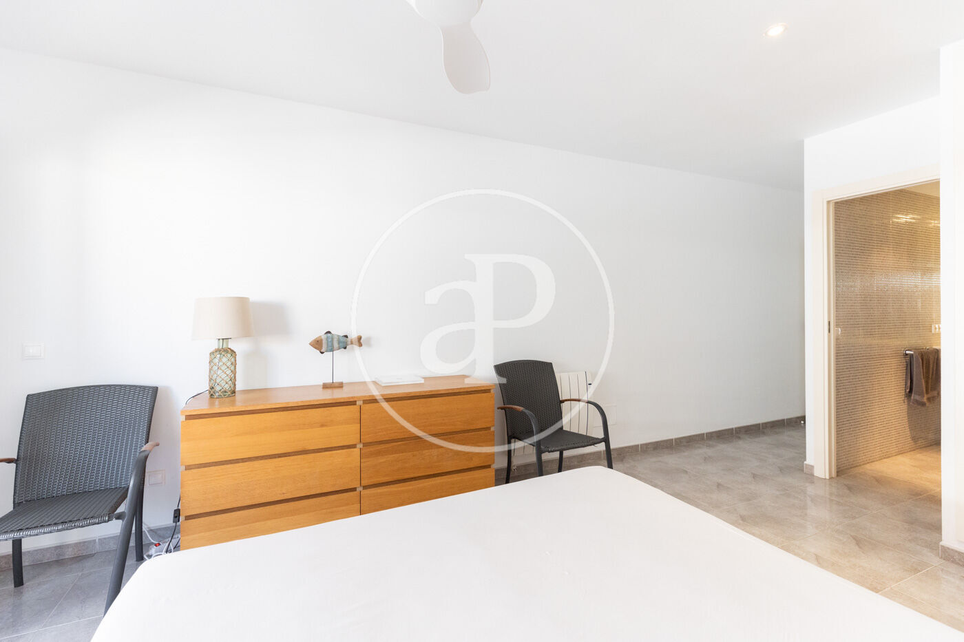 L´entrada dóna accés a un lluminós saló-menjador amb sortida a una gran terrassa amb vistes laterals al mar, i a una cuina independent amb accés directe a la mateixa terrassa. El dormitori principal, en suite, també té accés a la terrassa. La zona de nit està composta per tres dormitoris dobles exteriors, amb armaris de paret; un és en suite, mentre que els altres dos comparteixen un bany. A més, disposa d'una zona de bugaderia, terres de gres.