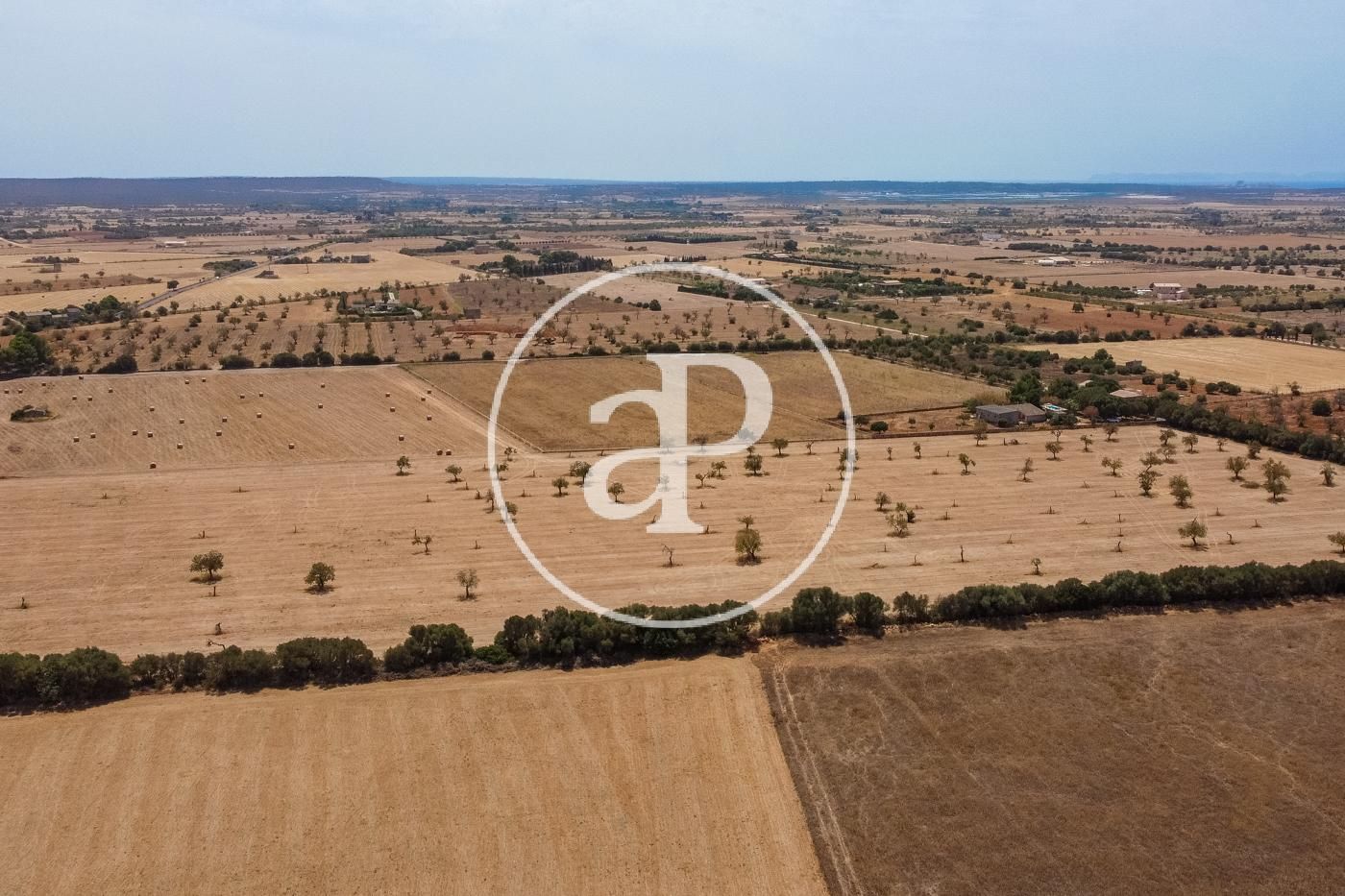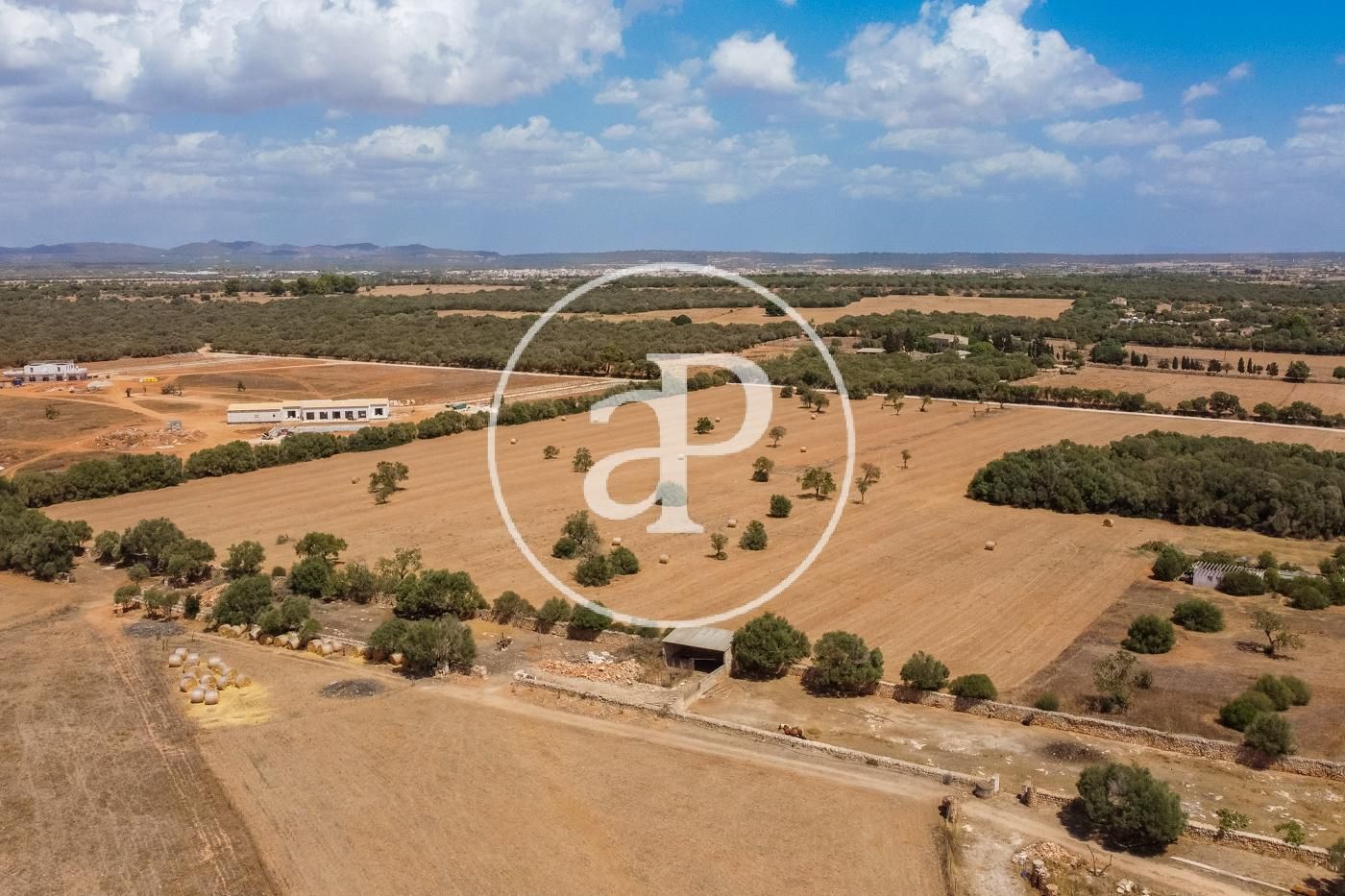 AMB LLICÈNCIA D’OBRES APROVADA, situat entre Campos i la Colònia de Sant Jordi, a pocs minuts de Ses Salines i de les millors platges verges com Es Trenc, Ses Covetes i Sa Ràpita, aquest ampli terreny en sòl rústic de 10 hectàrees (uns 100.000 m²), actualment de conreu, compta amb projecte bàsic aprovat per l’ajuntament i el Consell.