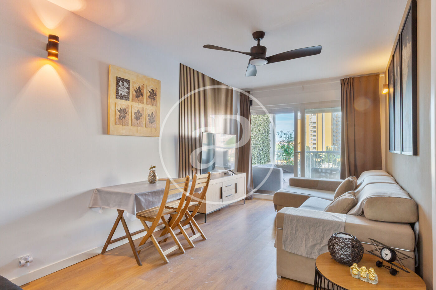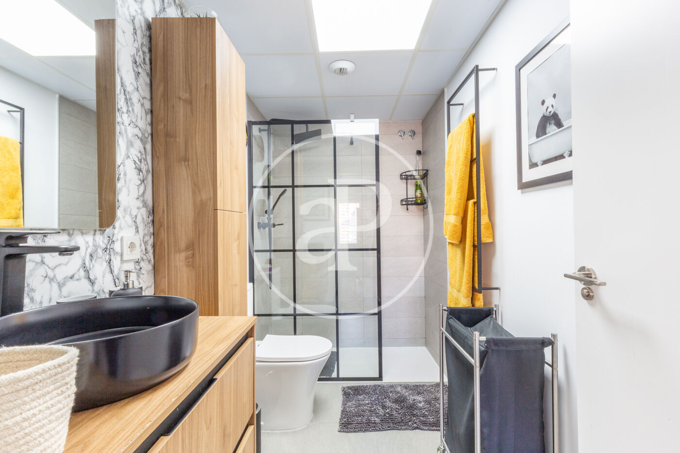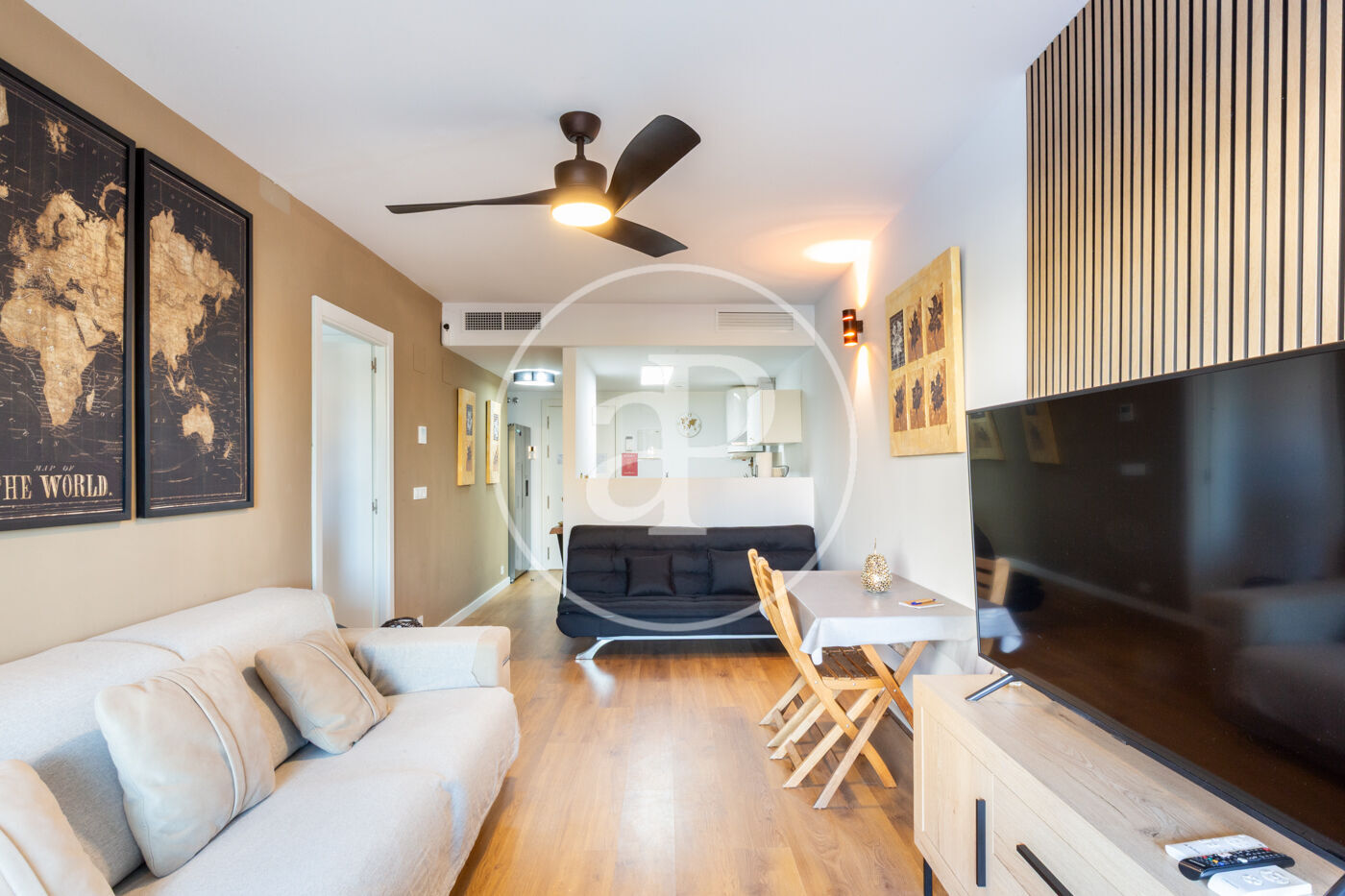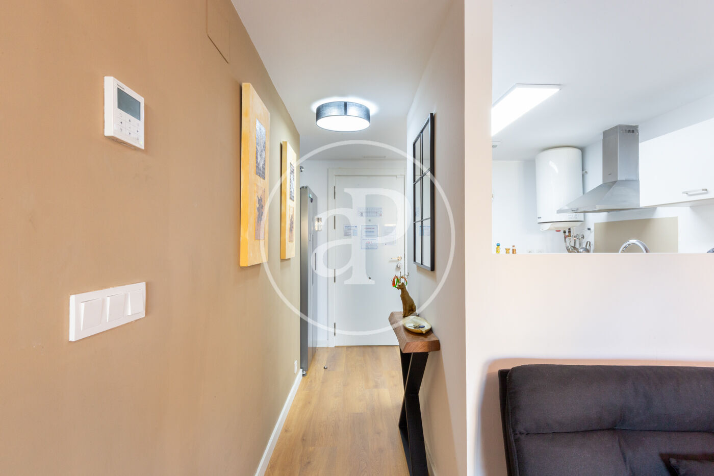El pis disposa d’un dormitori, saló-menjador, cuina independent, bany complet i terrassa. Es lloga totalment moblat i equipat amb tots els electrodomèstics.