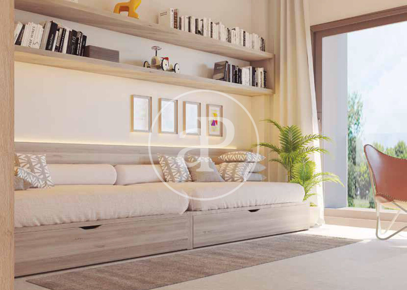 La part superior dels habitatges conté la zona nocturna amb dos dormitoris tipus suite i un dormitori principal amb un gran vestidor. L'aprofitament estratègic dels espais fa que es puguin incorporar les zones d'estudi, els armaris encastats i les zones per dormir; de manera racional i equilibrada.